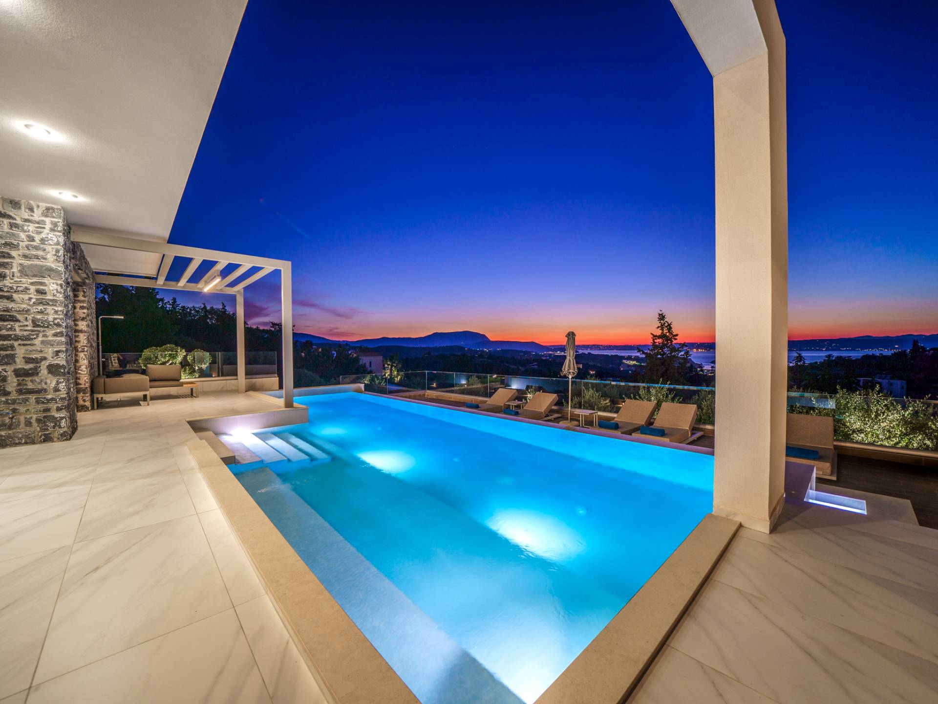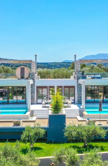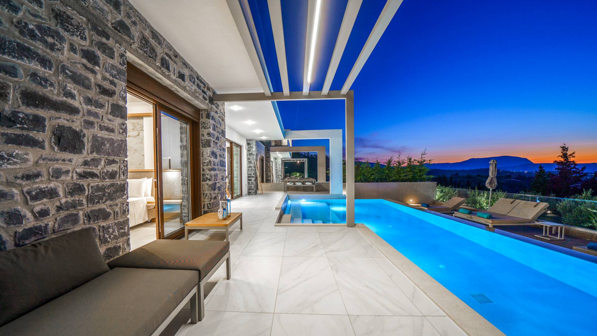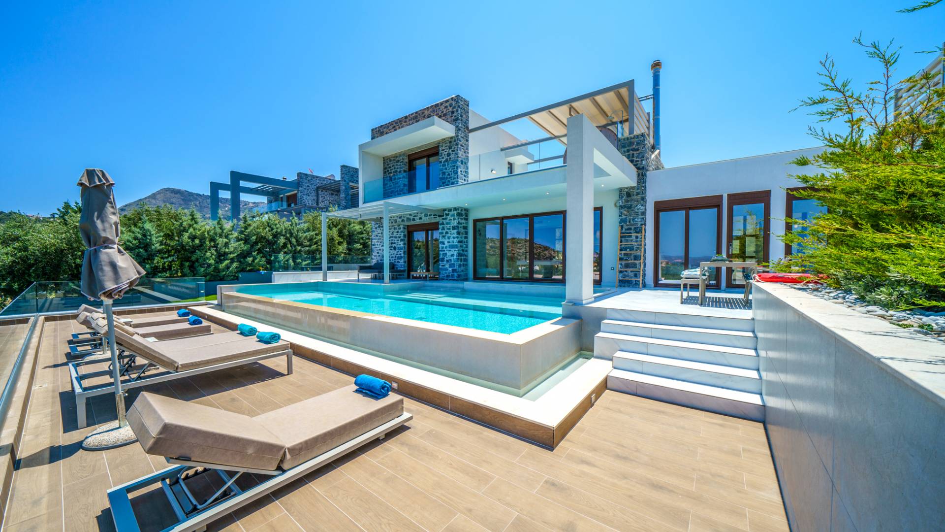 All'interno, Anelia Villa offre due cucine completamente attrezzate e due ampie zone soggiorno, che si collegano perfettamente agli spazi esterni, offrendo l'ambiente perfetto per il relax e l'intrattenimento.