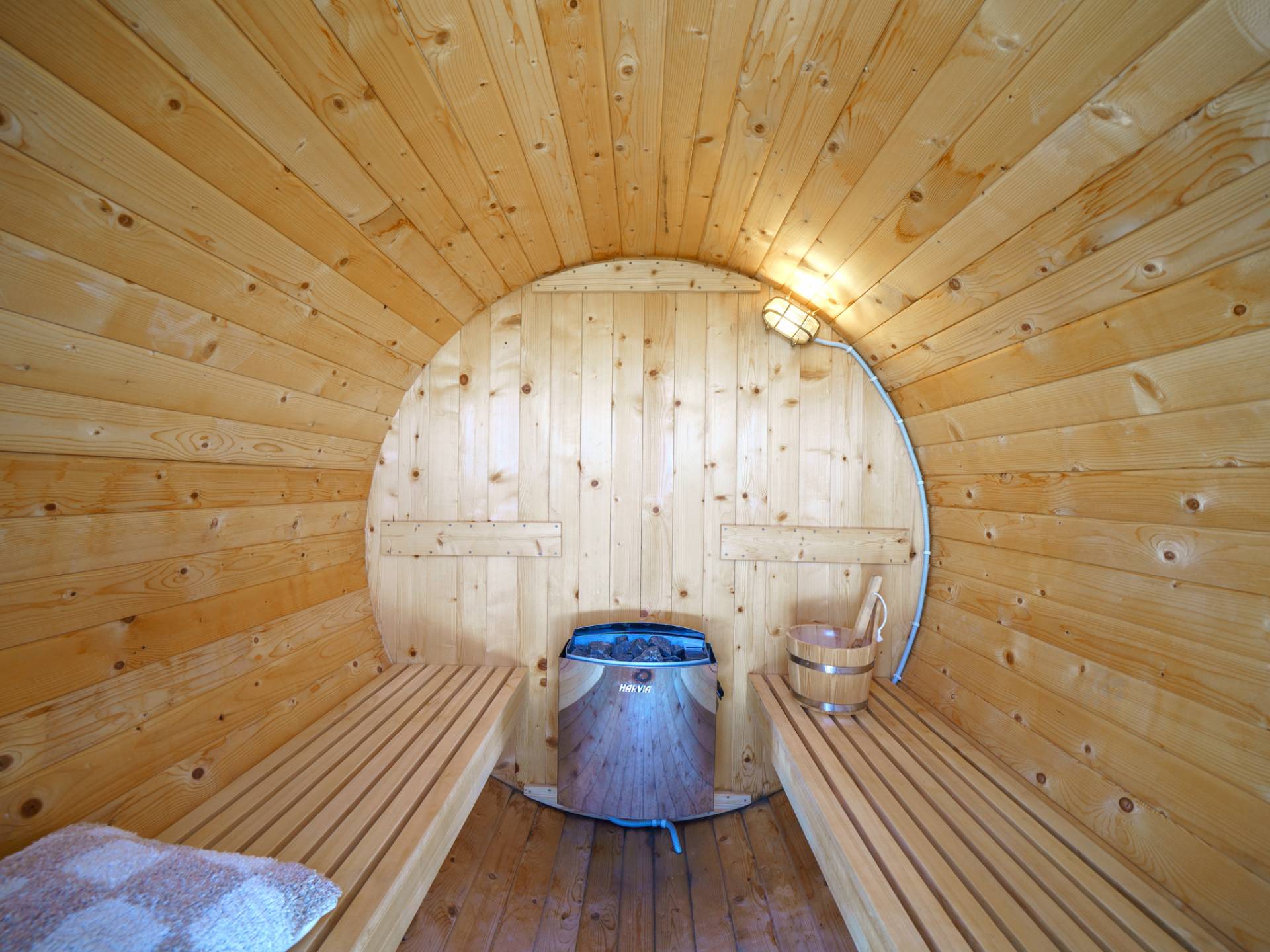 Entra nell'edificio a sinistra, dove rilassanti toni pastello creano un'atmosfera invitante. La zona giorno a pianta aperta comprende una Smart TV da 65 pollici, una PlayStation 5, un comodo divano e una stufa a legna per le notti più fresche. La cucina completamente attrezzata, completa di elettrodomestici moderni e di un'isola per la colazione con quattro sgabelli, semplifica la preparazione dei pasti. Adiacente alla cucina c'è un tavolo da pranzo per quattro, che offre una vista pittoresca sulla piscina.