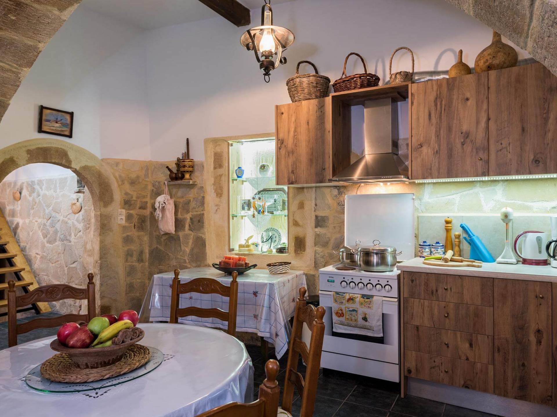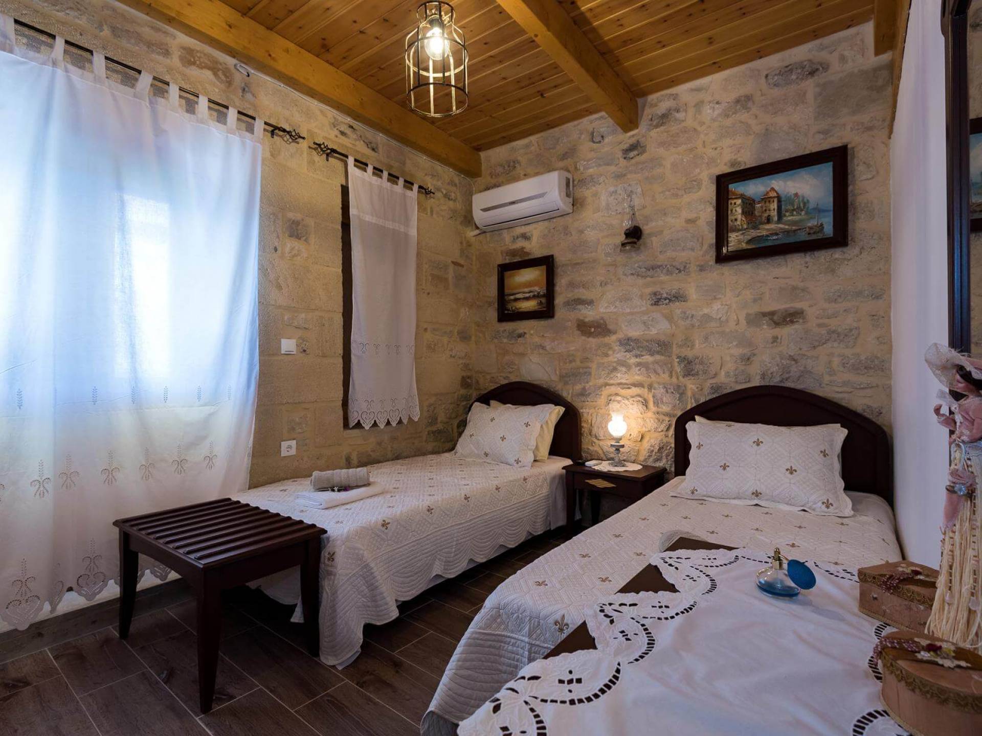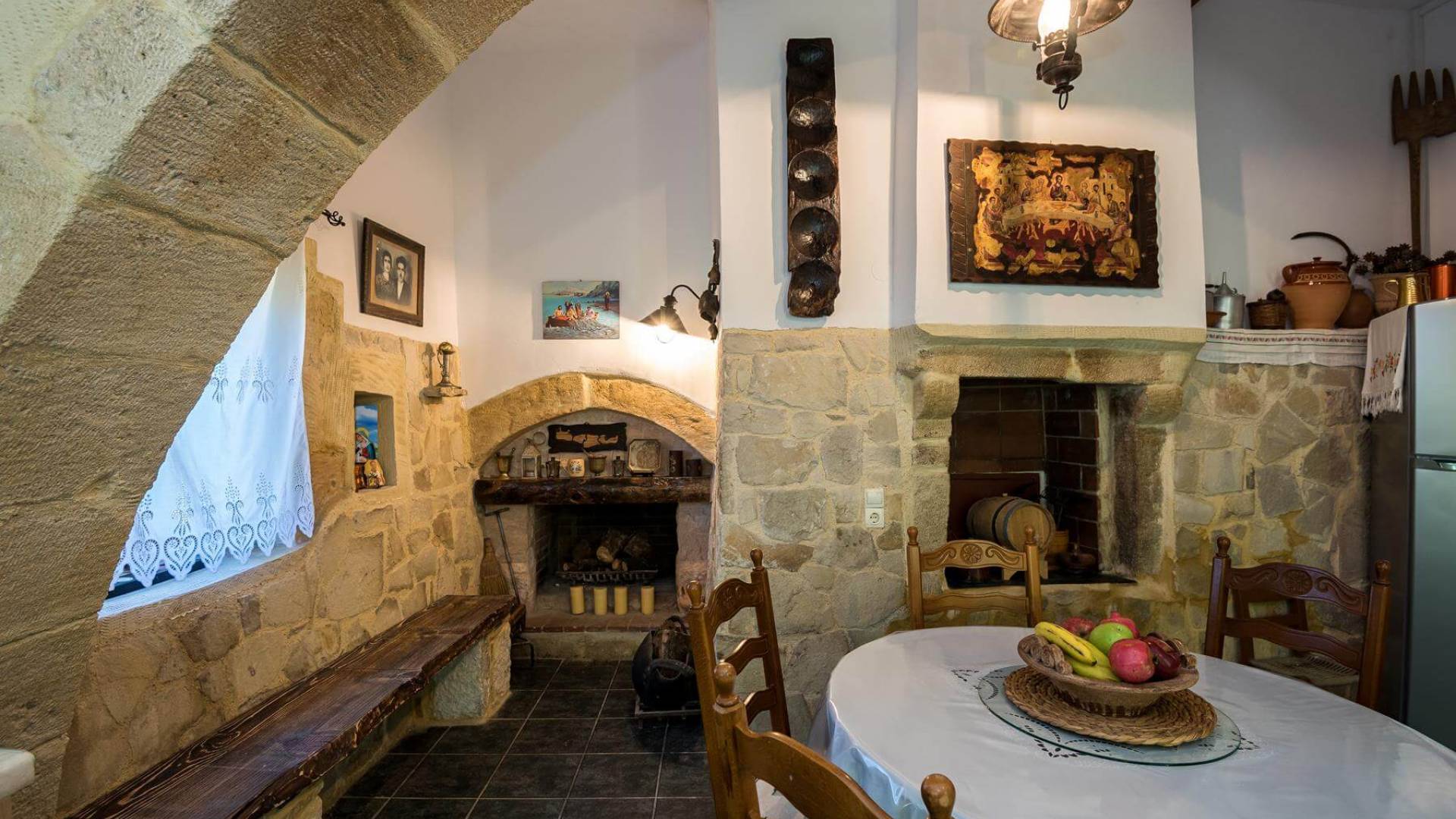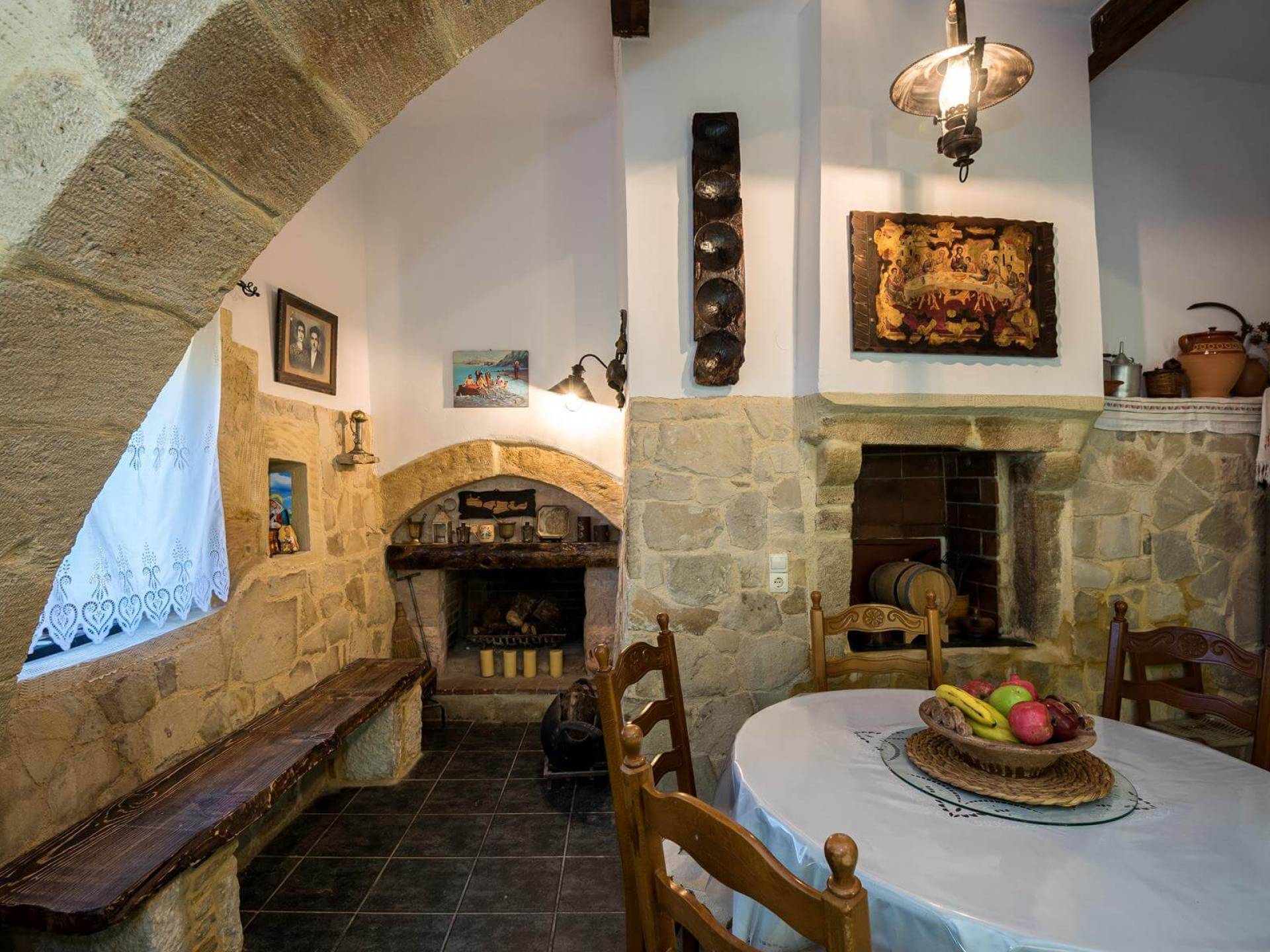 Costruita in una strada tranquilla del villaggio di Azogyras, l'Argyro Villa Chania è un'autentica villa in pietra cretese completamente rinnovata, che consiste in un edificio principale di 90 mq con archi in pietra e alcuni splendidi soffitti in legno. Argyro Villa Chania si trova molto vicino alle spiagge più famose dell'isola, Falasarna e Balos. Argiro Villa Chania si compone di due livelli. Al piano terra si trova un comodo soggiorno con TV e caminetto. Accanto c'è la zona pranzo e un tavolo da pranzo per un massimo di 6 persone.