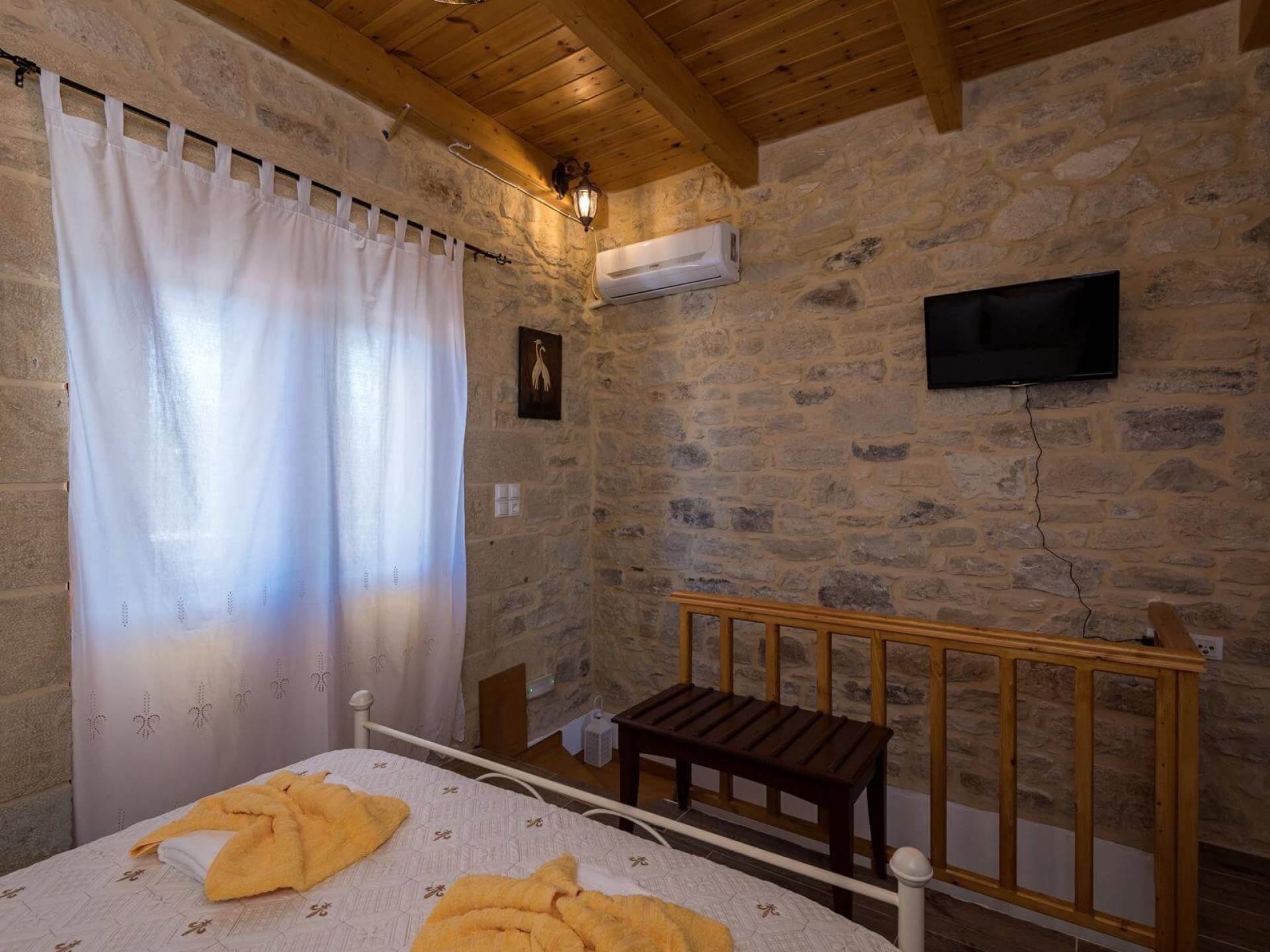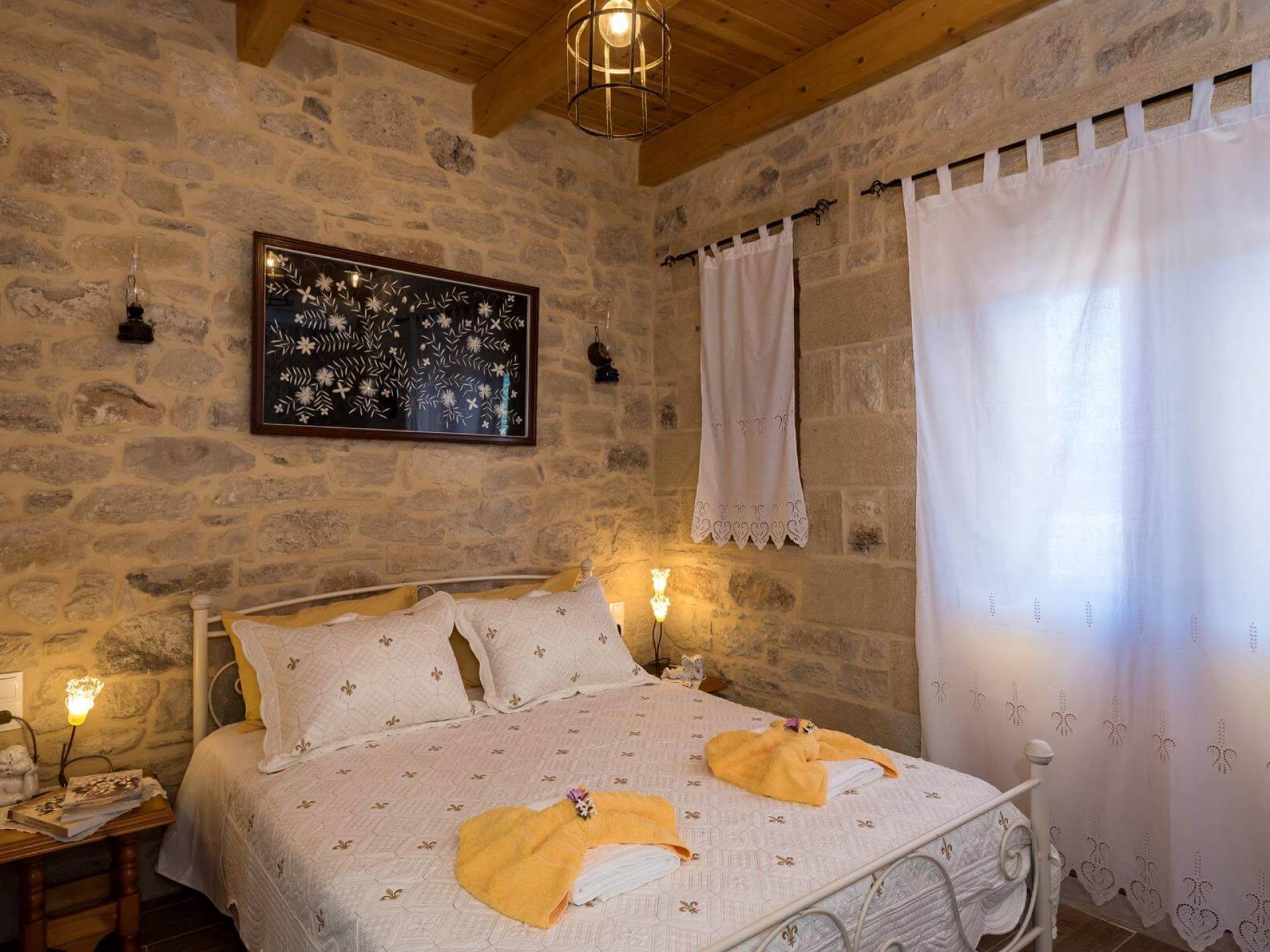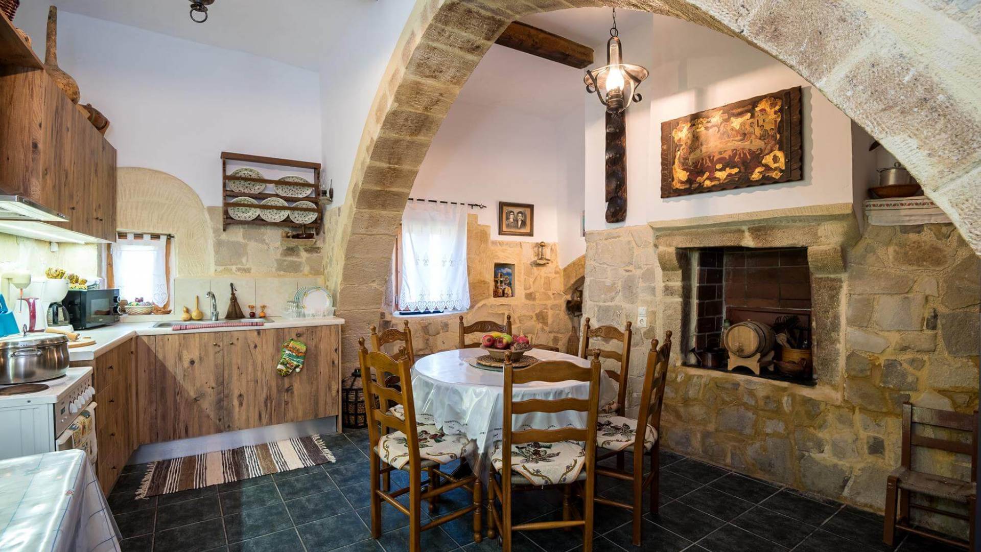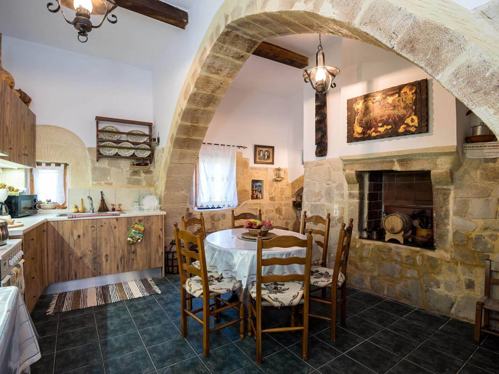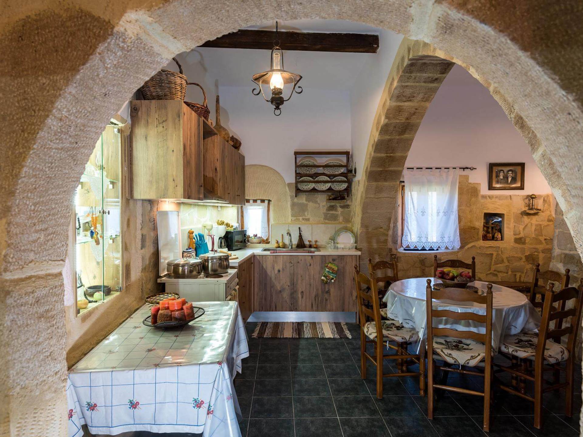 Costruita in una strada tranquilla del villaggio di Azogyras, l'Argyro Villa Chania è un'autentica villa in pietra cretese completamente rinnovata, che consiste in un edificio principale di 90 mq con archi in pietra e alcuni splendidi soffitti in legno. Argyro Villa Chania si trova molto vicino alle spiagge più famose dell'isola, Falasarna e Balos. Argiro Villa Chania si compone di due livelli. Al piano terra si trova un comodo soggiorno con TV e caminetto. Accanto c'è la zona pranzo e un tavolo da pranzo per un massimo di 6 persone.