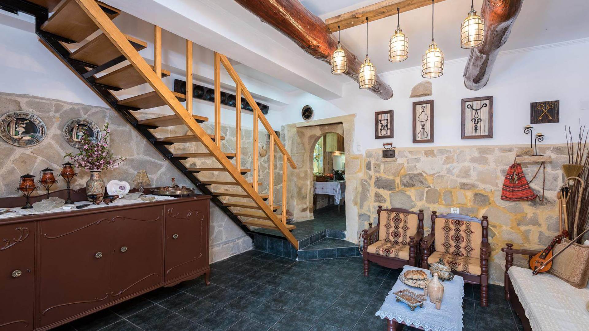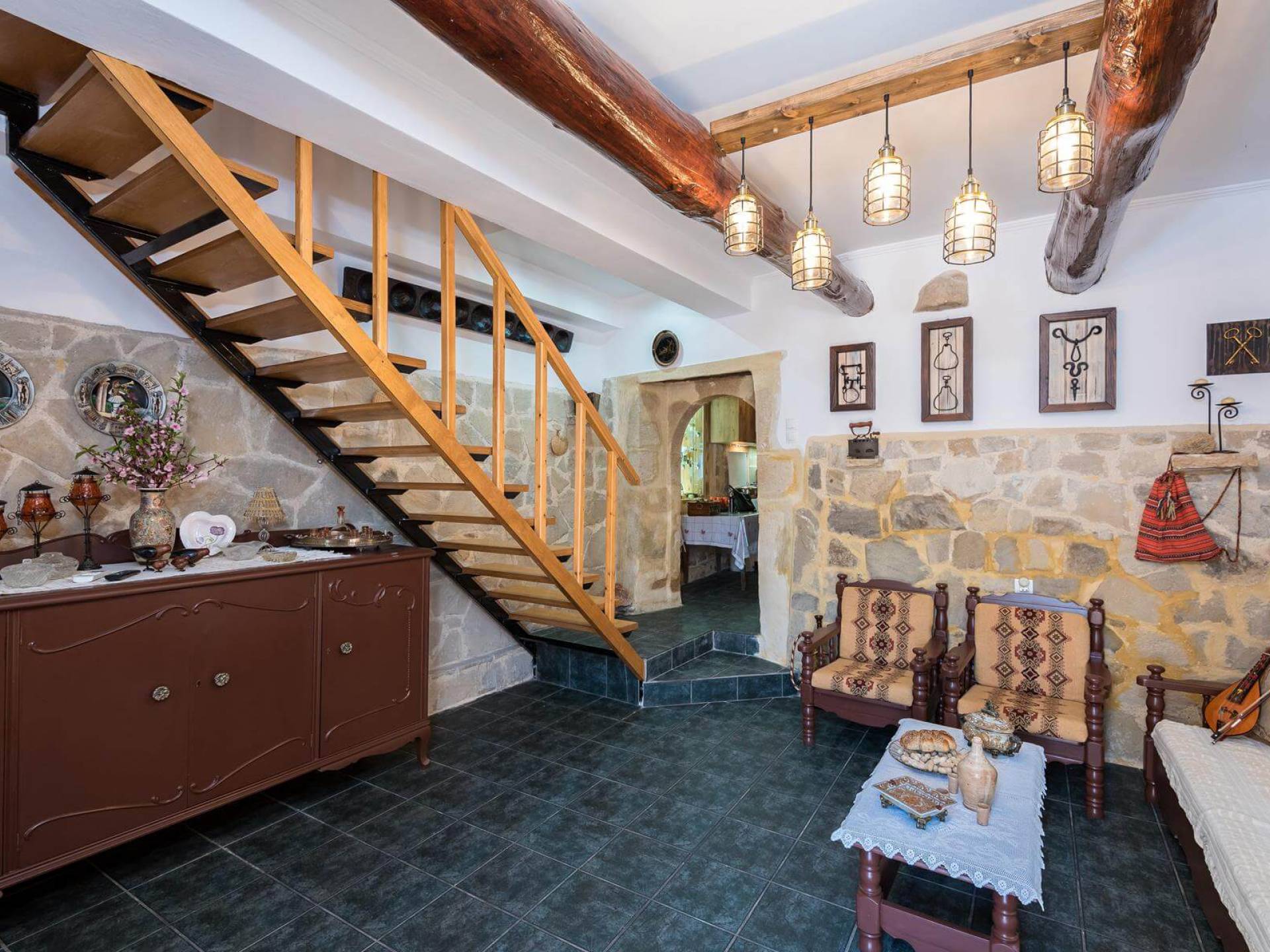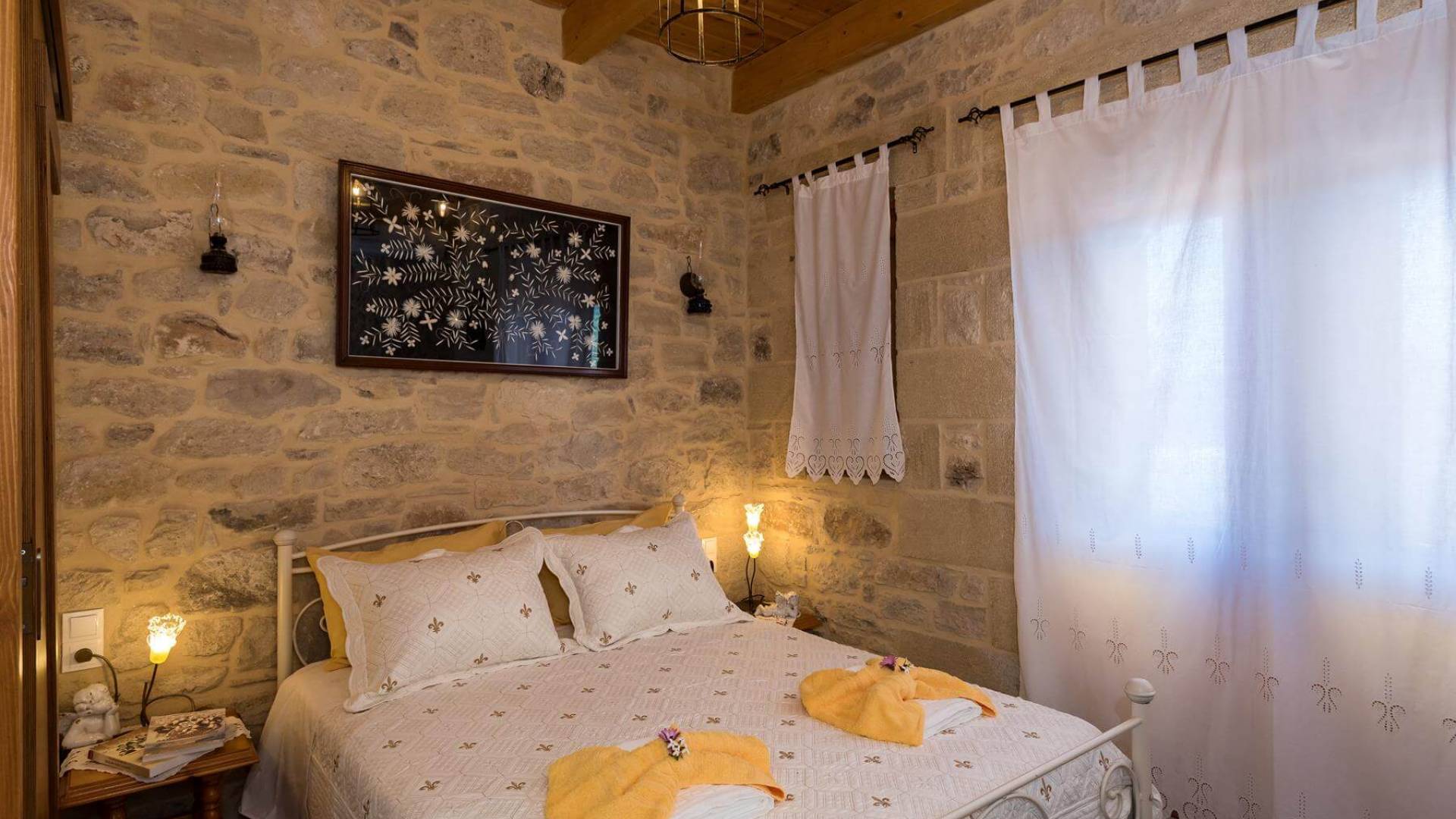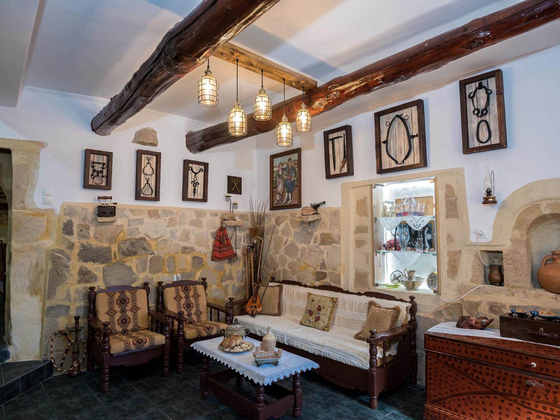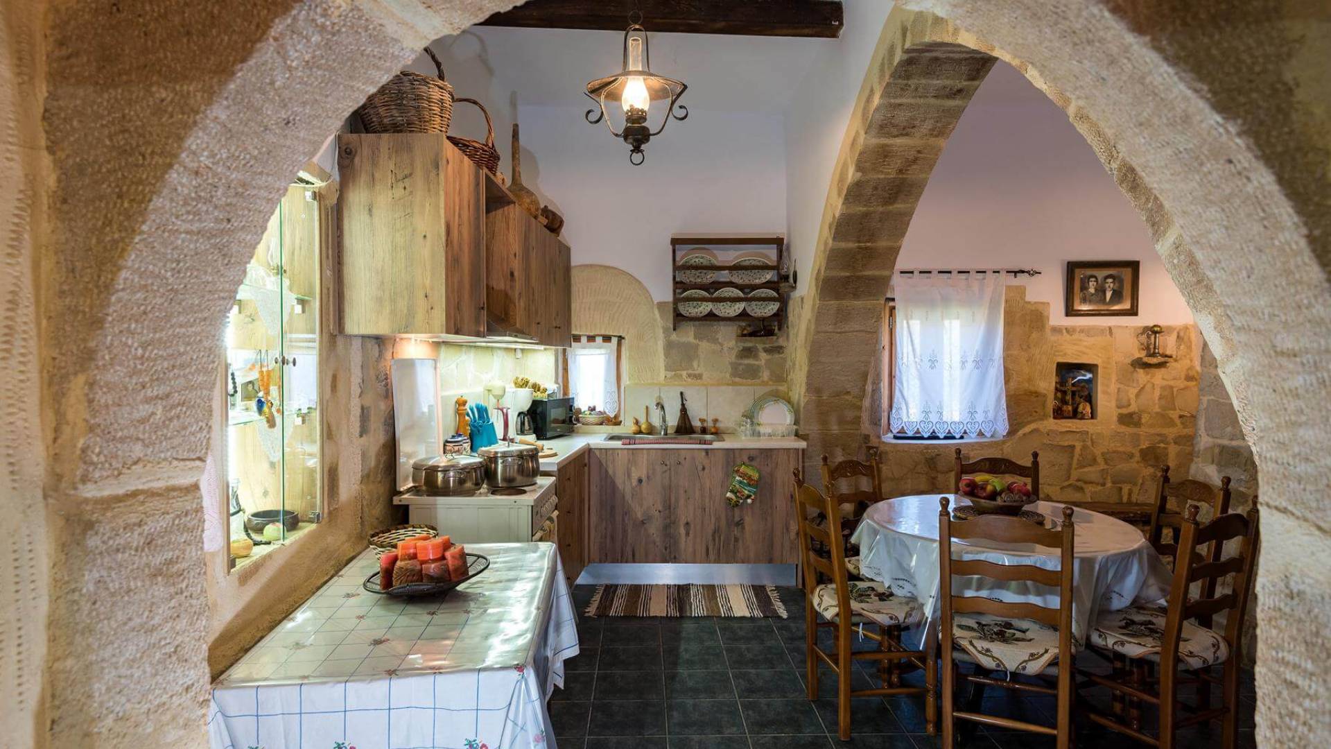 Costruita in una strada tranquilla del villaggio di Azogyras, l'Argyro Villa Chania è un'autentica villa in pietra cretese completamente rinnovata, che consiste in un edificio principale di 90 mq con archi in pietra e alcuni splendidi soffitti in legno. Argyro Villa Chania si trova molto vicino alle spiagge più famose dell'isola, Falasarna e Balos. Argiro Villa Chania si compone di due livelli. Al piano terra si trova un comodo soggiorno con TV e caminetto. Accanto c'è la zona pranzo e un tavolo da pranzo per un massimo di 6 persone.