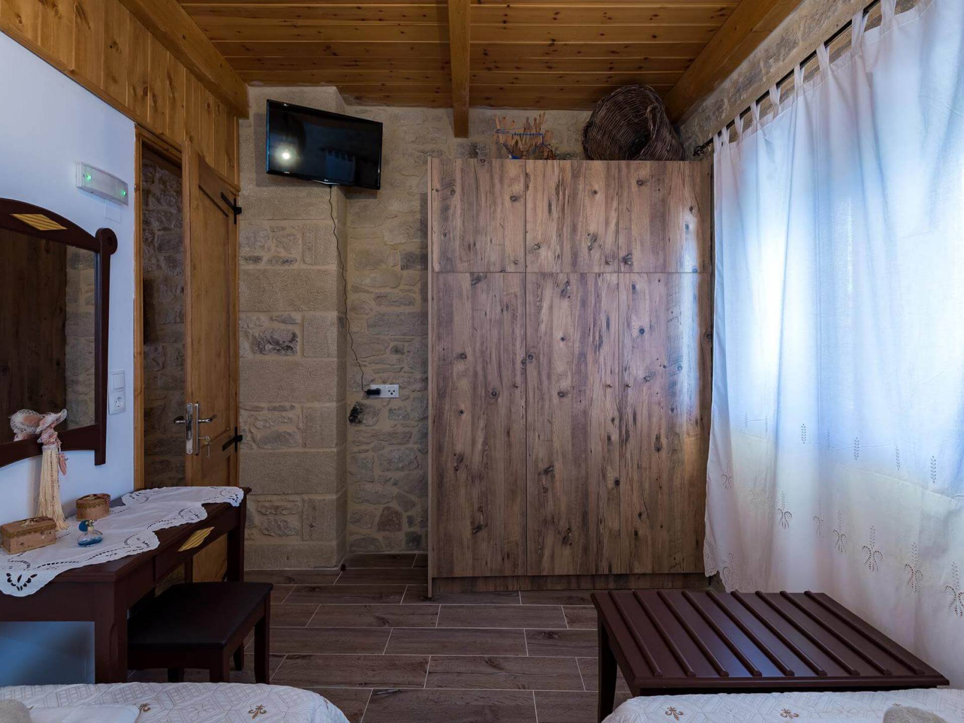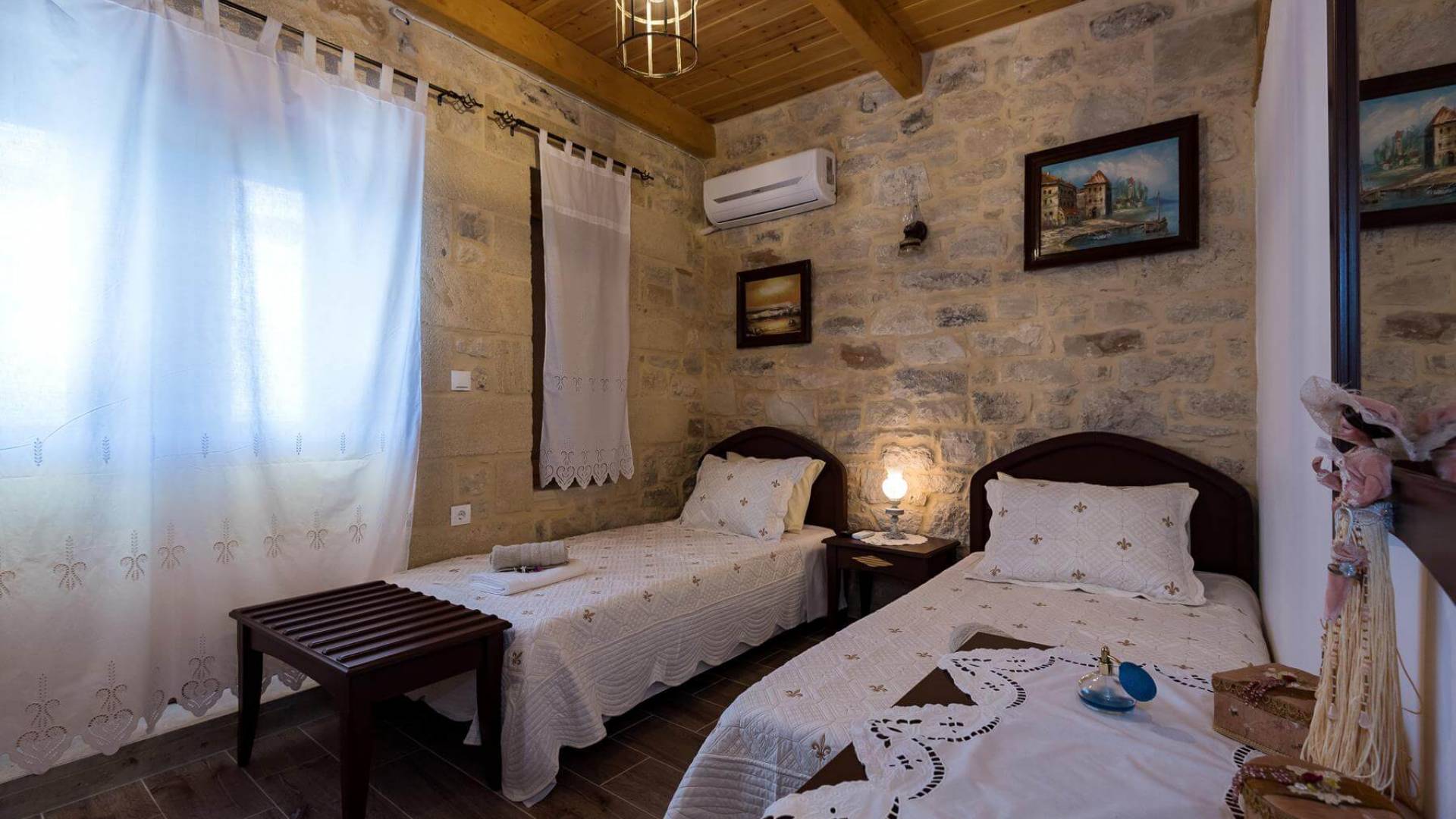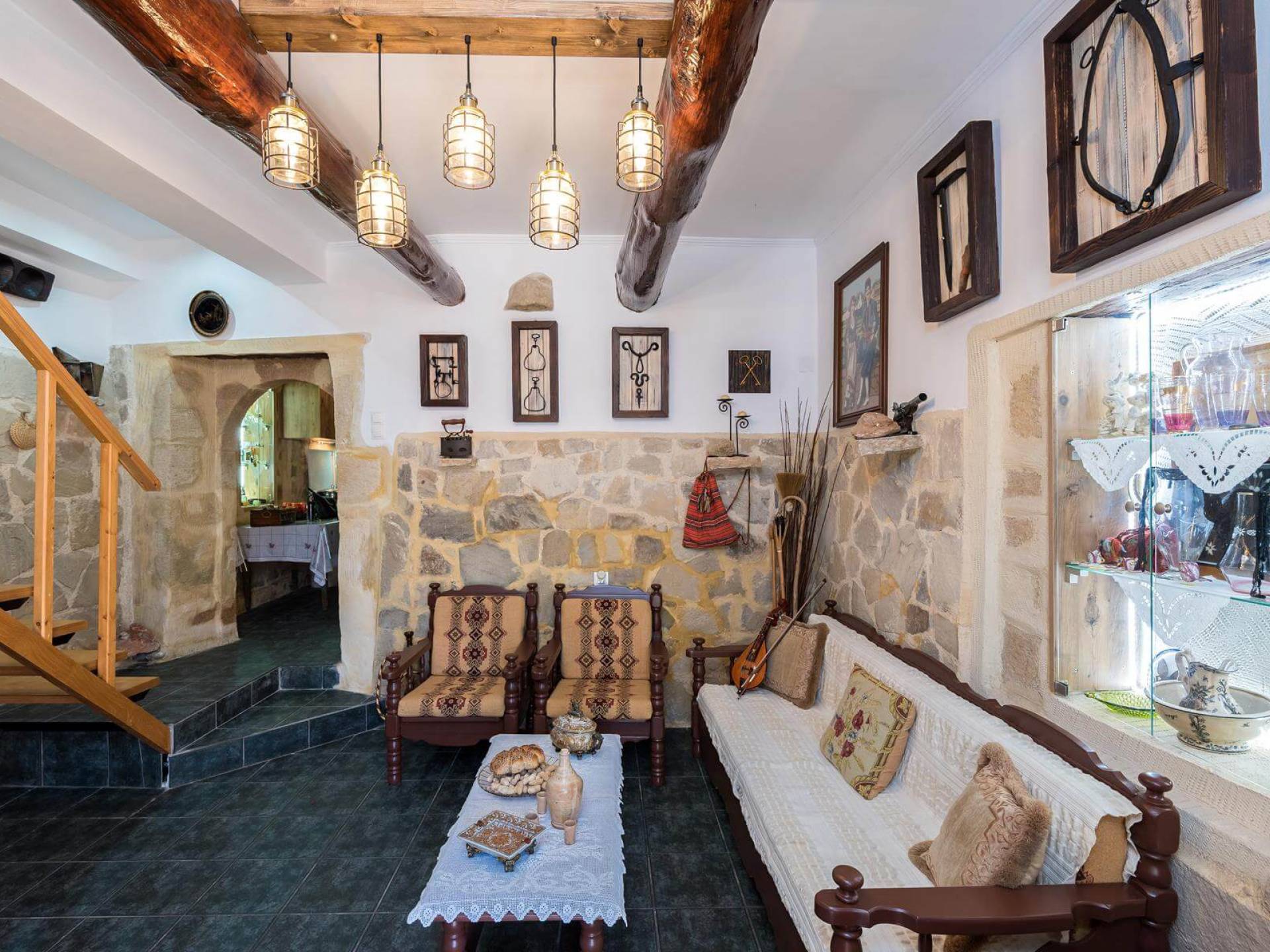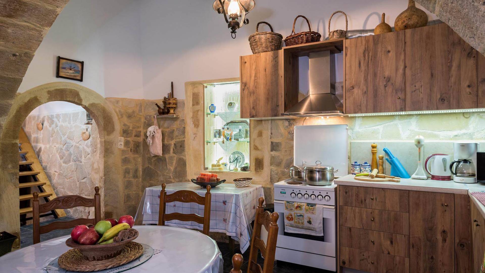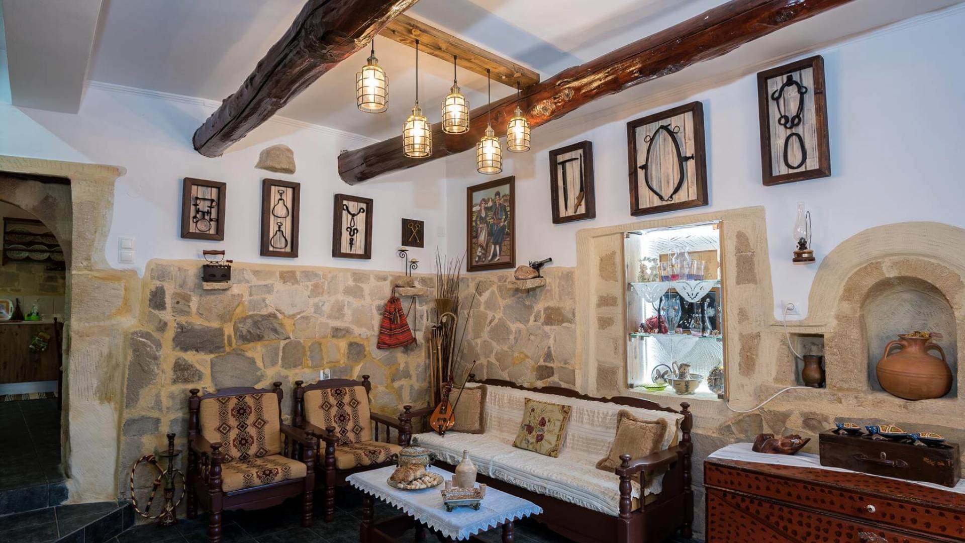 Costruita in una strada tranquilla del villaggio di Azogyras, l'Argyro Villa Chania è un'autentica villa in pietra cretese completamente rinnovata, che consiste in un edificio principale di 90 mq con archi in pietra e alcuni splendidi soffitti in legno. Argyro Villa Chania si trova molto vicino alle spiagge più famose dell'isola, Falasarna e Balos. Argiro Villa Chania si compone di due livelli. Al piano terra si trova un comodo soggiorno con TV e caminetto. Accanto c'è la zona pranzo e un tavolo da pranzo per un massimo di 6 persone.