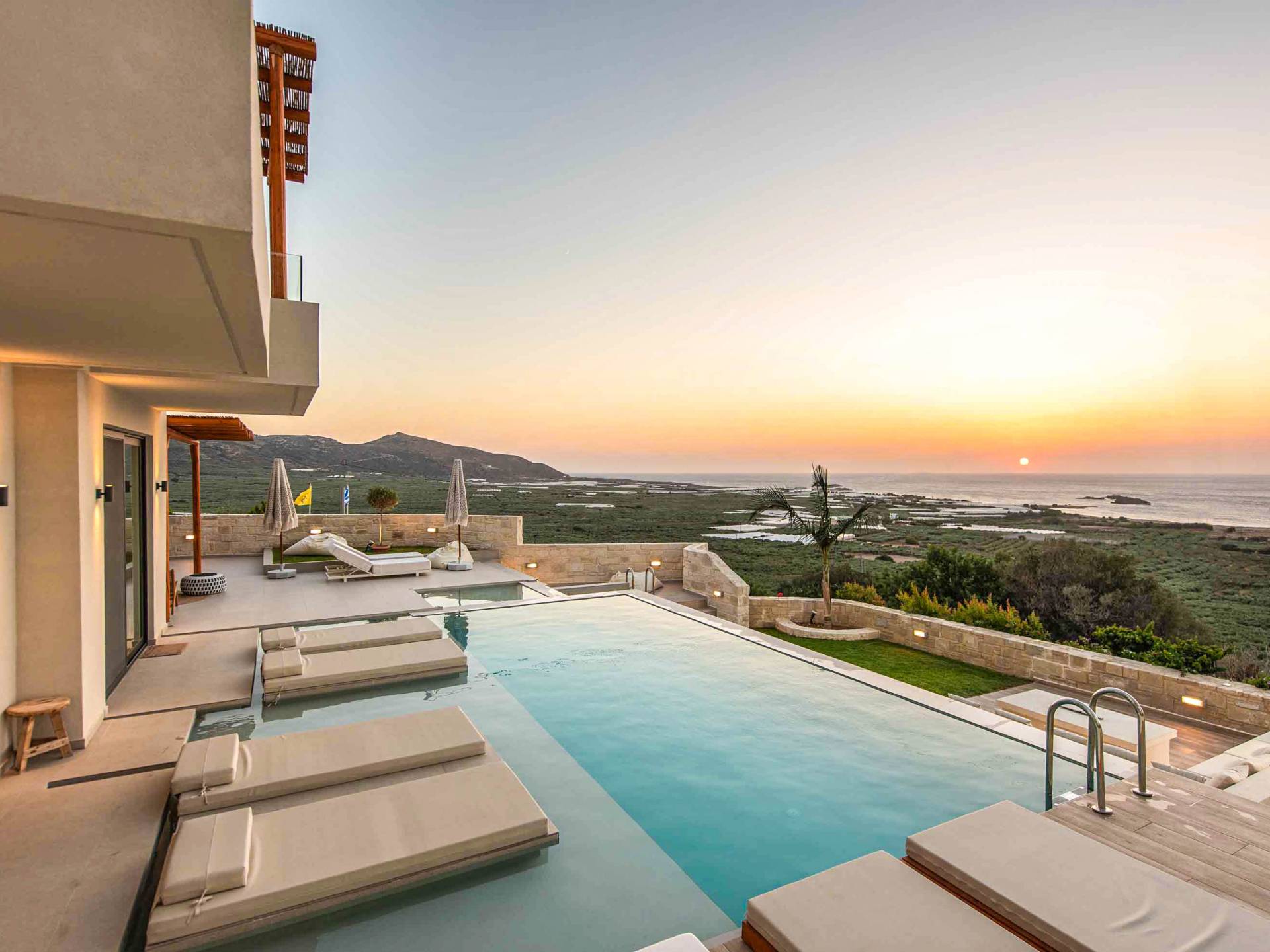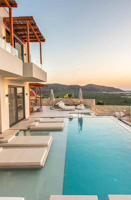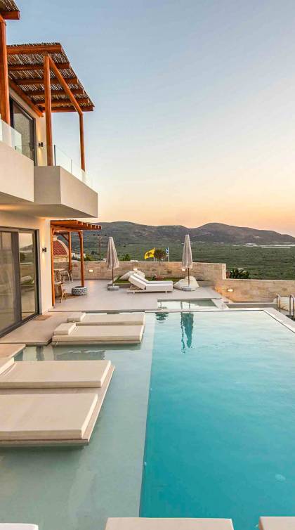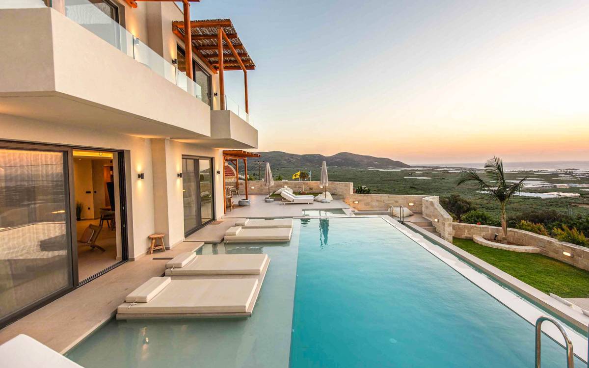 Immagina di svegliarti con una vista mozzafiato sul Mar Egeo, cullato dal suono rilassante delle onde. La nostra selezione di ville di lusso a Falassarna ti permette di vivere la bellezza dell’isola senza rinunciare al comfort. Ogni villa è elegante, dotata di piscina privata, servizi moderni e ampie terrazze perfette per una cena al tramonto o una colazione in totale relax.
