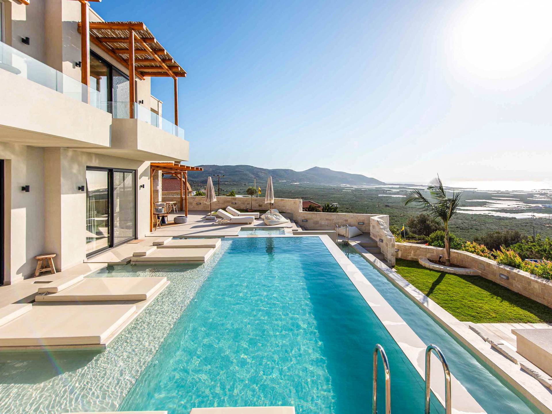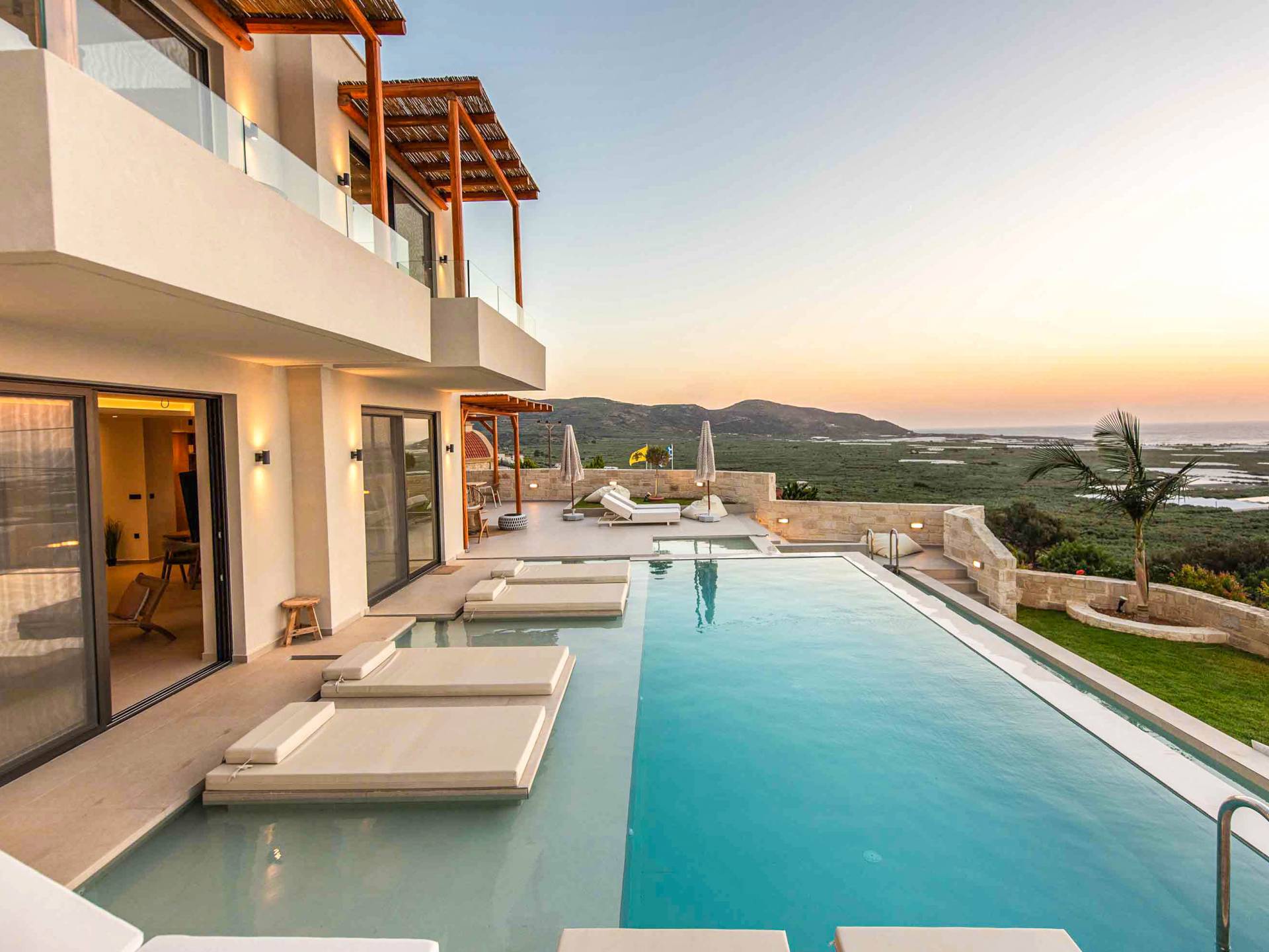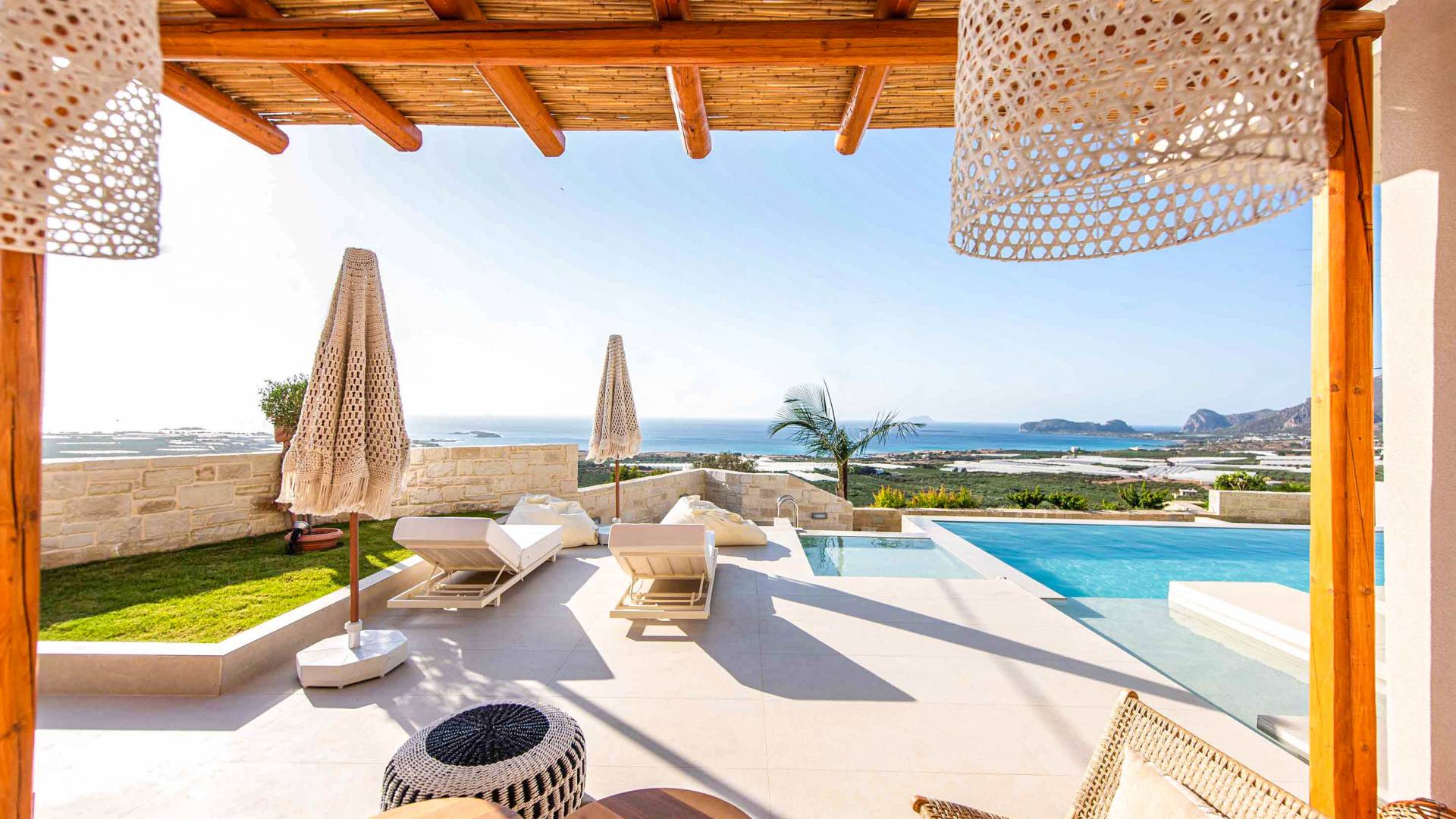 Immagina di svegliarti con una vista mozzafiato sul Mar Egeo, cullato dal suono rilassante delle onde. La nostra selezione di ville di lusso a Falassarna ti permette di vivere la bellezza dell’isola senza rinunciare al comfort. Ogni villa è elegante, dotata di piscina privata, servizi moderni e ampie terrazze perfette per una cena al tramonto o una colazione in totale relax.