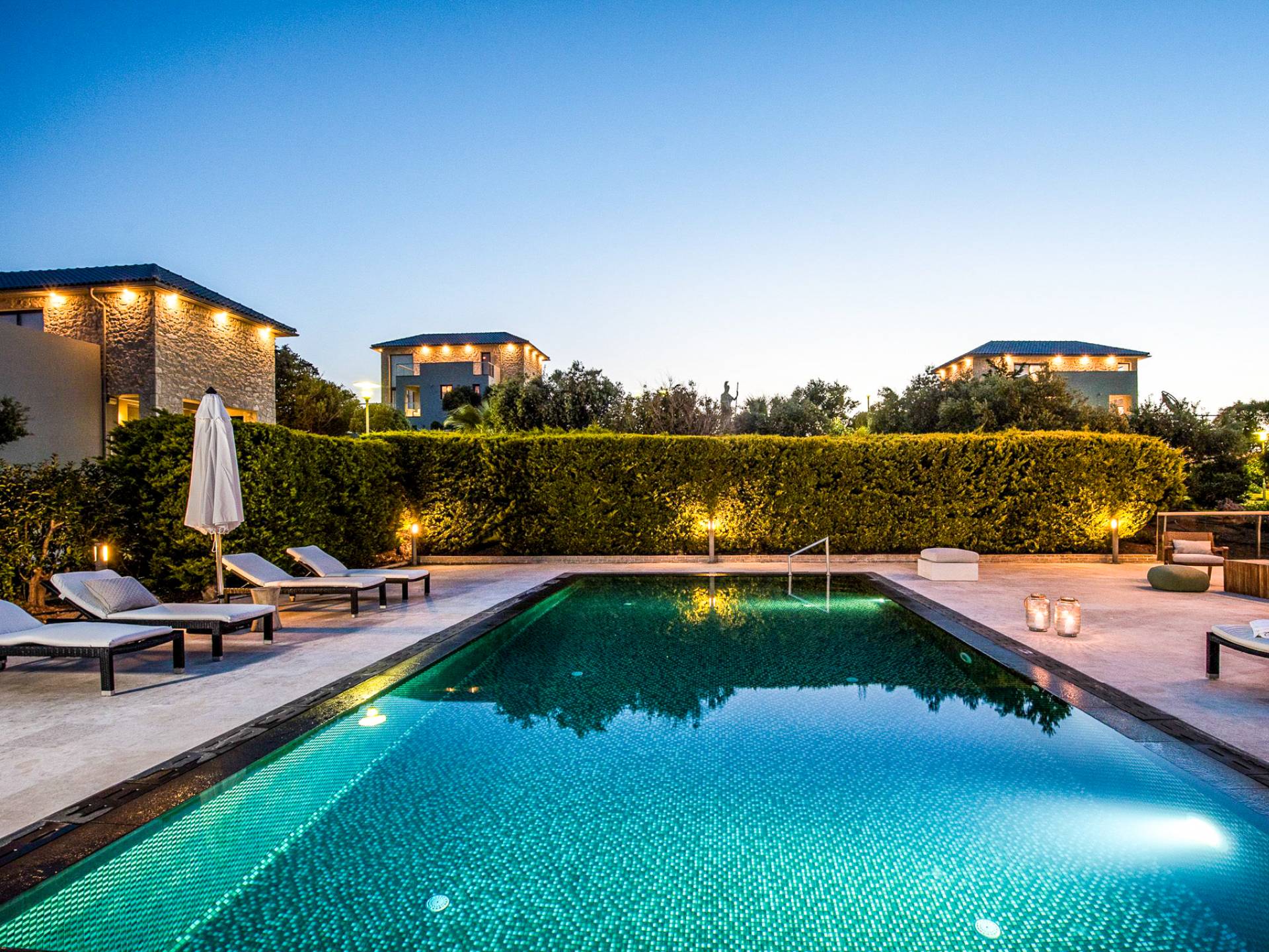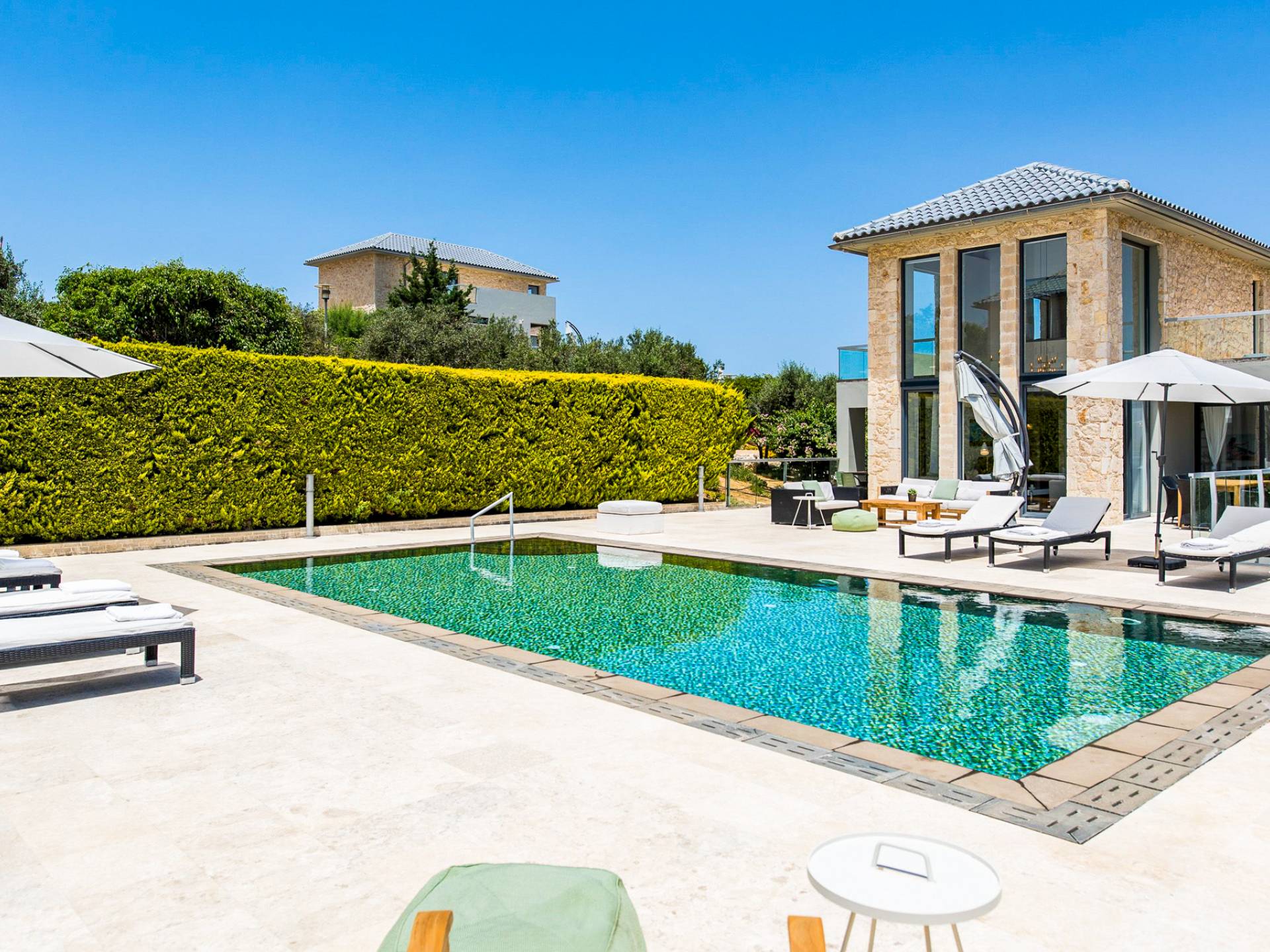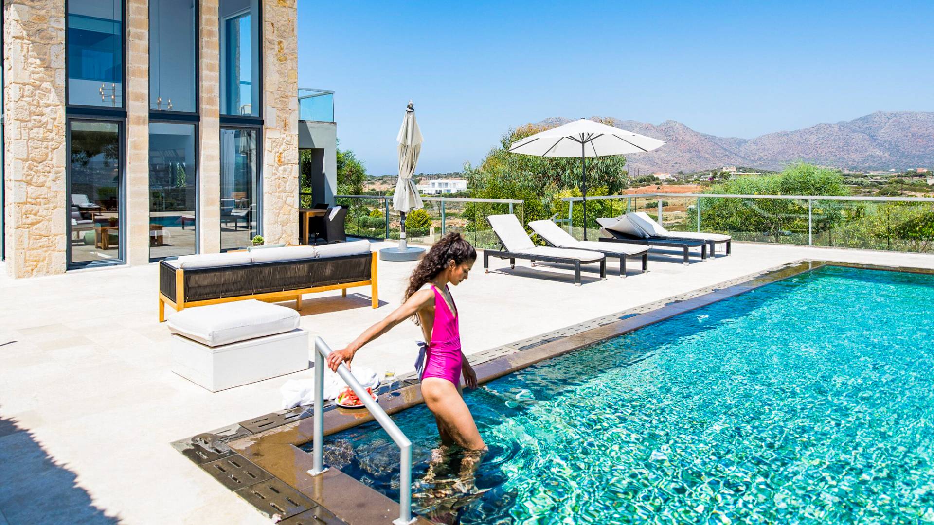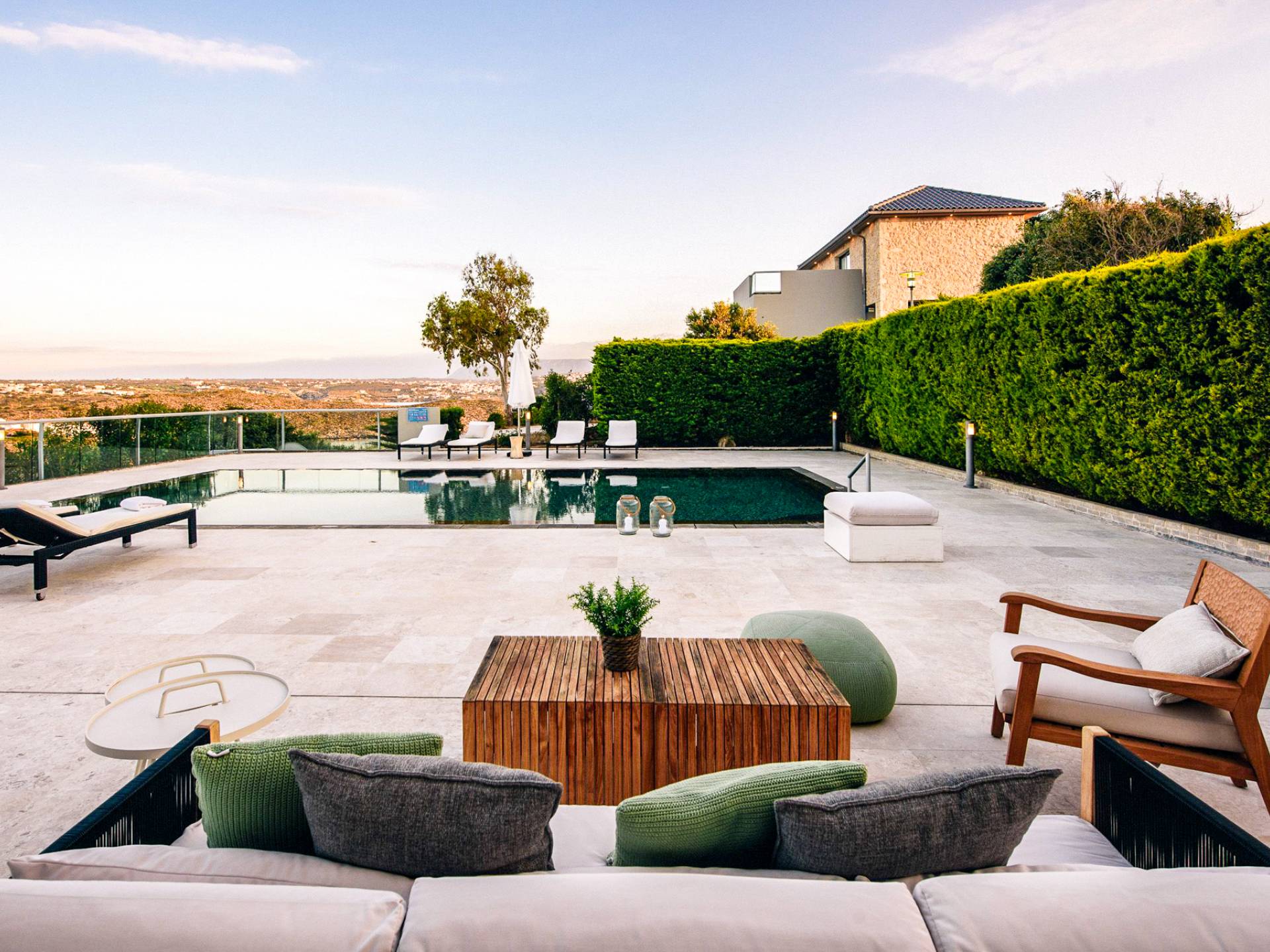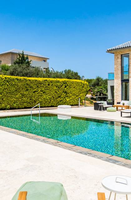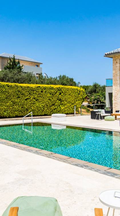 Immerse yourself in the essence of Cretan living with a private garden and poolside haven designed for both relaxation and play: