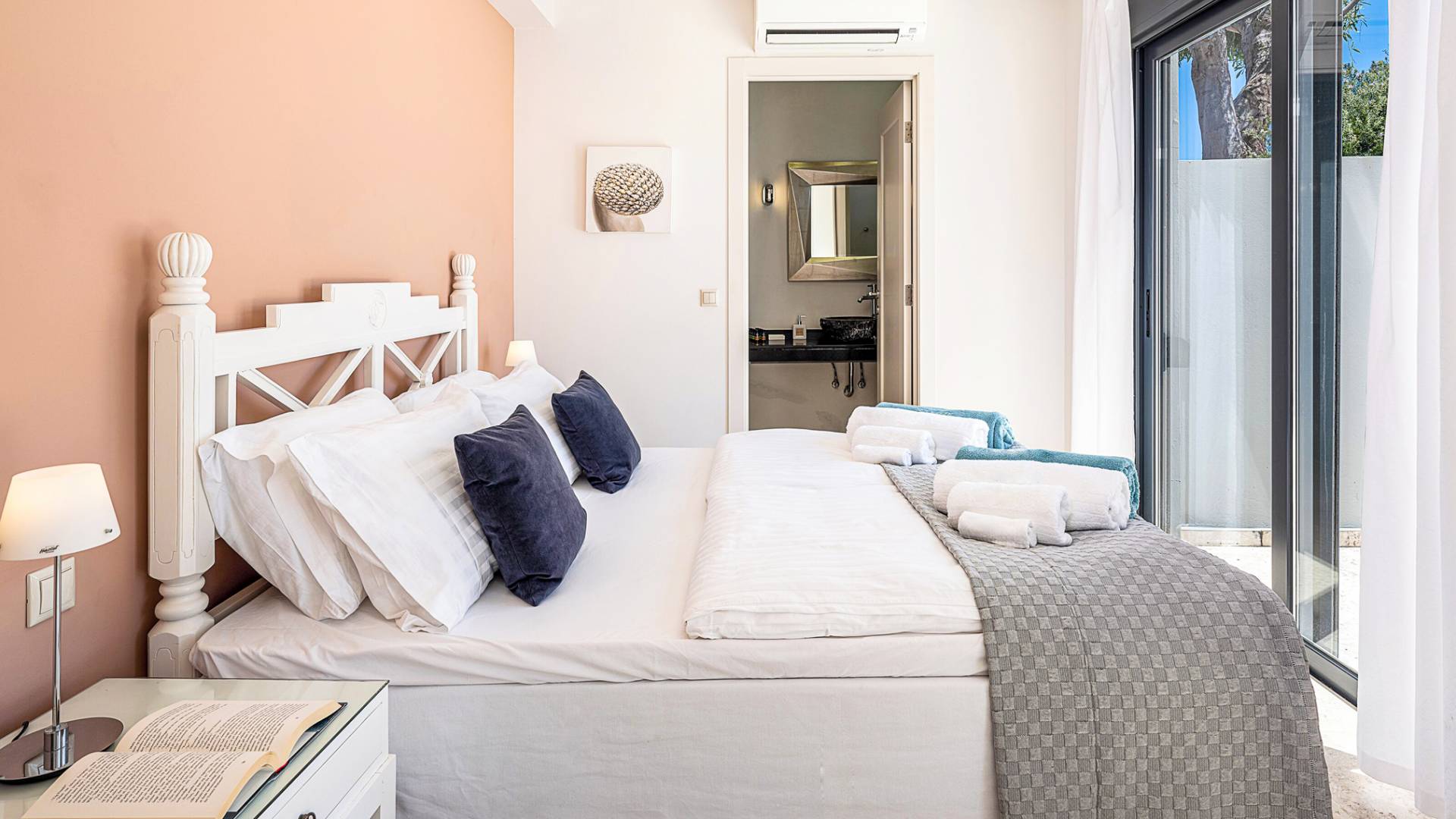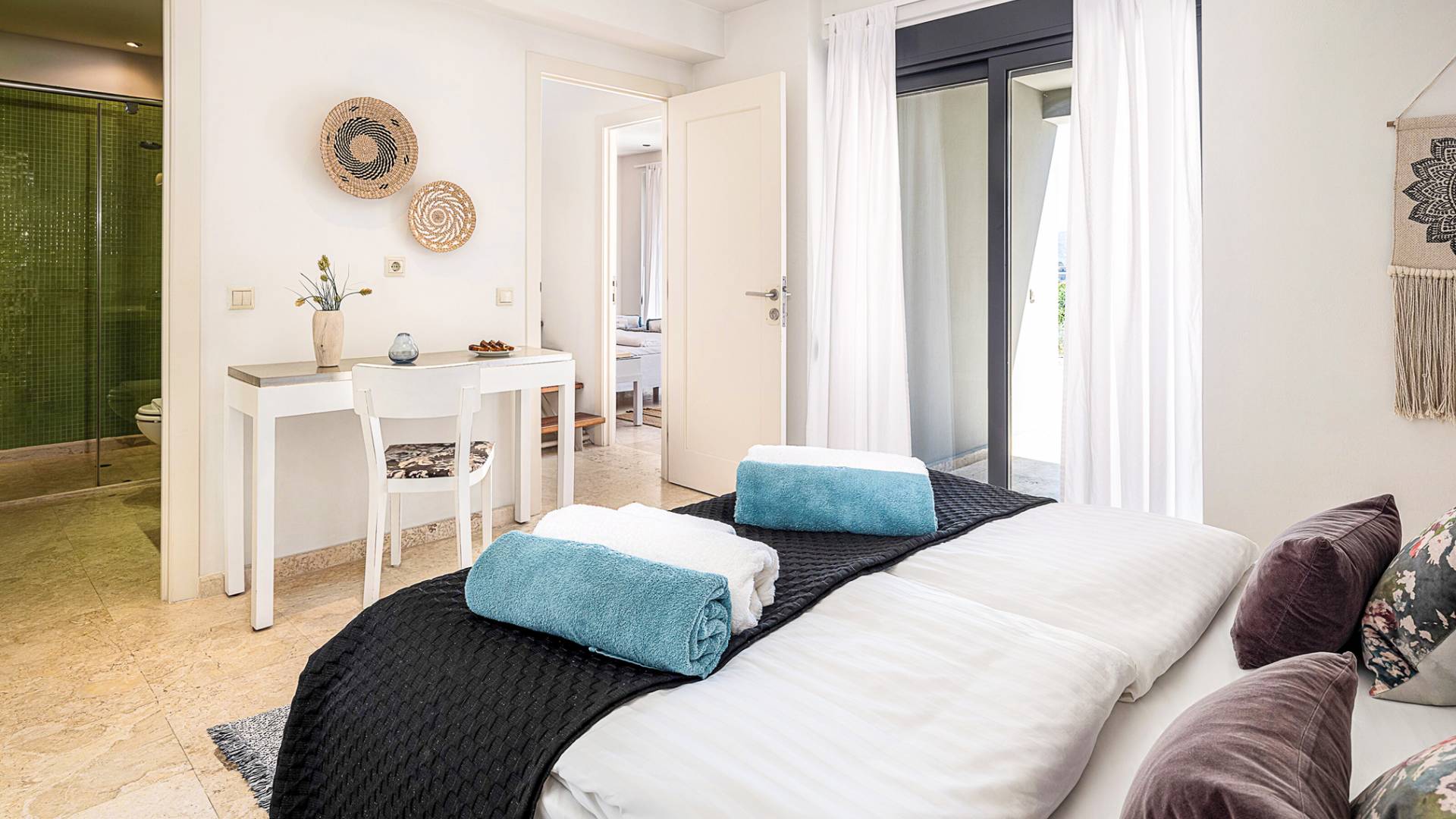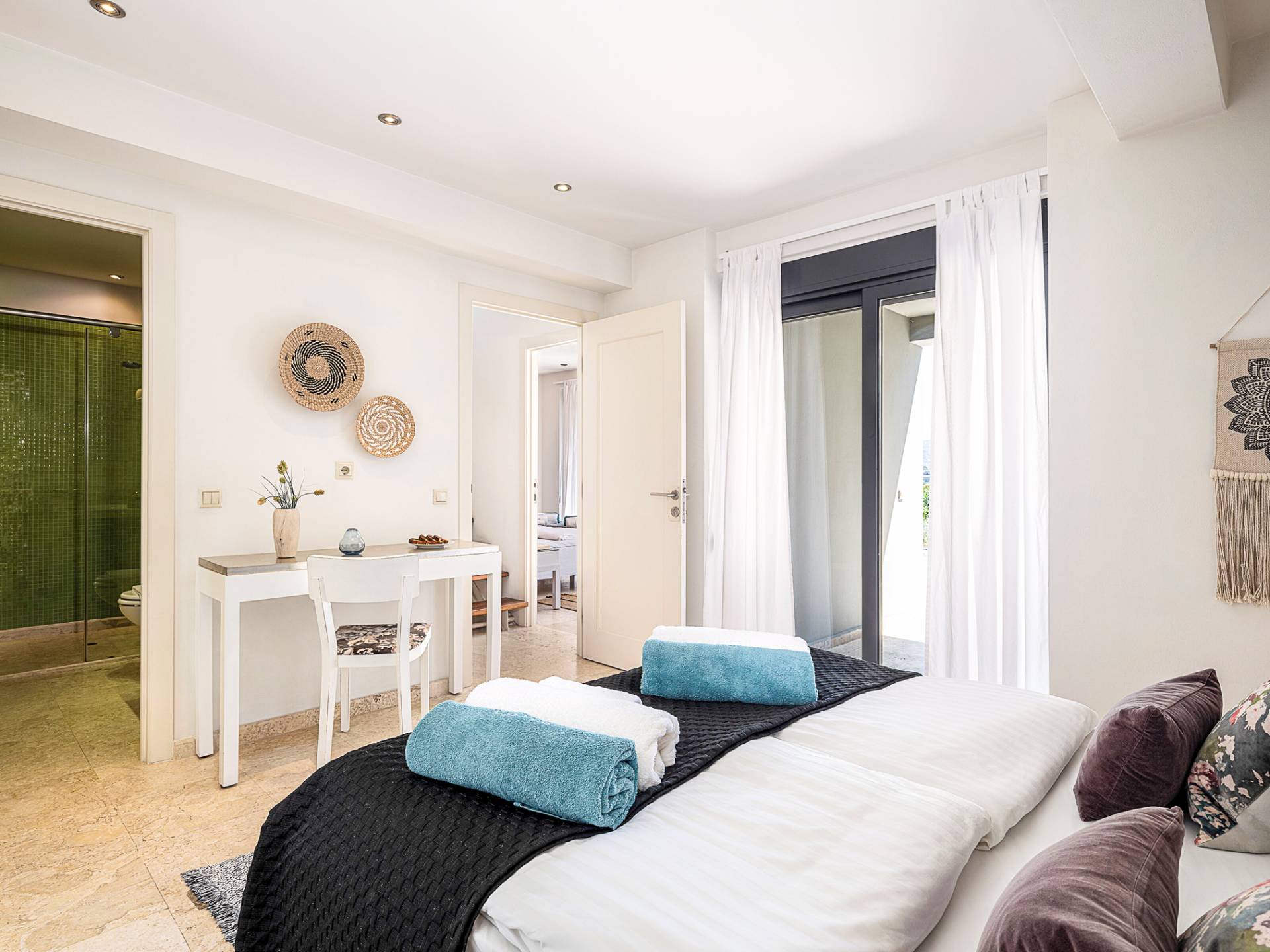 - Bedroom 2 with king bed, ensuite bathroom and terrace access