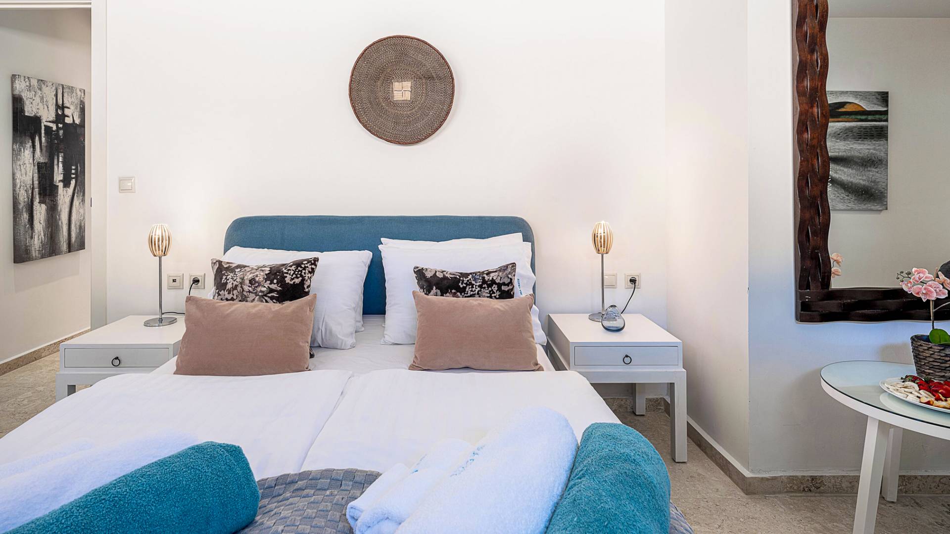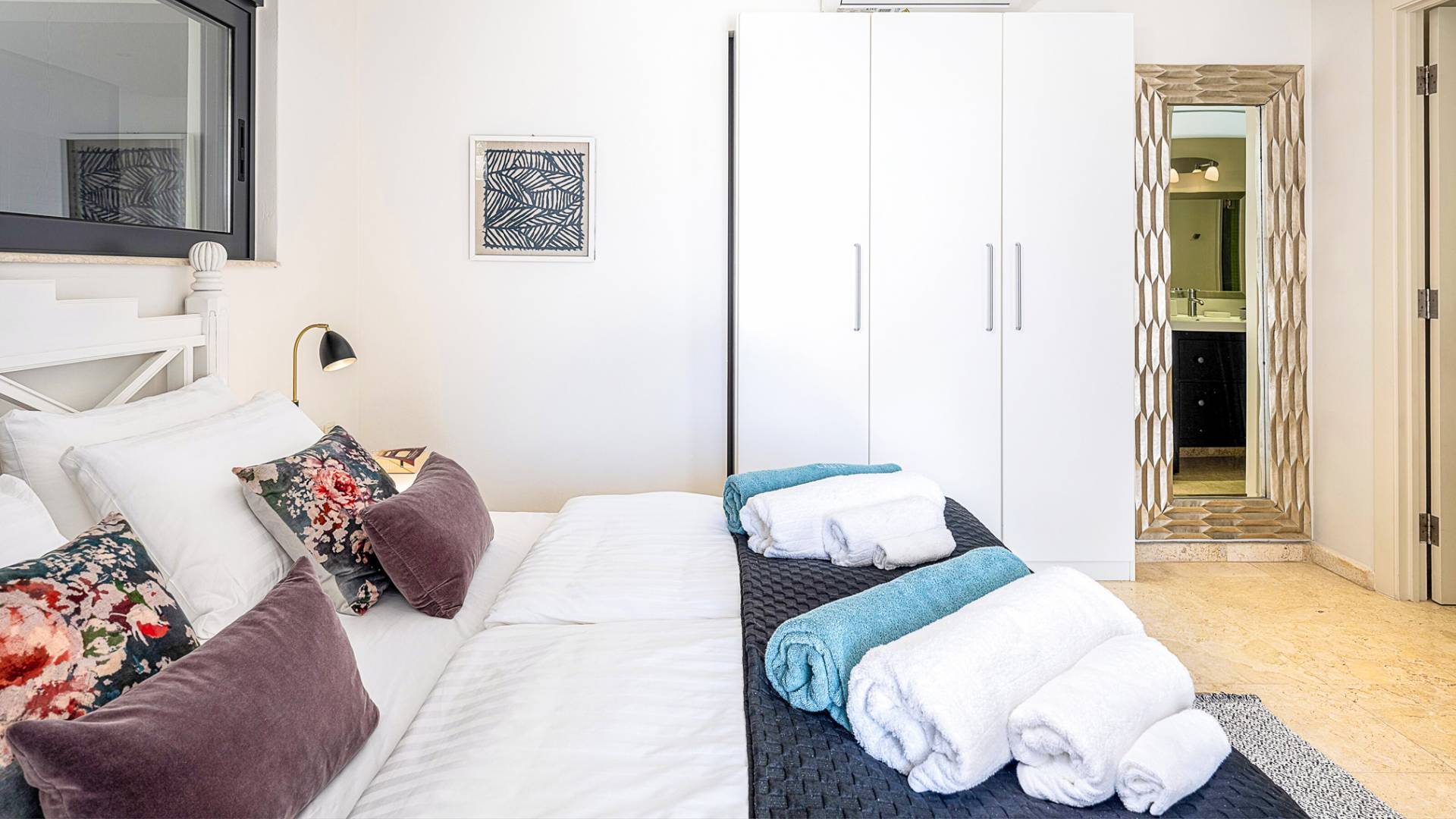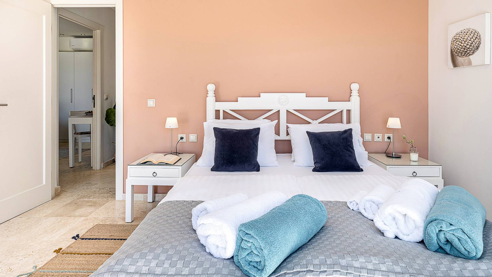 - Bedroom 2 with king bed, ensuite bathroom and terrace access