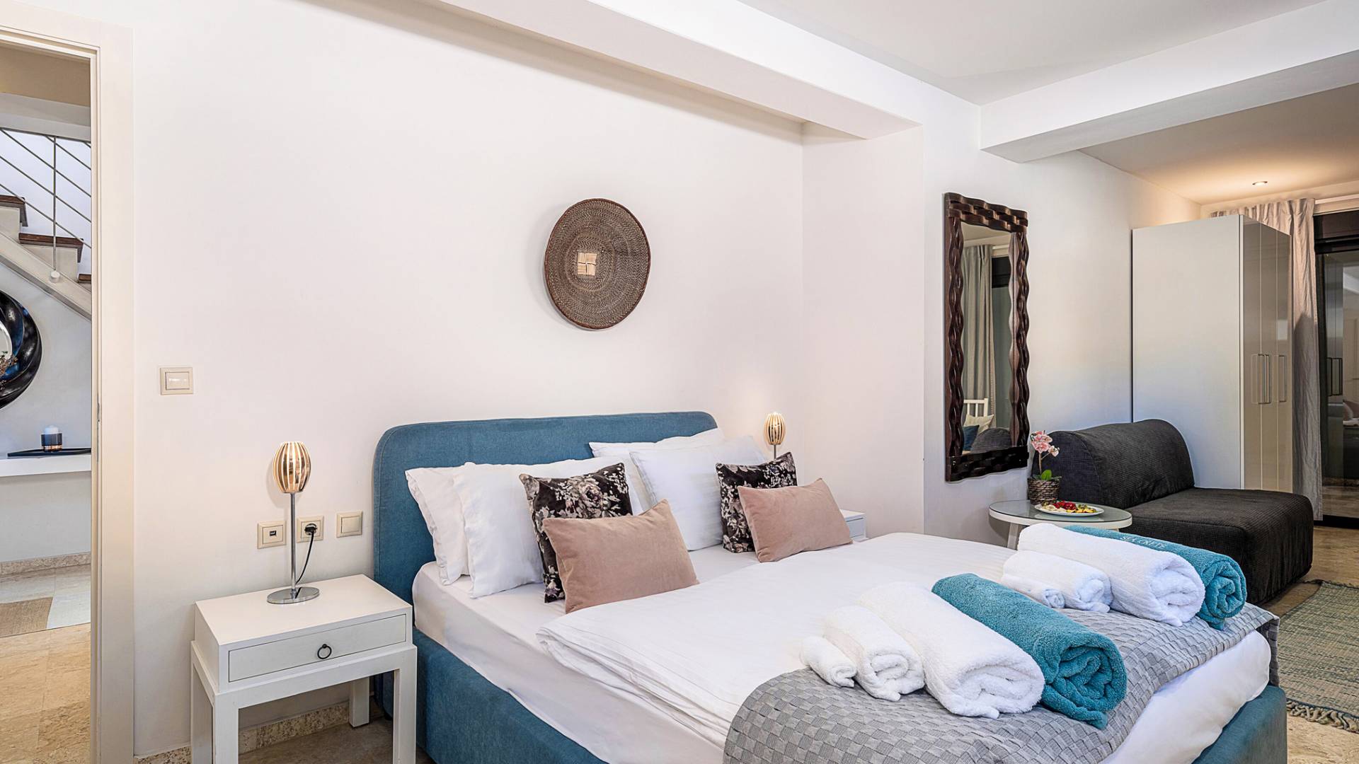 - Bedroom 3 with king bed, ensuite bathroom and terrace access