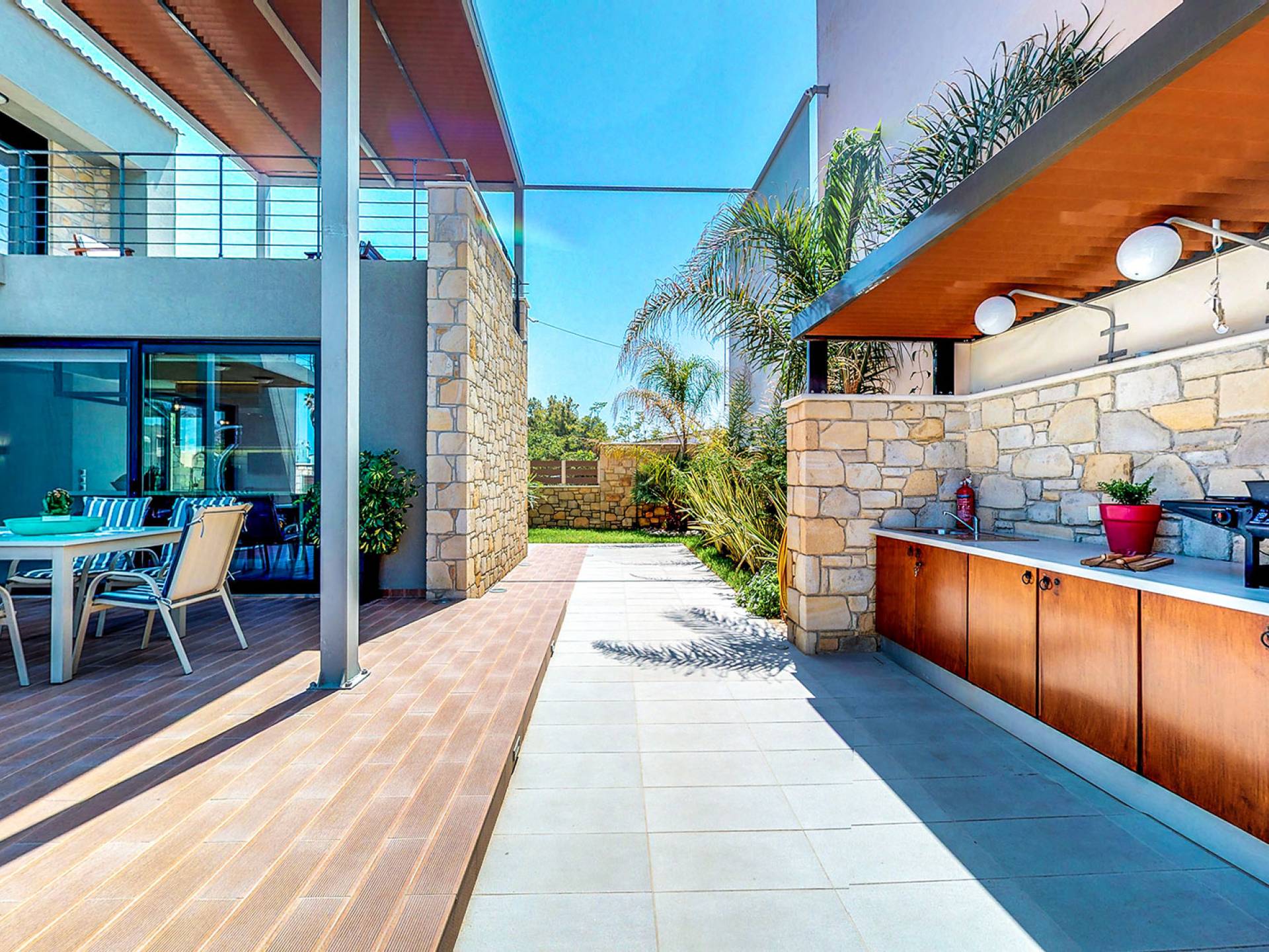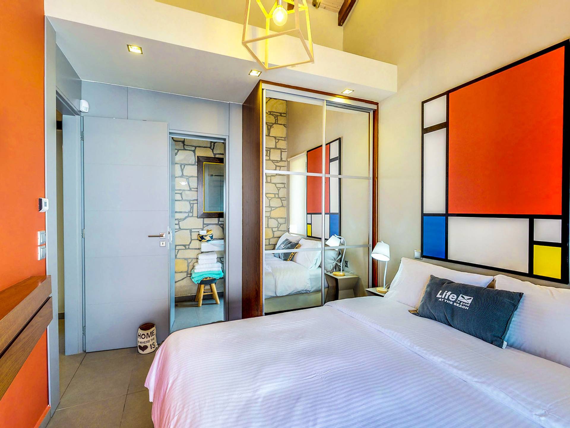 Dessin Villa Chania si distingue per la sua posizione perfetta, la sua struttura moderna e l'incomparabile decorazione degli interni. Dessin VIlla Chania è una nuovissima struttura a due piani di 130 mq a soli 50 metri dalla spiaggia di Kolymbari e da tutti i tipi di servizi. Pietra e legno sono armonicamente combinati con tocchi di rosso e giallo in ogni camera offrendo una sistemazione rilassante e allo stesso tempo di lusso. L'interno è fondamentalmente caratterizzato dai suoi spazi all'aperto in modo da poter percepire la sensazione di aria fresca che domina ovunque.