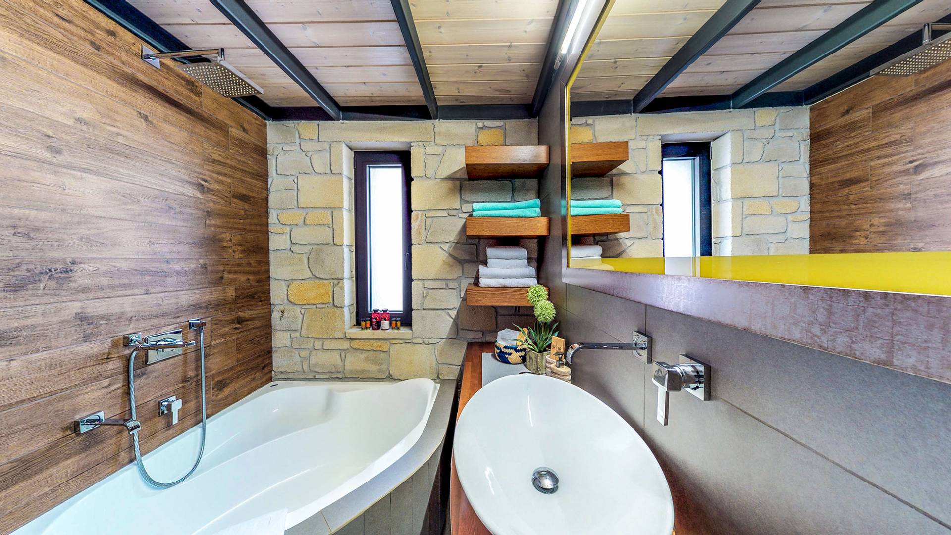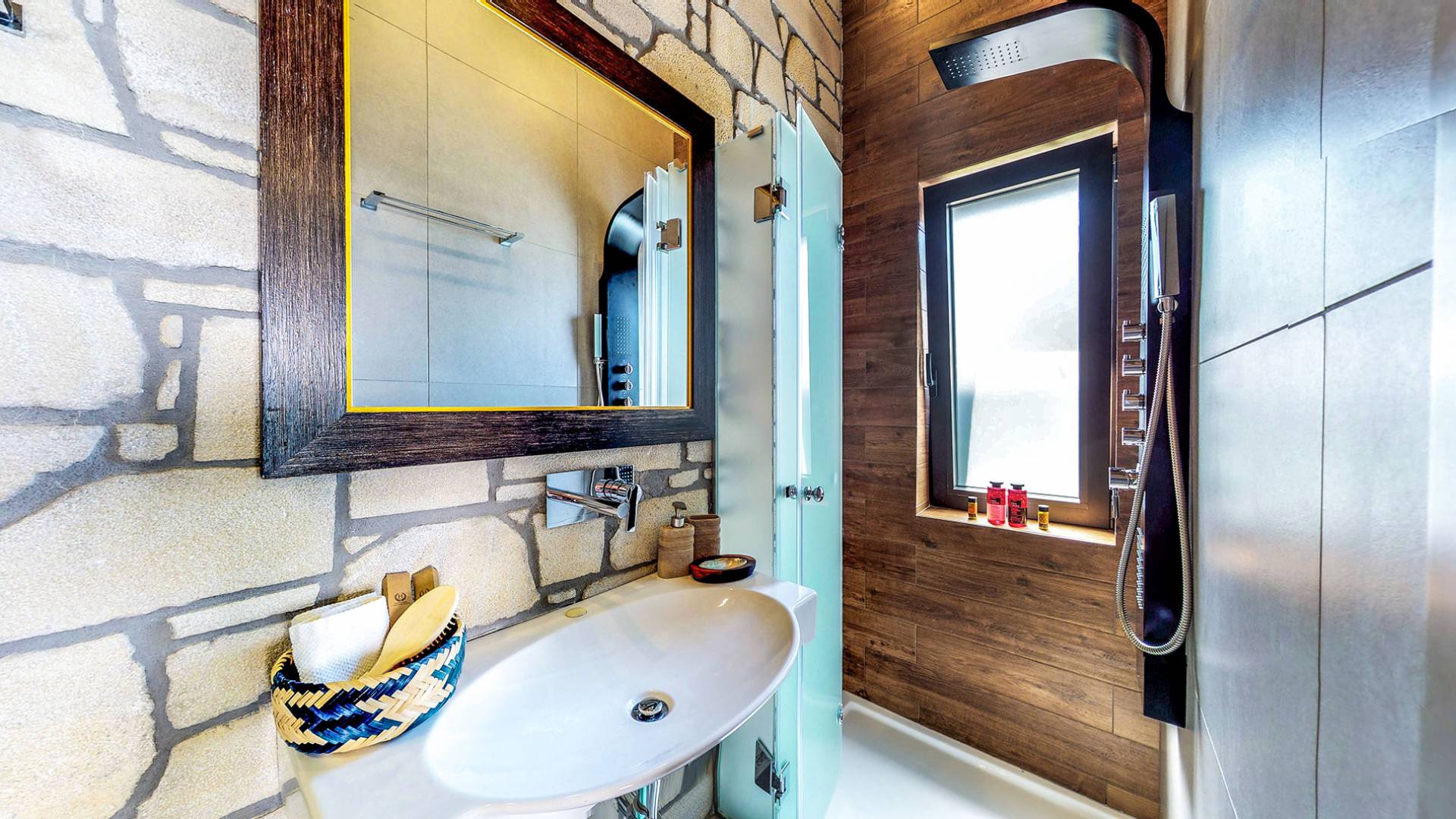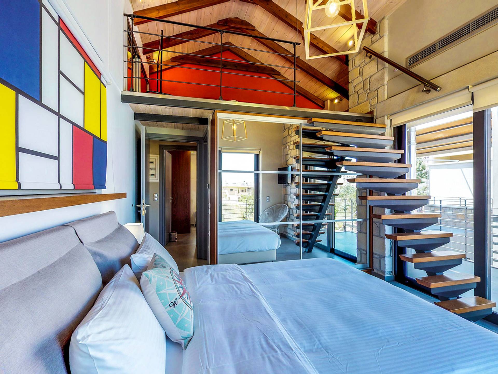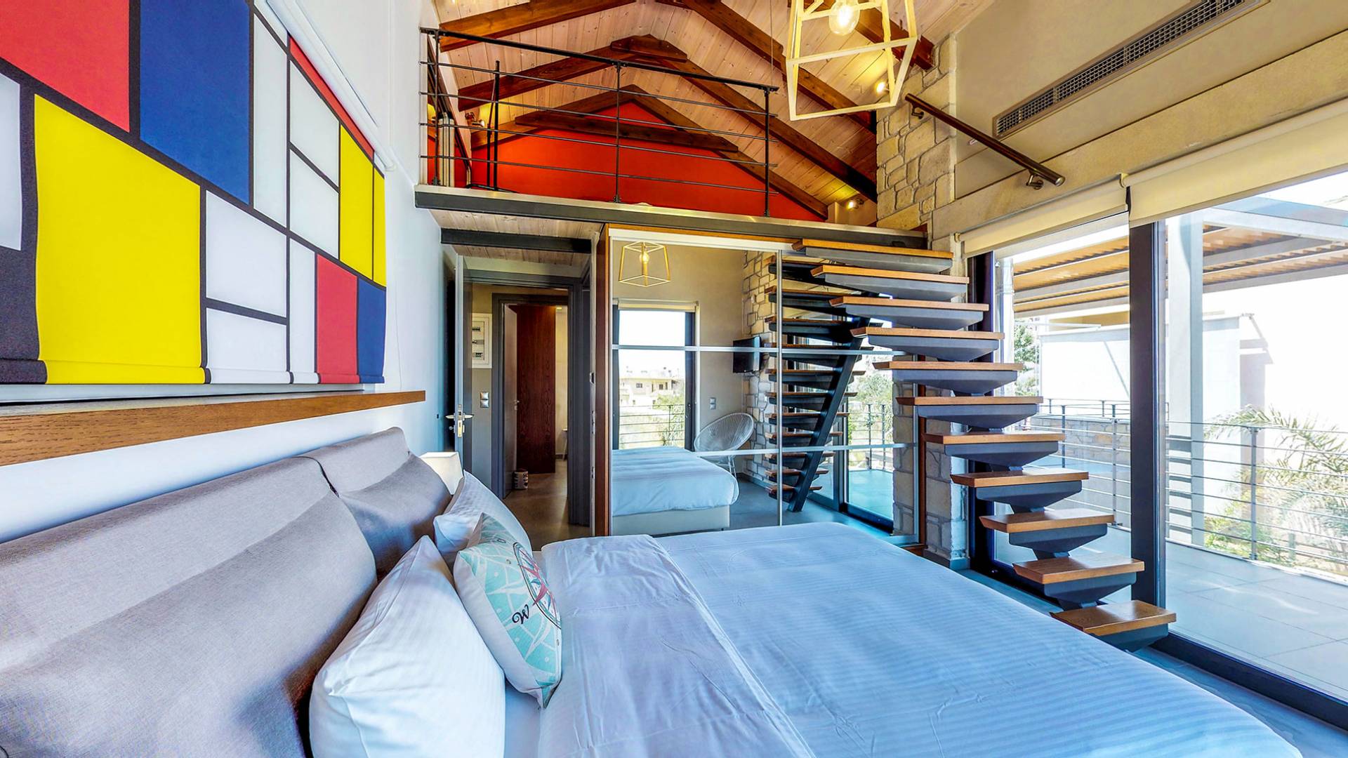 Una camera matrimoniale con un grande letto matrimoniale e una mansarda con un divano letto che si trasforma in un grande letto matrimoniale (la scala per la mansarda richiede cautela, non adatta a bambini sotto i 15 anni). La camera matrimoniale ha anche un bagno privato con vasca idromassaggio. Una camera con 2 letti singoli che possono essere uniti a un ampio letto matrimoniale e un bagno privato con cabina doccia. Una terrazza al primo piano ben arredata, con vista sulla piscina e sull'eccellente vista della zona circostante, a cui si accede da entrambe le camere.