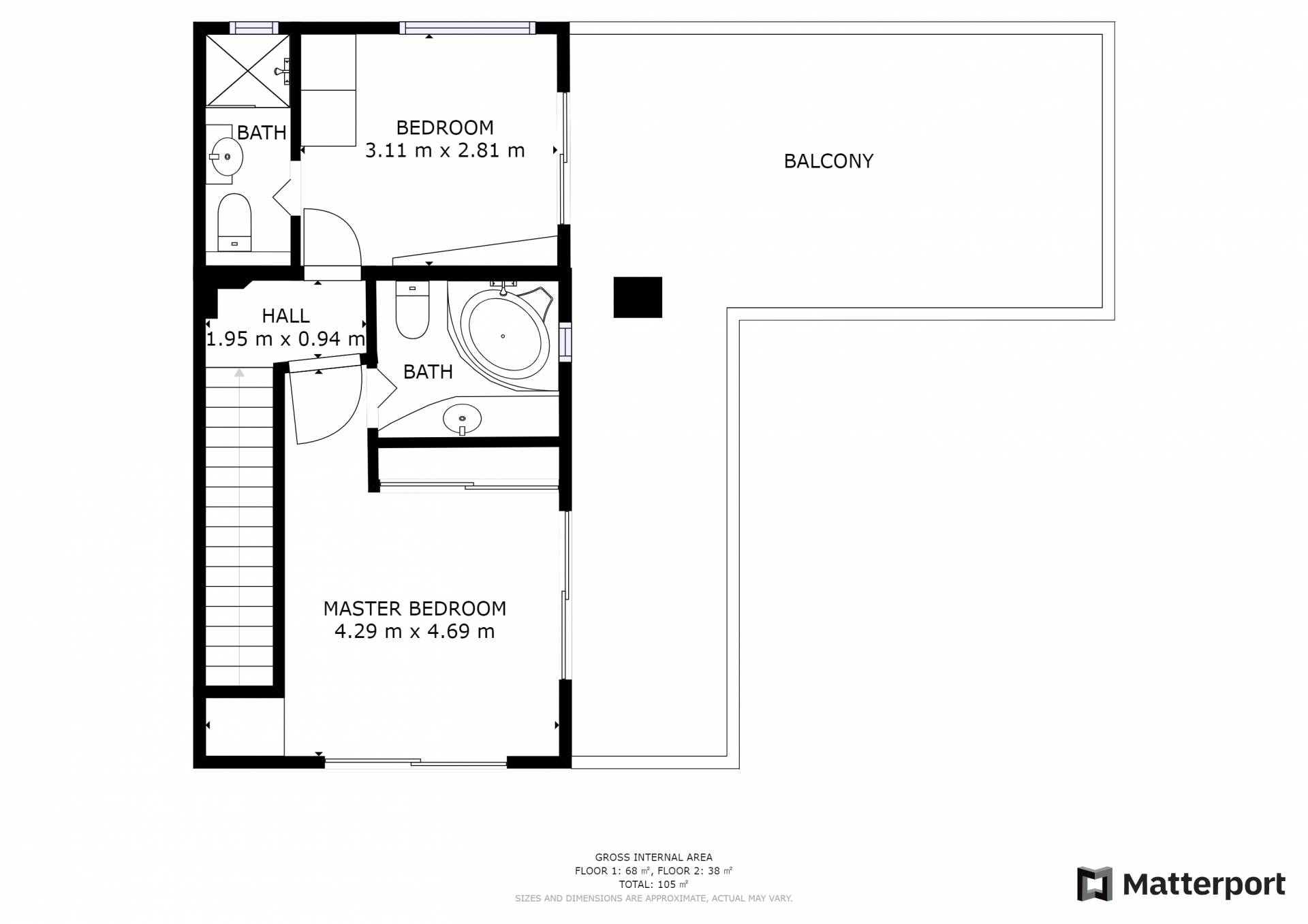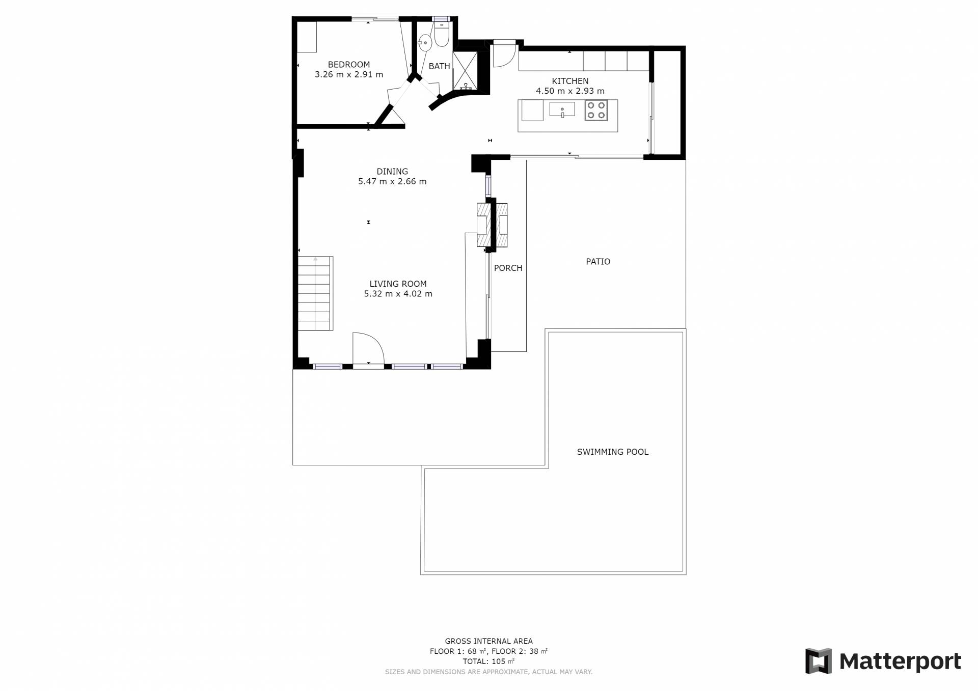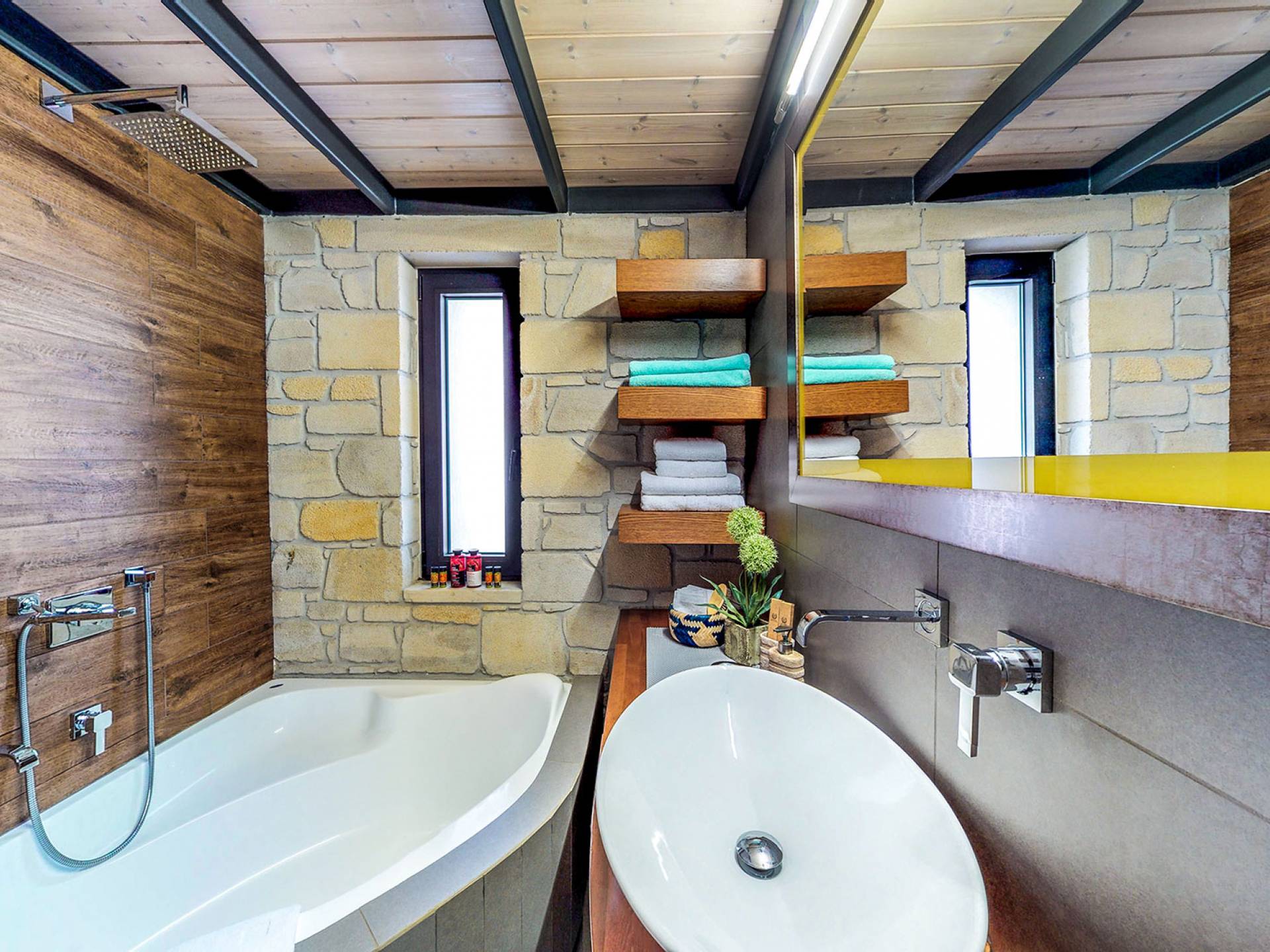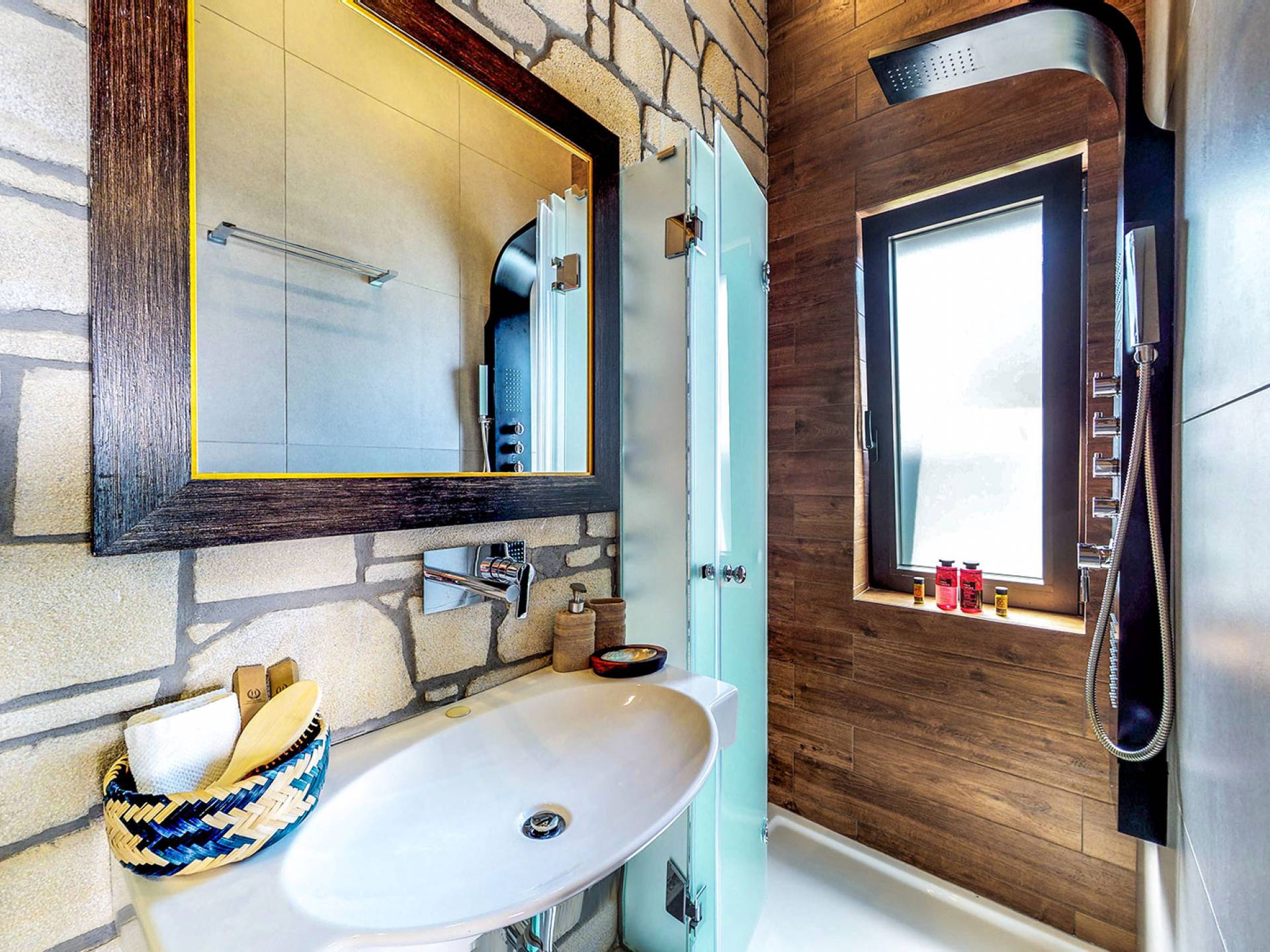 Una camera matrimoniale con un grande letto matrimoniale e una mansarda con un divano letto che si trasforma in un grande letto matrimoniale (la scala per la mansarda richiede cautela, non adatta a bambini sotto i 15 anni). La camera matrimoniale ha anche un bagno privato con vasca idromassaggio. Una camera con 2 letti singoli che possono essere uniti a un ampio letto matrimoniale e un bagno privato con cabina doccia. Una terrazza al primo piano ben arredata, con vista sulla piscina e sull'eccellente vista della zona circostante, a cui si accede da entrambe le camere.