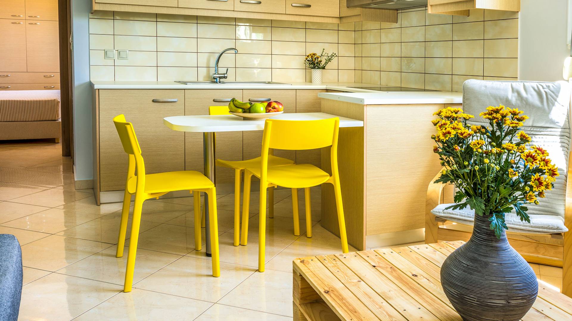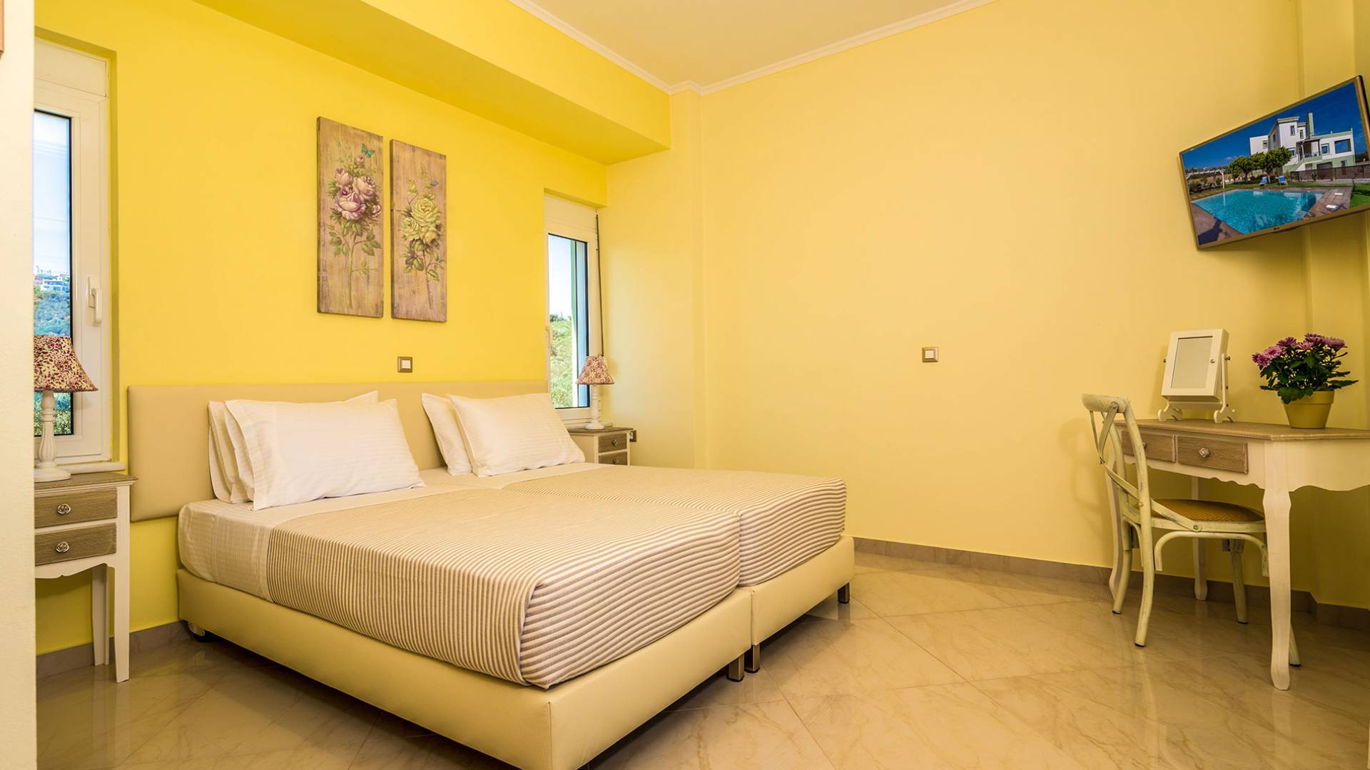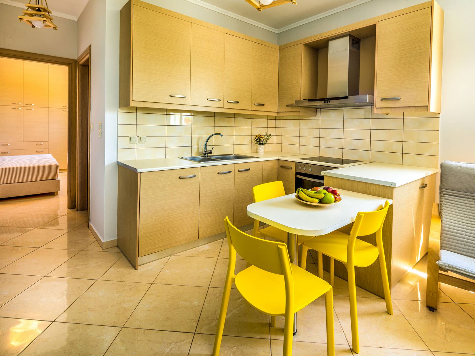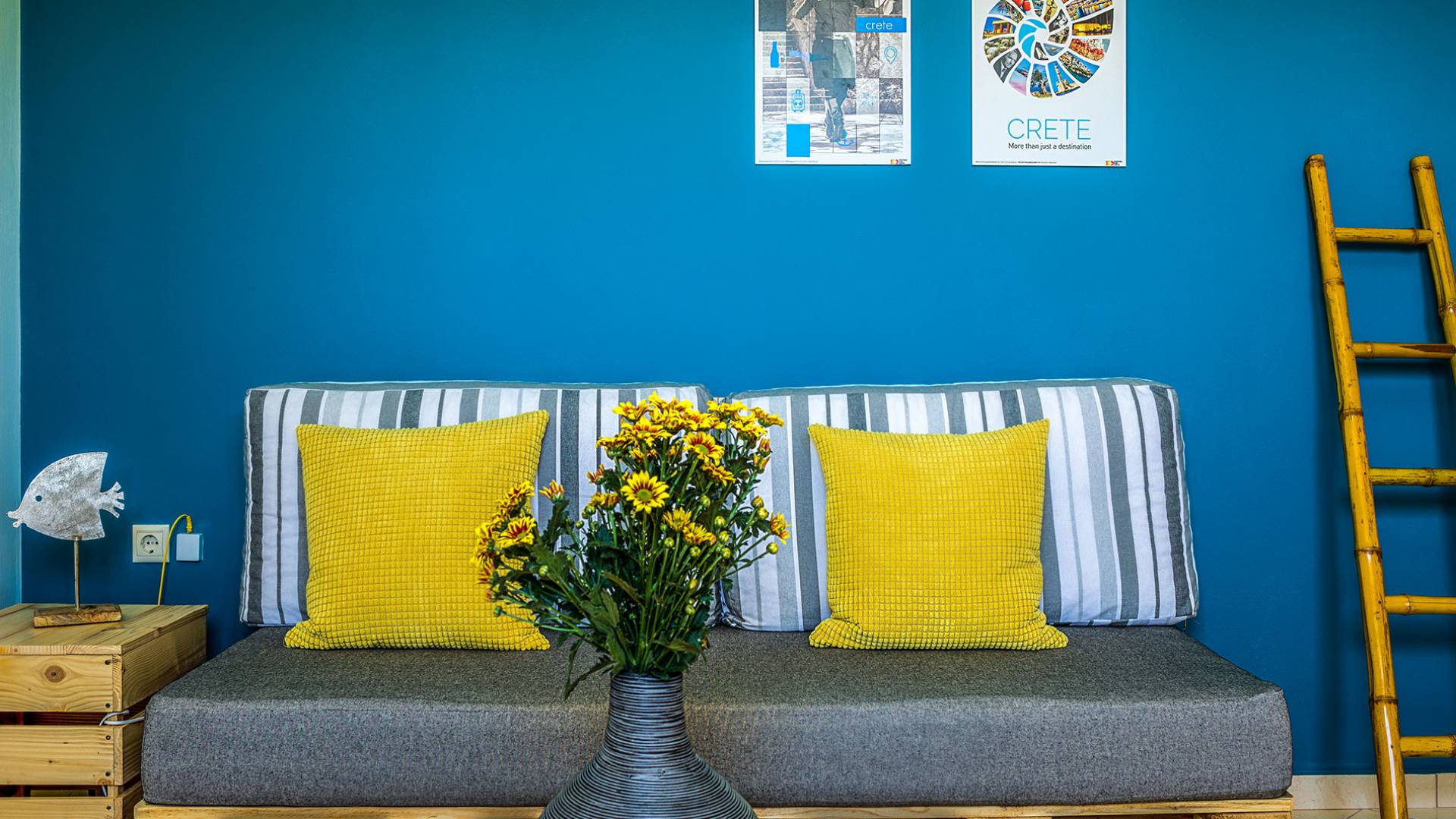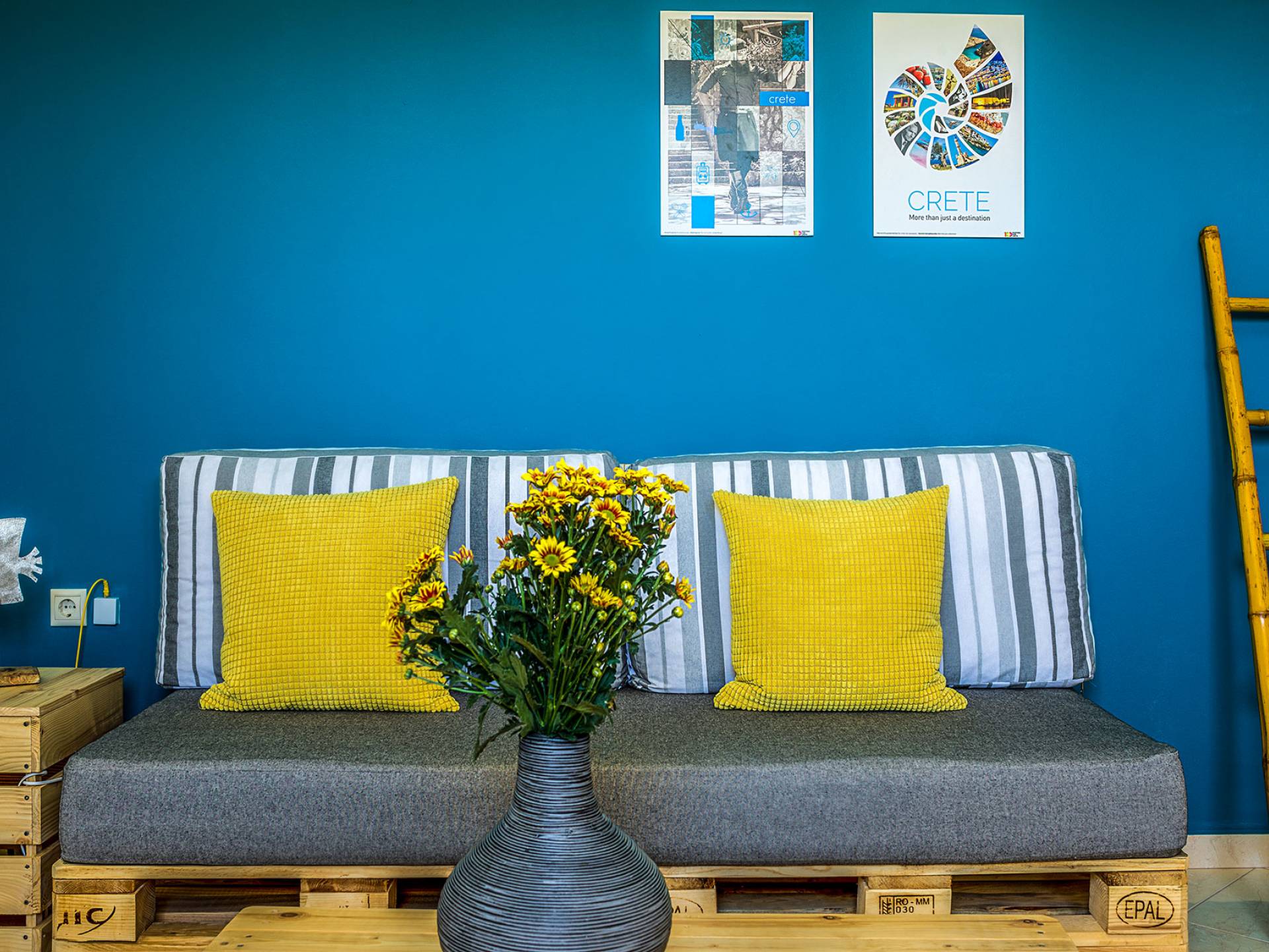 L'ingresso della villa Dimokratia è identificato con un cartello. Salendo la scala si raggiunge l'ampio terrazzo. Entrando in Dimokratia Villa Chania si trova uno spazio confortevole con 2 soggiorni, 2 sale da pranzo e una cucina. Sempre al piano terra troverete una camera da letto e un bagno. Alla fine del corridoio, una scala conduce al 1° piano, che ospita le altre 2 camere da letto. Tra questi, un lussuoso bagno e un ampio ingresso, che garantiscono l'indipendenza delle 2 camere.