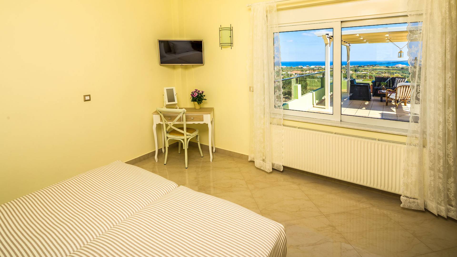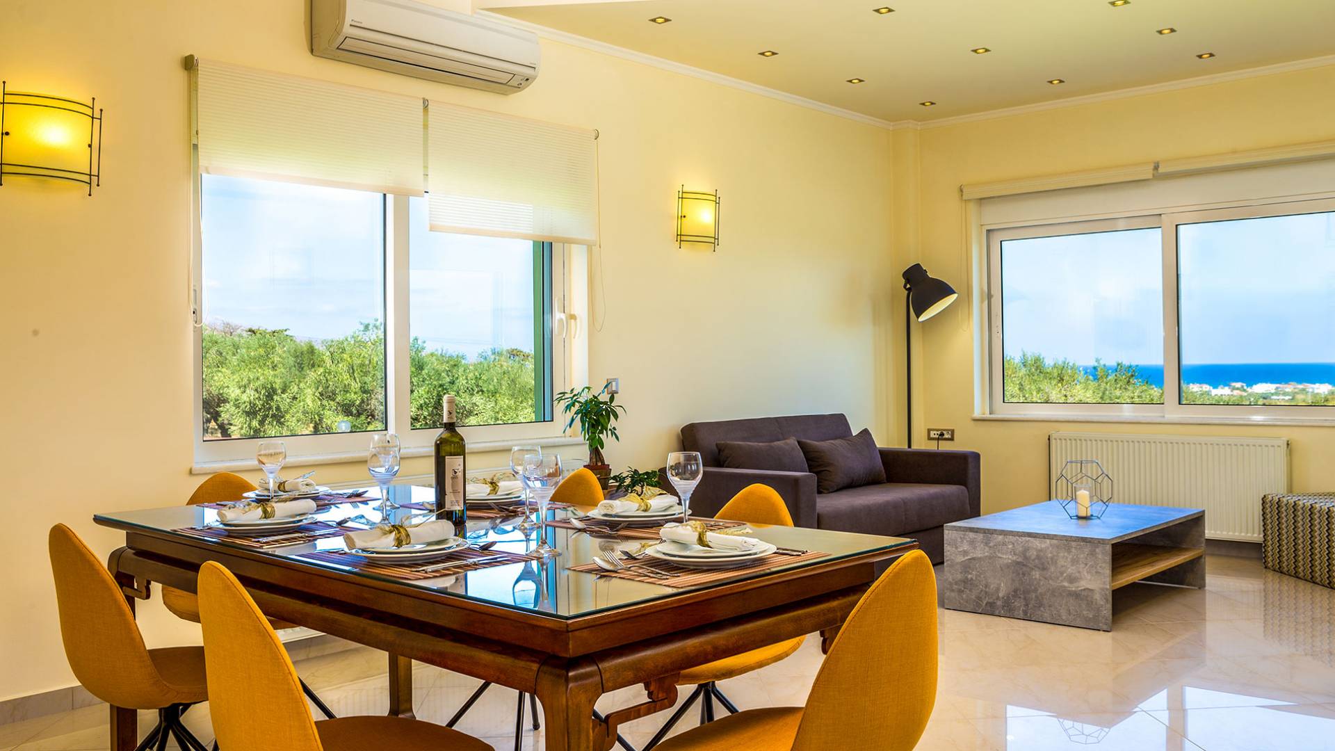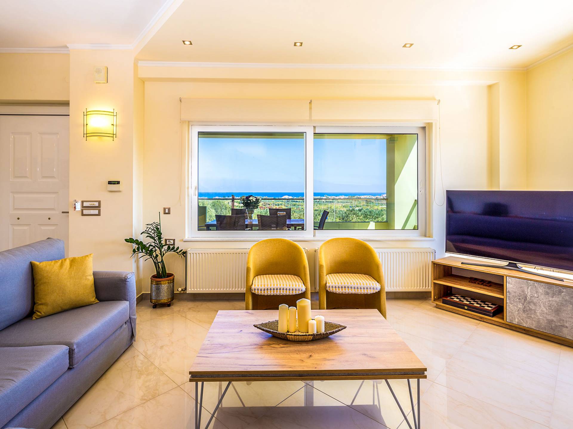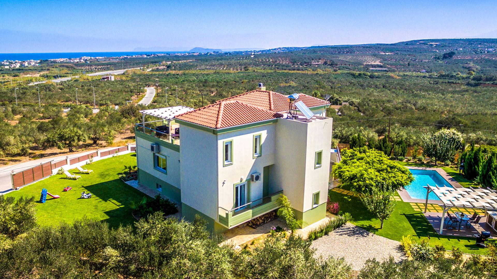 Sul pendio e ai piedi di una collina e fino al mare si trova il pittoresco villaggio di Kolymbari. Nella parte nord-ovest di Creta, a Chania, nella provincia di Kissamos a Platanias. Situato a 1 km dal centro del paese e dalla lunga spiaggia, dove batte il cuore della Dimokratia Villa Chania. Domina in collina, assediata da uliveti. Si erge maestoso e senza ostacoli - una vista fantastica, a sua disposizione che gli permette di contemplare il mare di Creta. Inondate di luce solare dalla mattina alla sera, sia all'esterno che negli spazi interni, poiché le numerose ampie finestre assicurano la sensazione di stare all'aria aperta, anche godendosi l'interno.