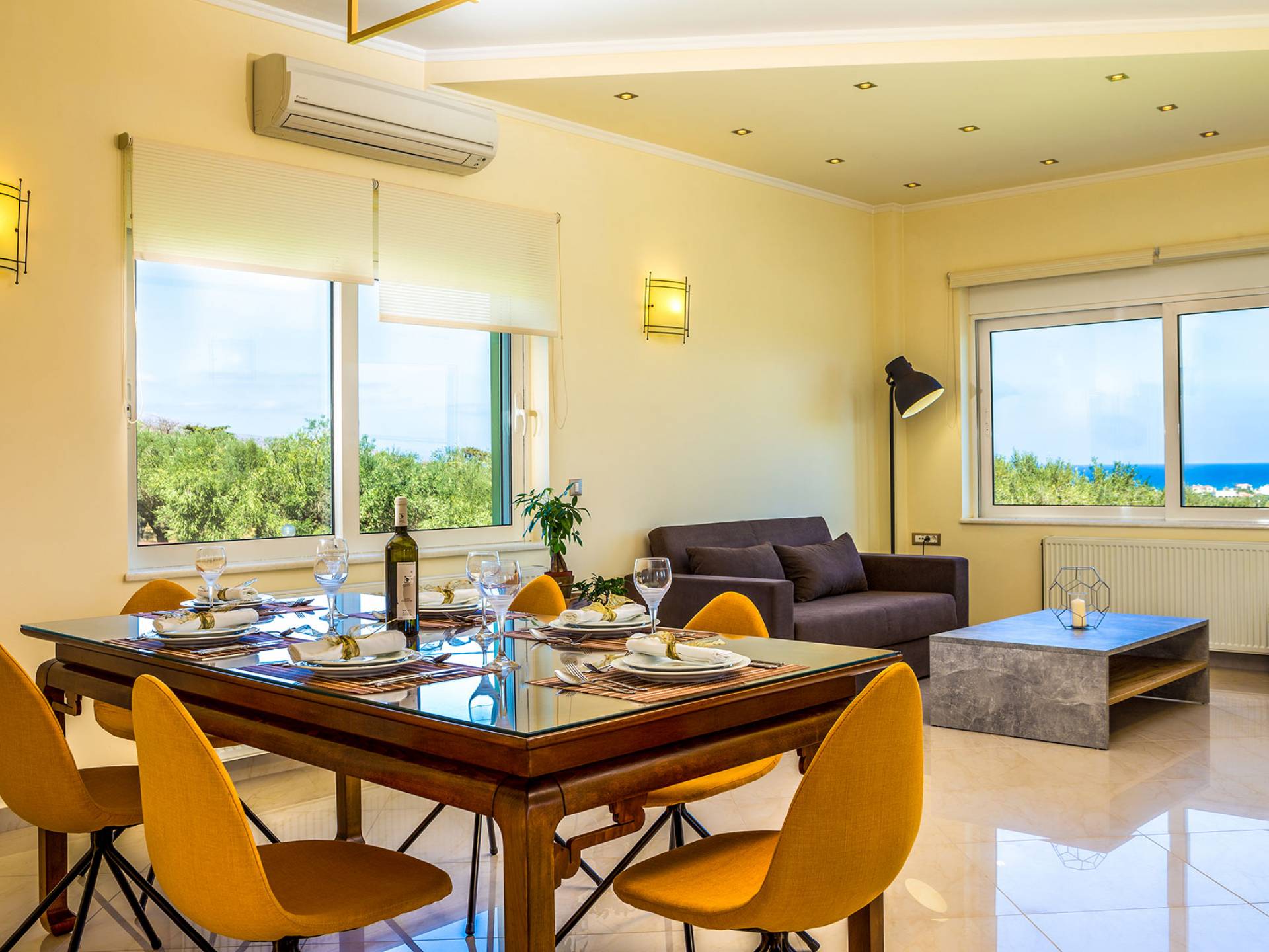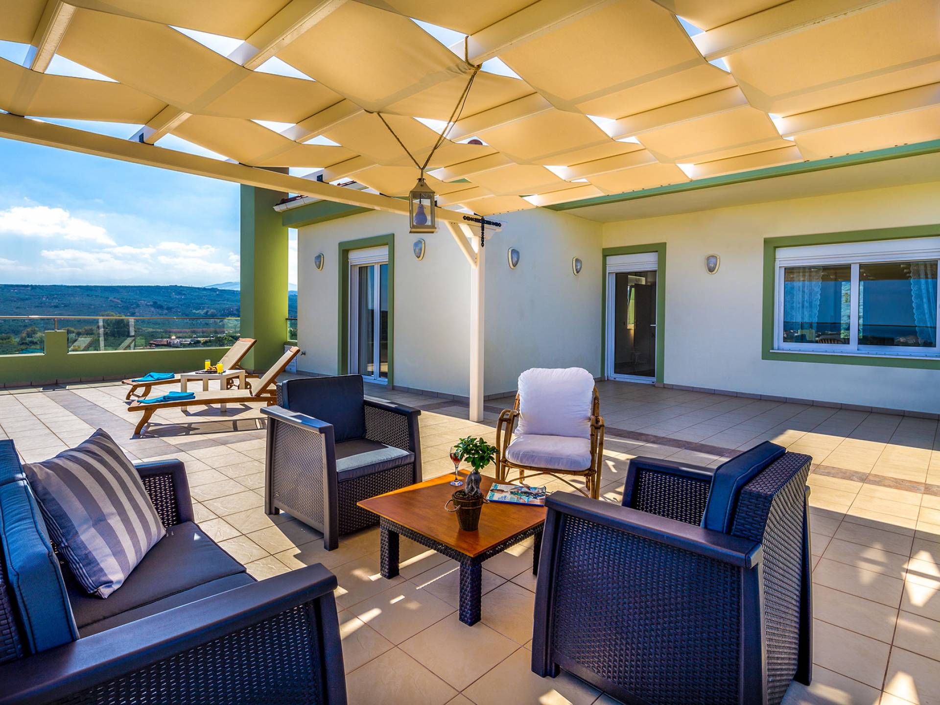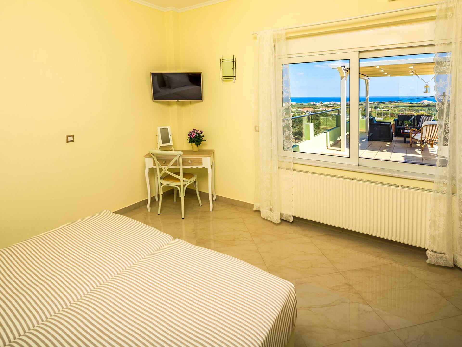 Sul pendio e ai piedi di una collina e fino al mare si trova il pittoresco villaggio di Kolymbari. Nella parte nord-ovest di Creta, a Chania, nella provincia di Kissamos a Platanias. Situato a 1 km dal centro del paese e dalla lunga spiaggia, dove batte il cuore della Dimokratia Villa Chania. Domina in collina, assediata da uliveti. Si erge maestoso e senza ostacoli - una vista fantastica, a sua disposizione che gli permette di contemplare il mare di Creta. Inondate di luce solare dalla mattina alla sera, sia all'esterno che negli spazi interni, poiché le numerose ampie finestre assicurano la sensazione di stare all'aria aperta, anche godendosi l'interno.