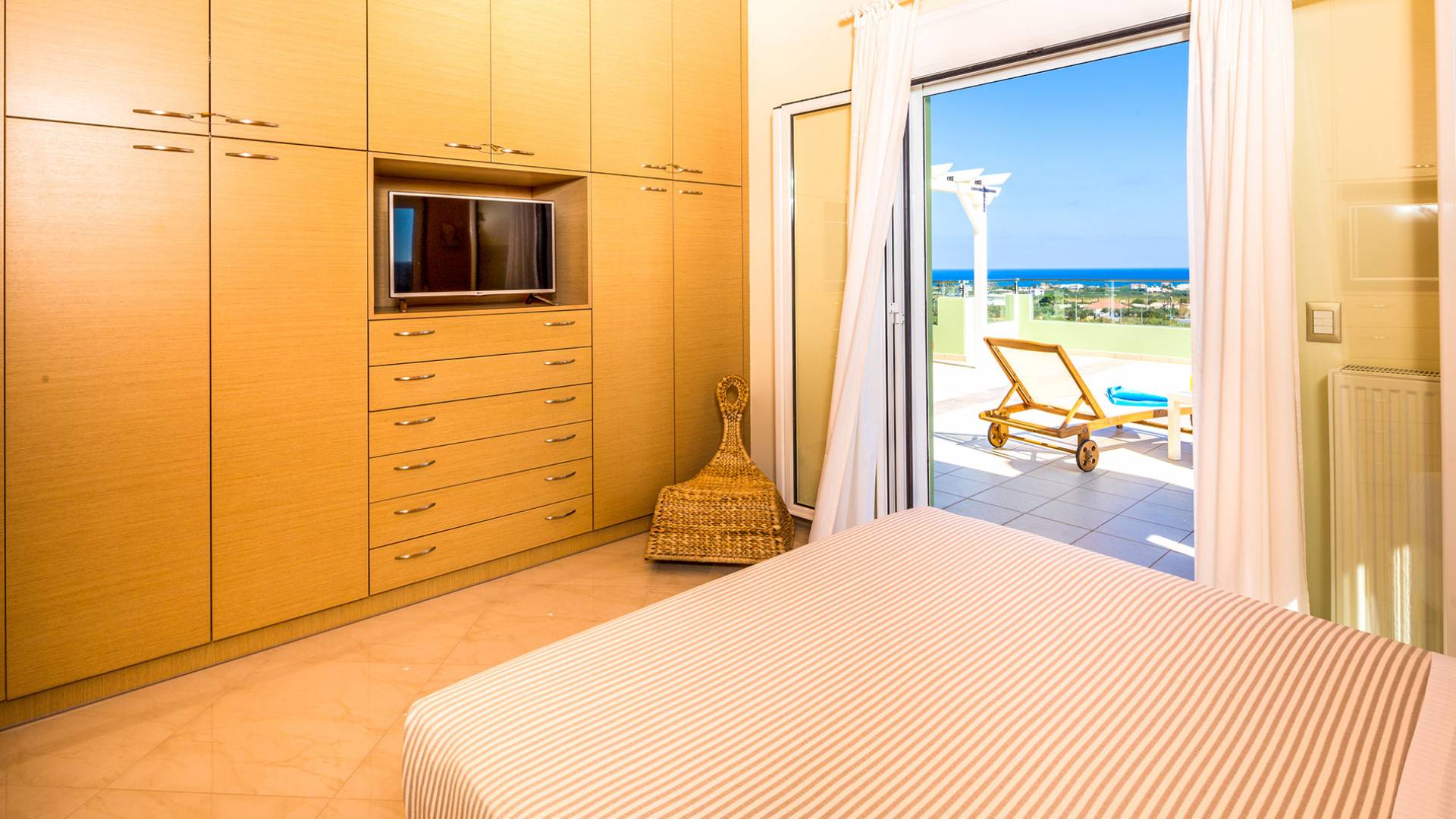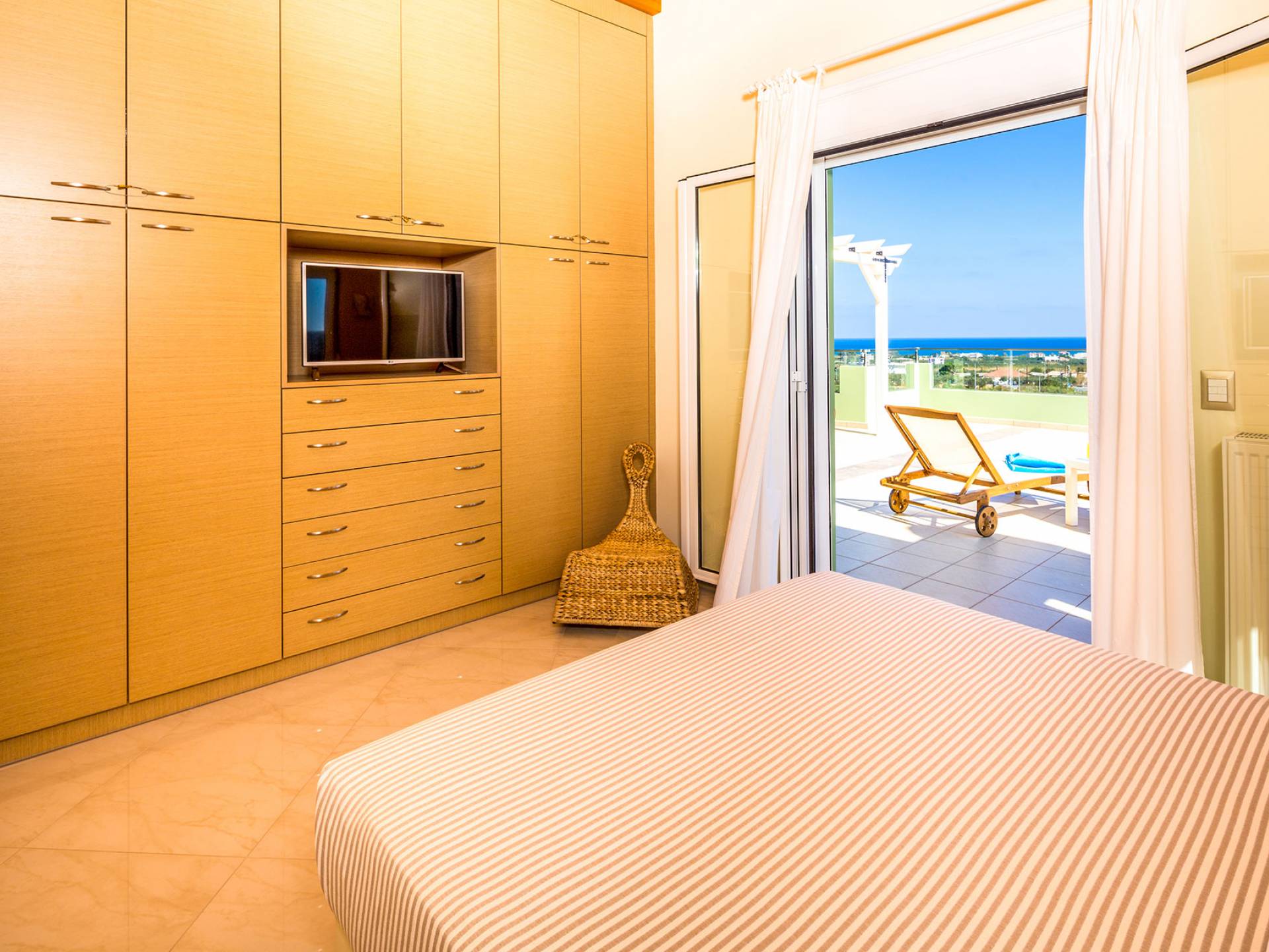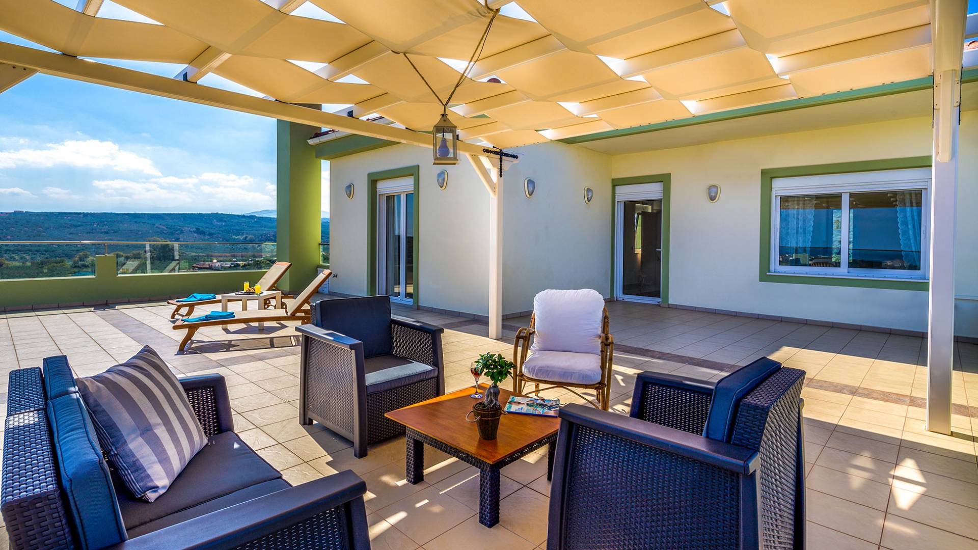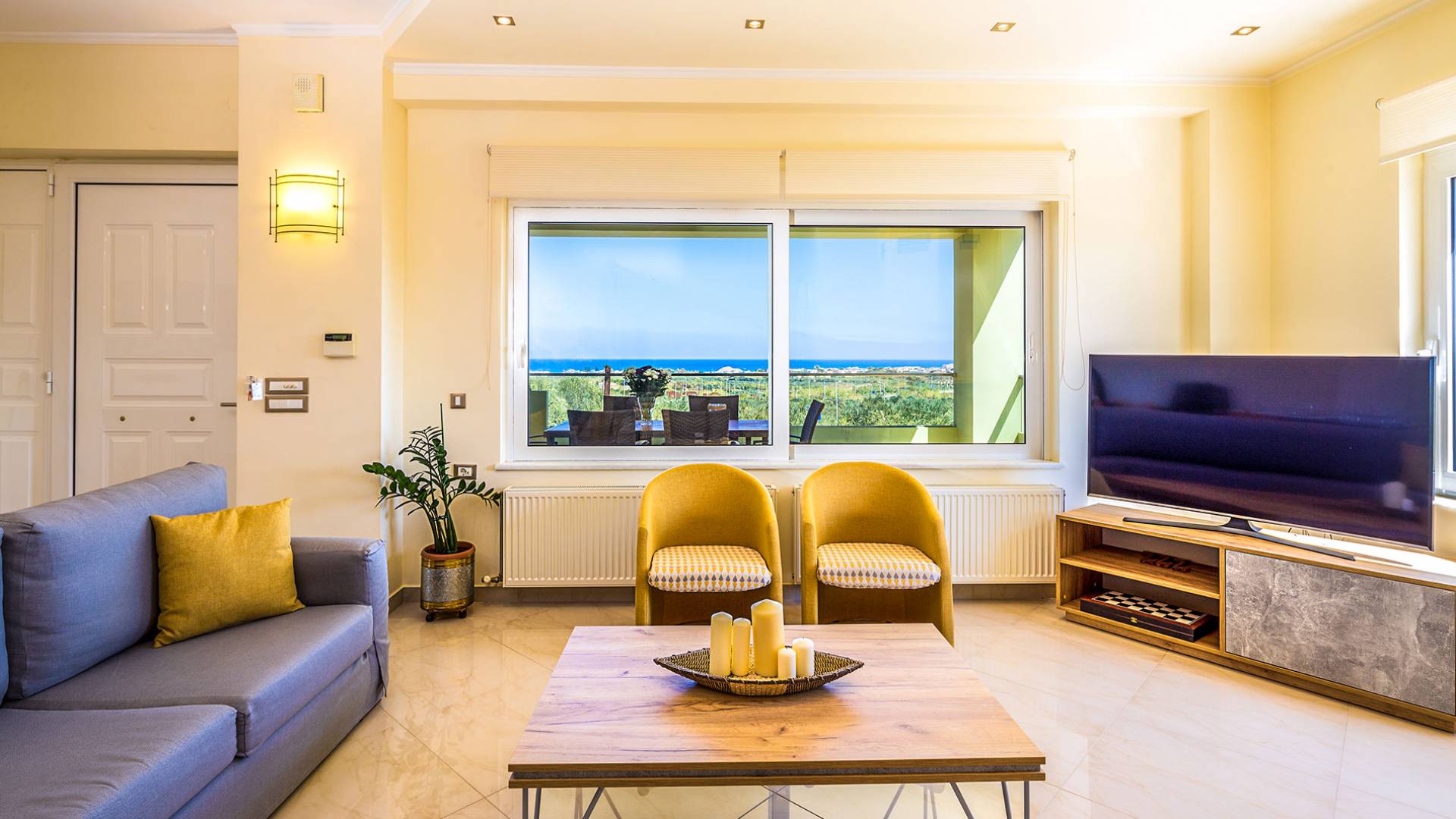 Sul pendio e ai piedi di una collina e fino al mare si trova il pittoresco villaggio di Kolymbari. Nella parte nord-ovest di Creta, a Chania, nella provincia di Kissamos a Platanias. Situato a 1 km dal centro del paese e dalla lunga spiaggia, dove batte il cuore della Dimokratia Villa Chania. Domina in collina, assediata da uliveti. Si erge maestoso e senza ostacoli - una vista fantastica, a sua disposizione che gli permette di contemplare il mare di Creta. Inondate di luce solare dalla mattina alla sera, sia all'esterno che negli spazi interni, poiché le numerose ampie finestre assicurano la sensazione di stare all'aria aperta, anche godendosi l'interno.
