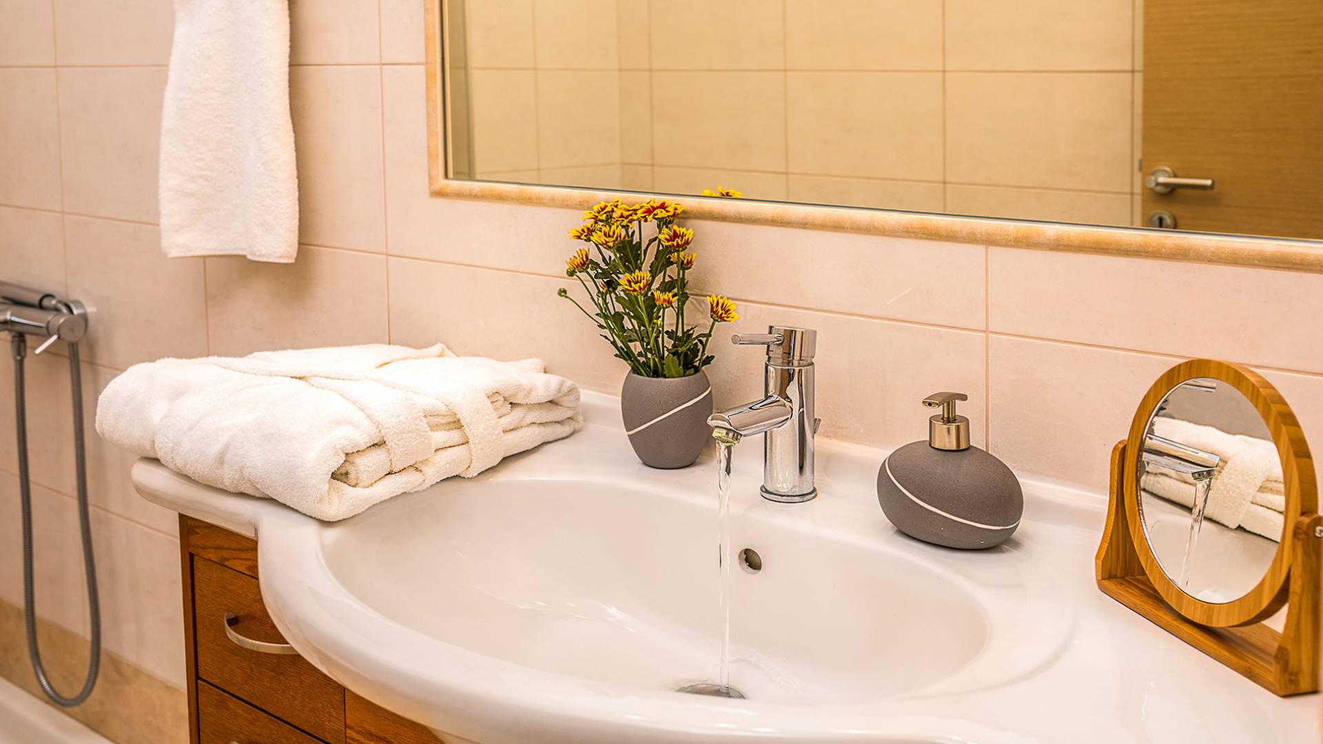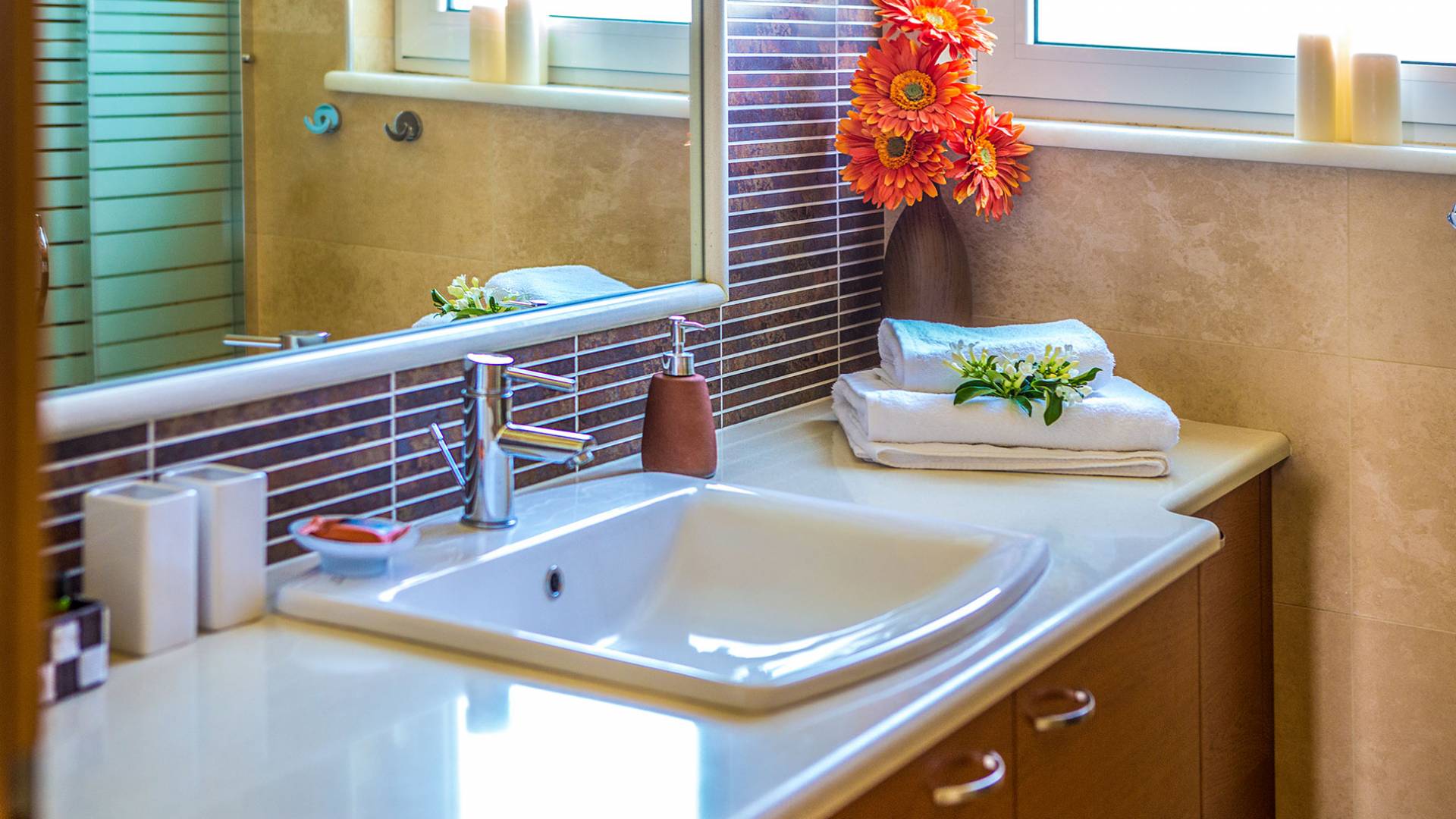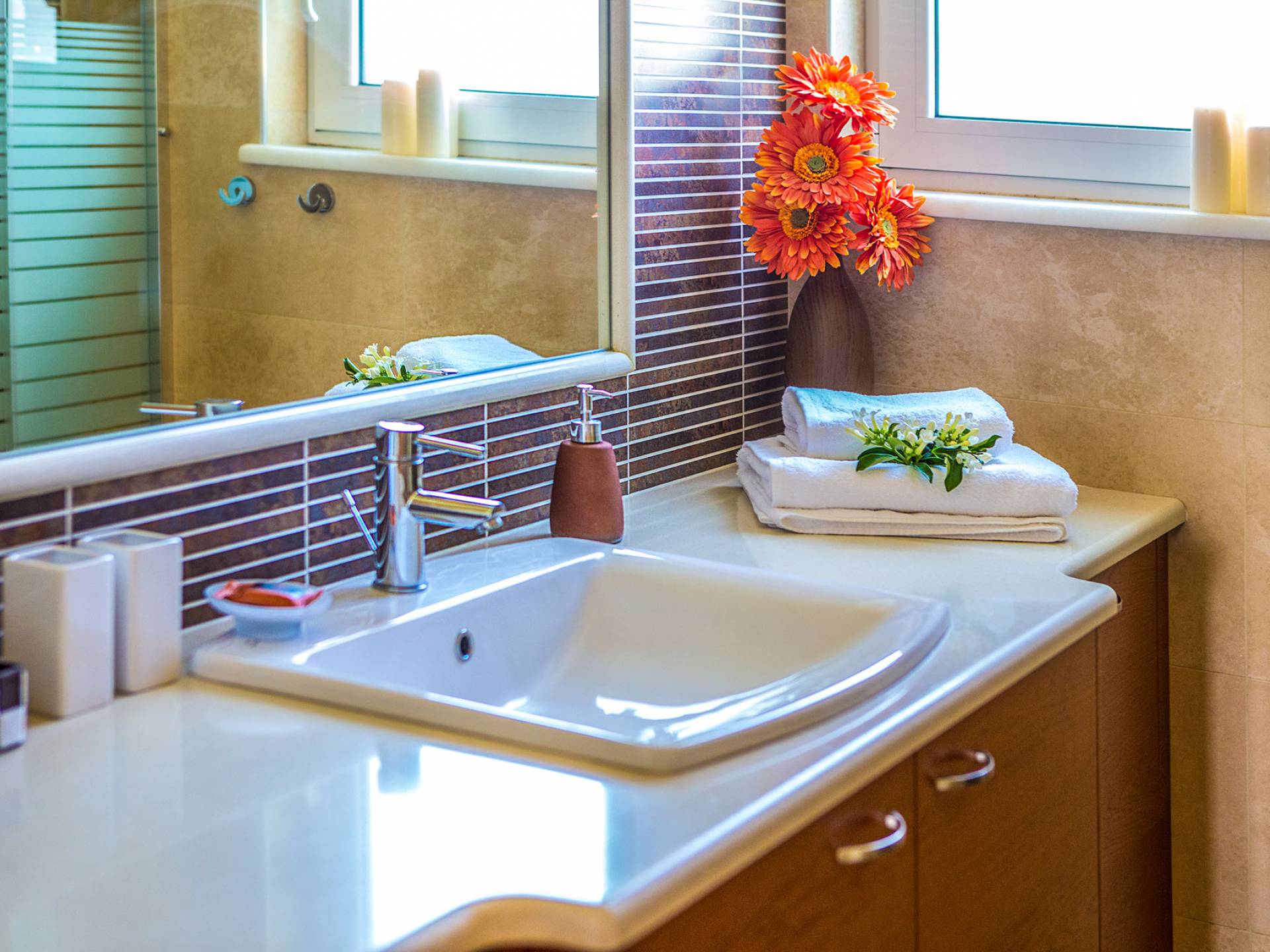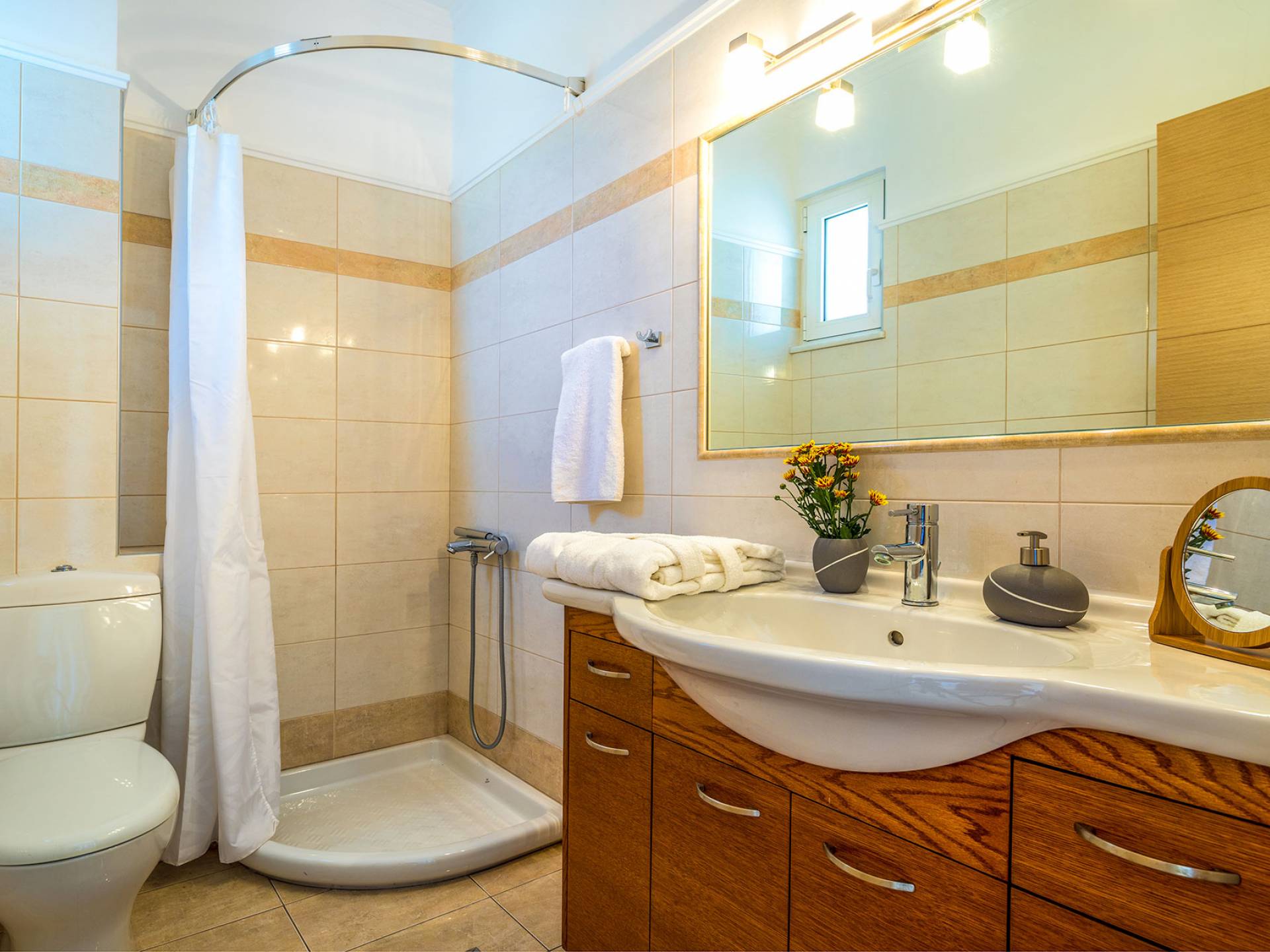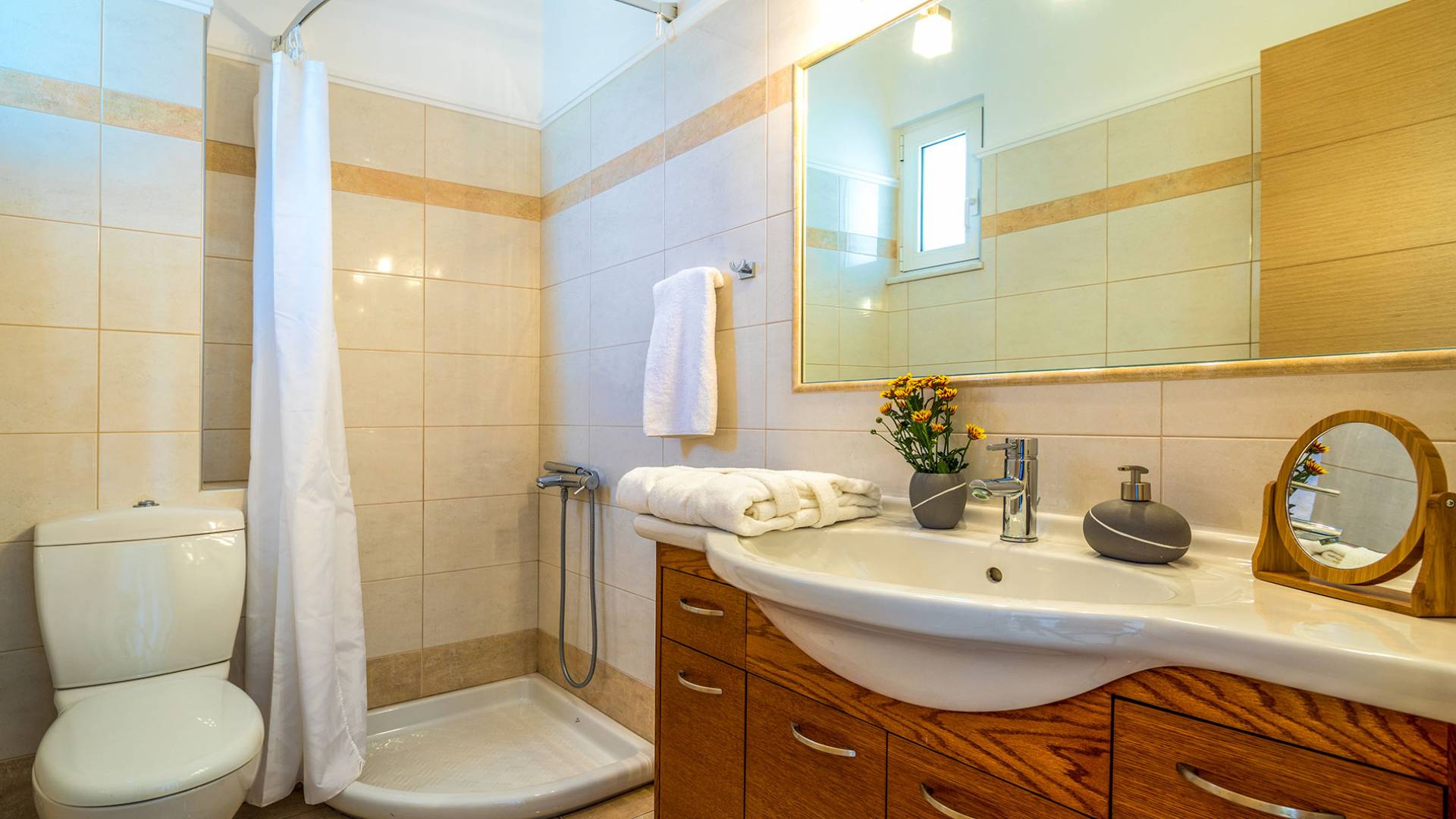 Bagno da terra: è dotato di una panca abbastanza comoda con lavabo, armadietti, cassetti e un grande specchio. La fruibilità della vasca completa la doccia con un'attenta cabina che la protegge. Mentre il buon gusto enfatizza la cupola circolare con l'illuminazione nascosta, la stessa del bagno al 1° piano. Entrambi i bagni sono dotati di accappatoi, asciugamani, pantofole e articoli per l'igiene personale. C'è un altro bagno con wc e doccia.