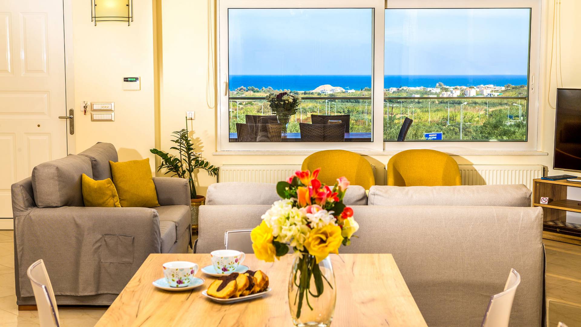 Soggiorno II: le stesse splendide viste dell'altro soggiorno, dove lo spazio qui può essere convertito in una camera da letto ausiliaria poiché il grande divano può facilmente trasformarsi in un letto matrimoniale.