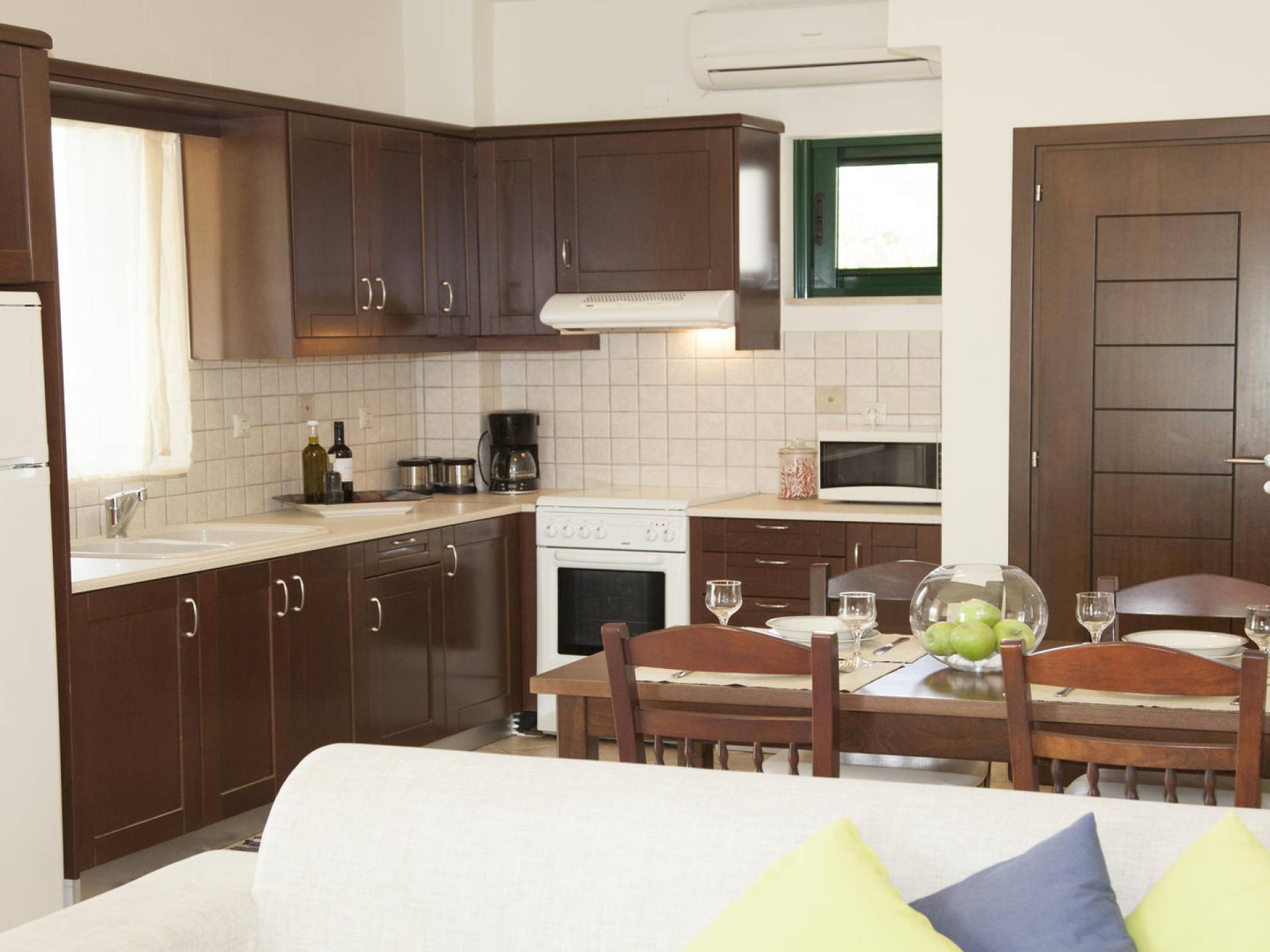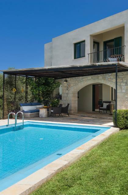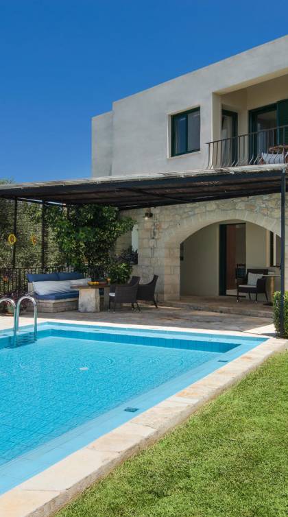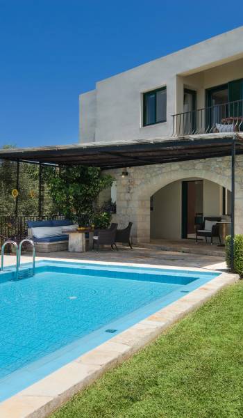 Ogni Villa Erini dispone di un ampio giardino con piscina privata. Ci sono anche una zona pranzo all'aperto e lettini. Il rilievo del terreno e la forma della trama hanno contribuito a una tale risoluzione architettonica che ogni ospite ha una vista eccezionale e senza ostacoli di Lefka Ori e nell'orizzonte più ampio di Apokoronas occidentale, nonché un giardino privato che migliora il quadro estetico, mentre allo stesso tempo garantisce l'assoluta quiete delle residenze. Erini Villas Chania è progettato per ospitare famiglie, coppie o un gruppo di amici, non più di 5 persone.