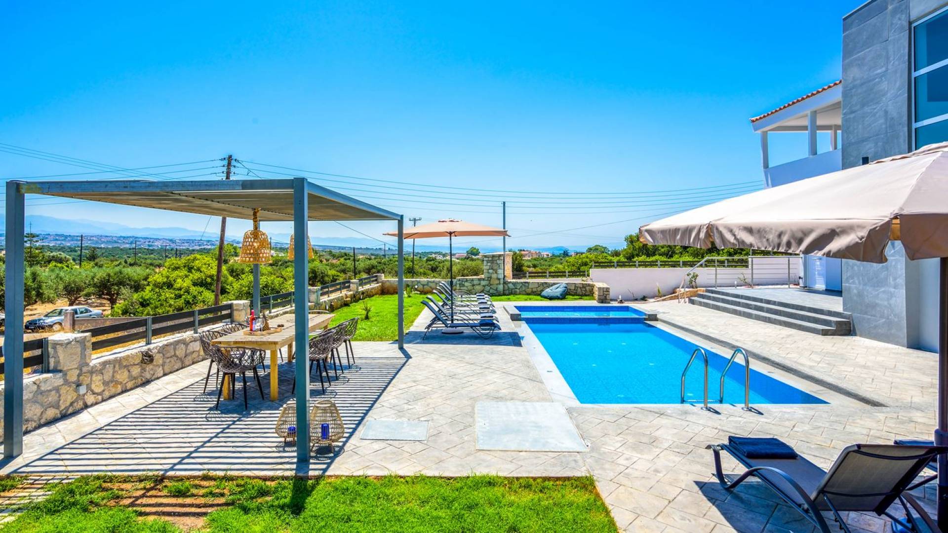 Mare Montis Villa Chania è una villa di lusso in affitto con 5 camere da letto e una piscina privata. Il Mare Montis Villa Chania si trova a 5 minuti di auto dal mare nel villaggio di Chorafakia, Chania Creta, Grecia. La villa è una casa a due piani di 165 m2. La casa può ospitare fino a 10 persone.