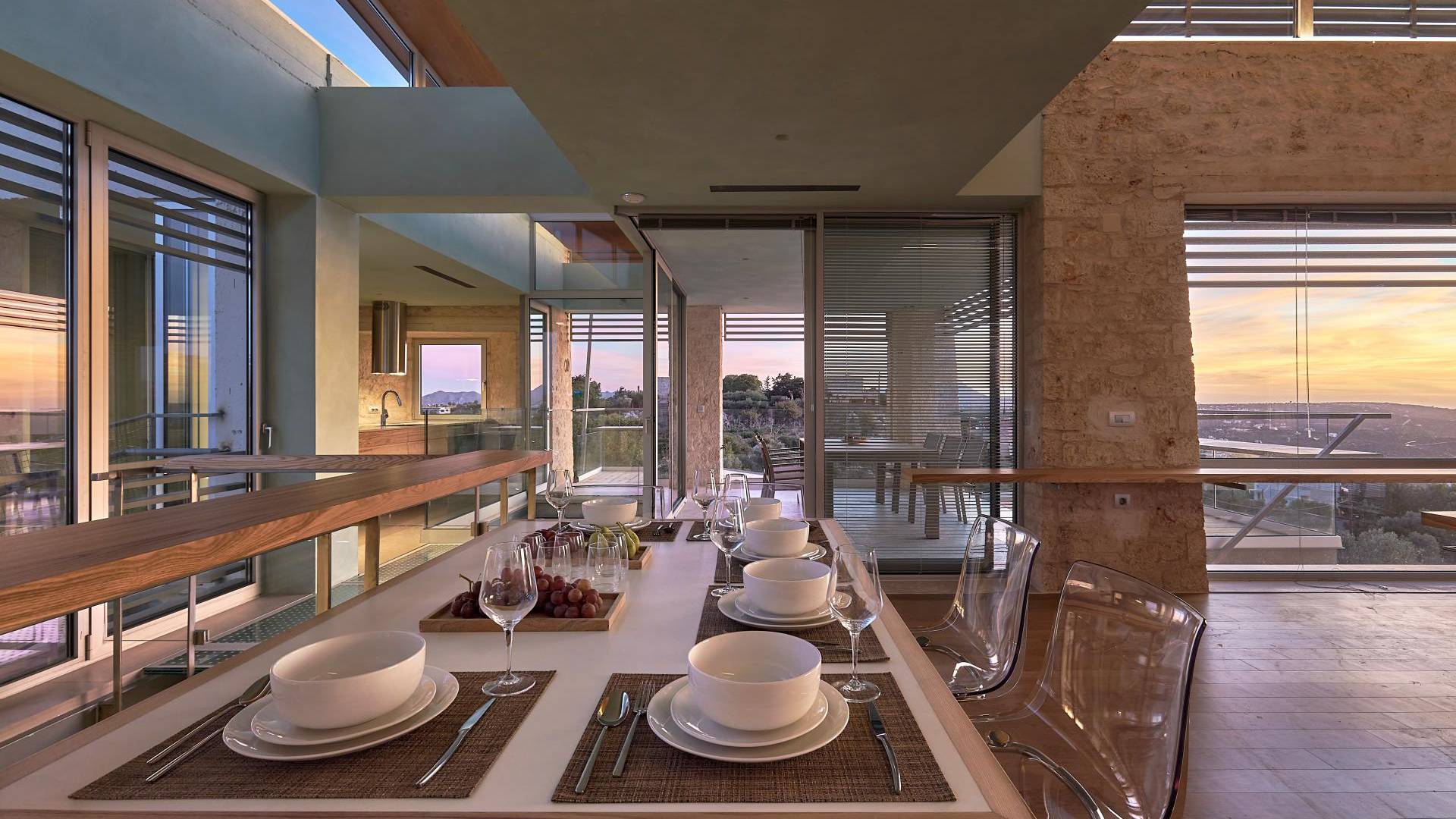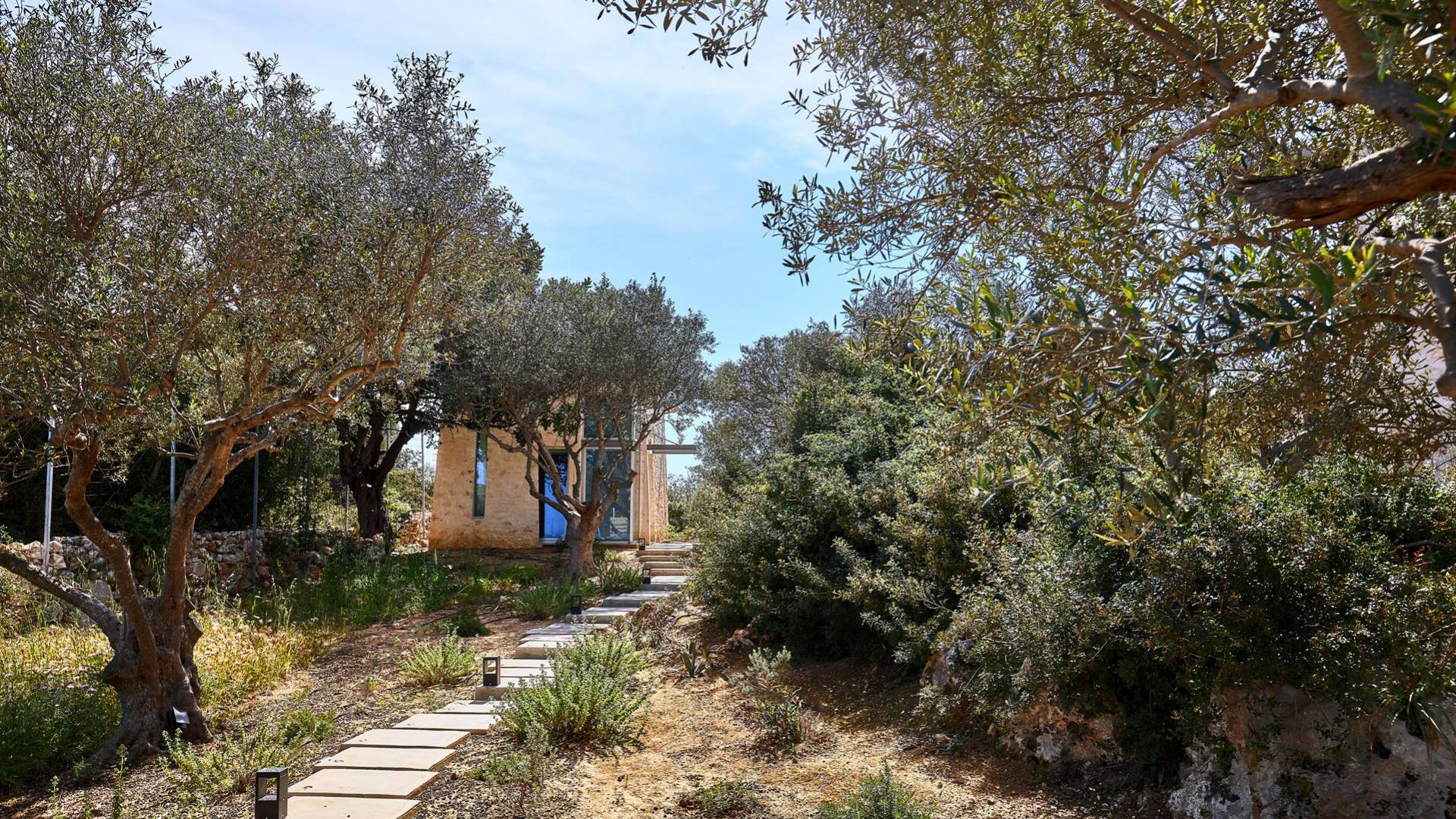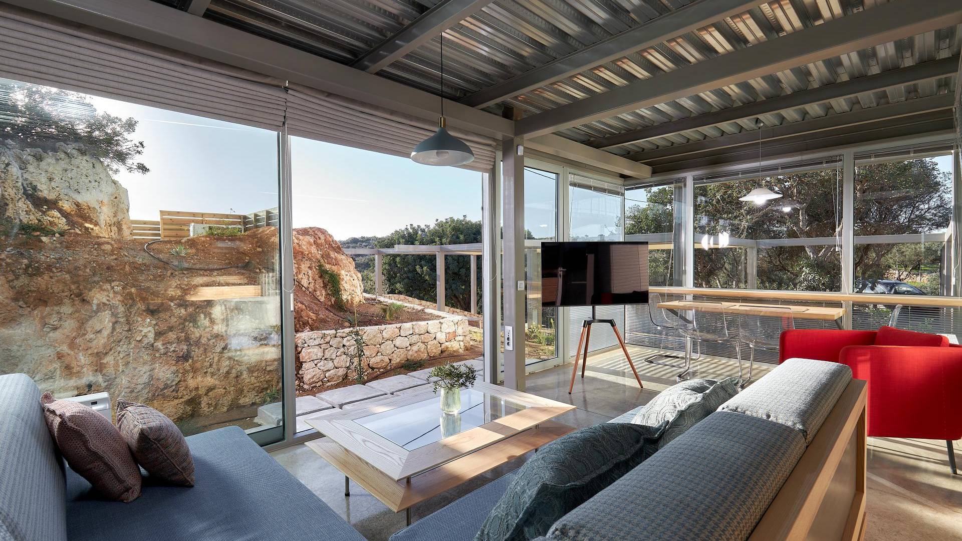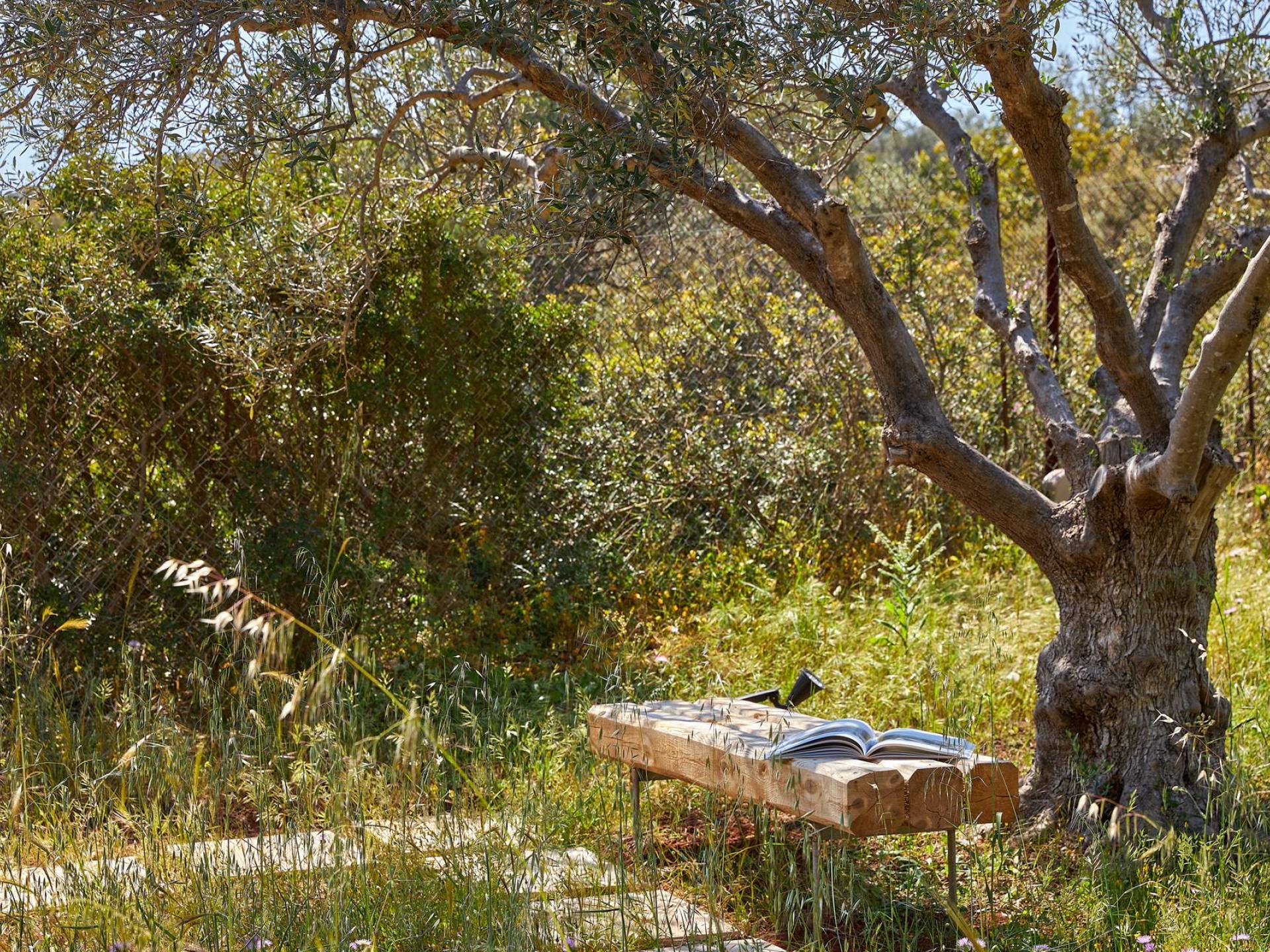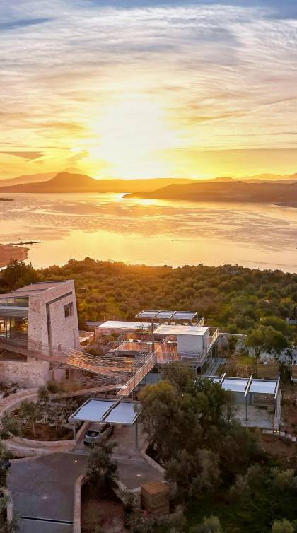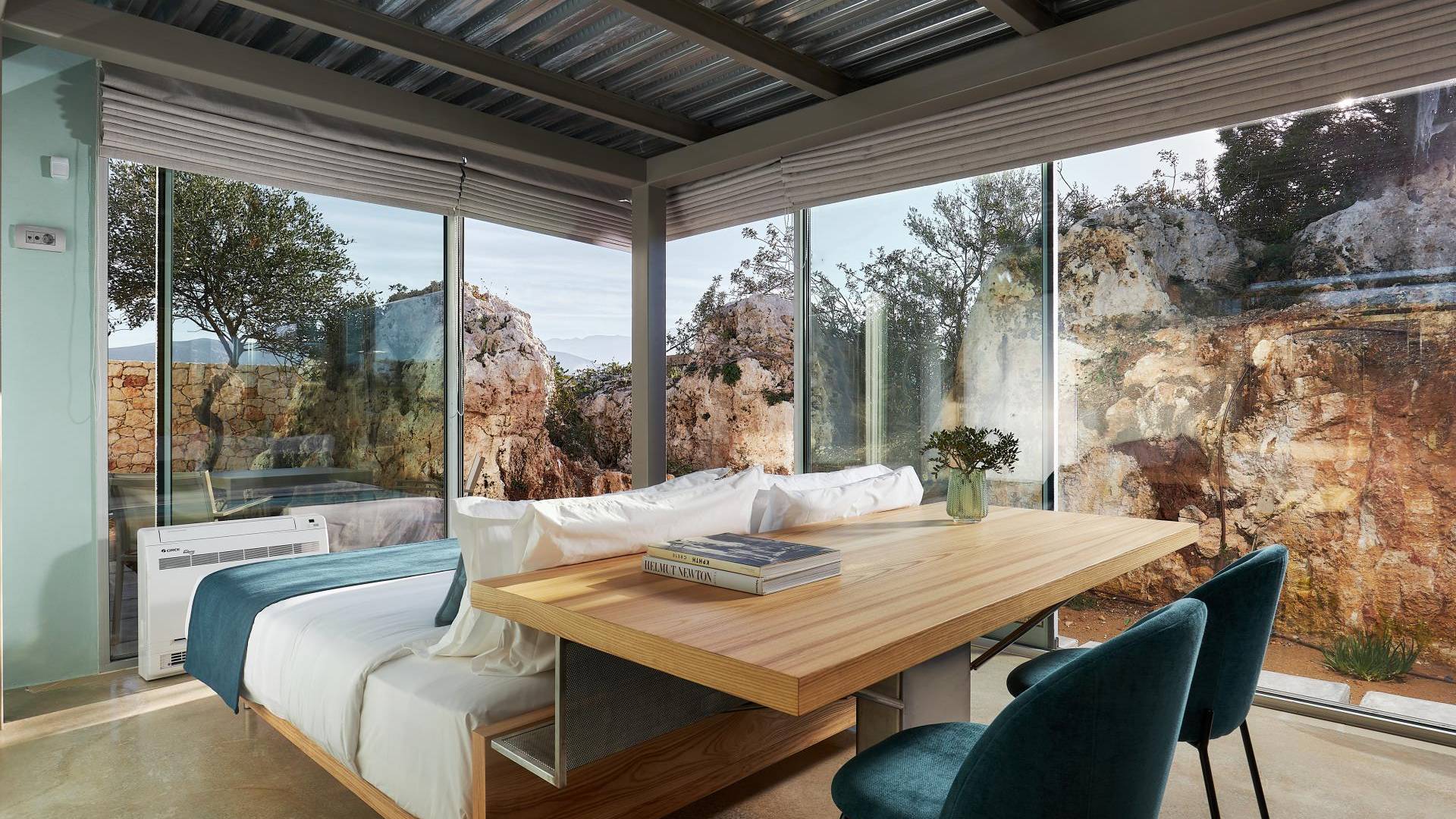 Benvenuti a Olives and Thyme Retreat, uno spazio unico totalmente privato a cui si accede solo da una strada, senza che nessuno si affaccia su di esso. Arroccato sul bordo di una scogliera che domina la baia di Souda e attraverso le maestose Montagne Bianche e sopra la strada da Souda ad Akrotiri, Olives and Thyme offre la sua posizione unica. Il suo mix di pietra, legno, vetro e metallo crea uno stile newyorkese-svedese seduto in un uliveto cretese. Il complesso è costituito dall'edificio principale a forma di torre ''The Keep'', con un cottage in pietra separato sulla sinistra.
