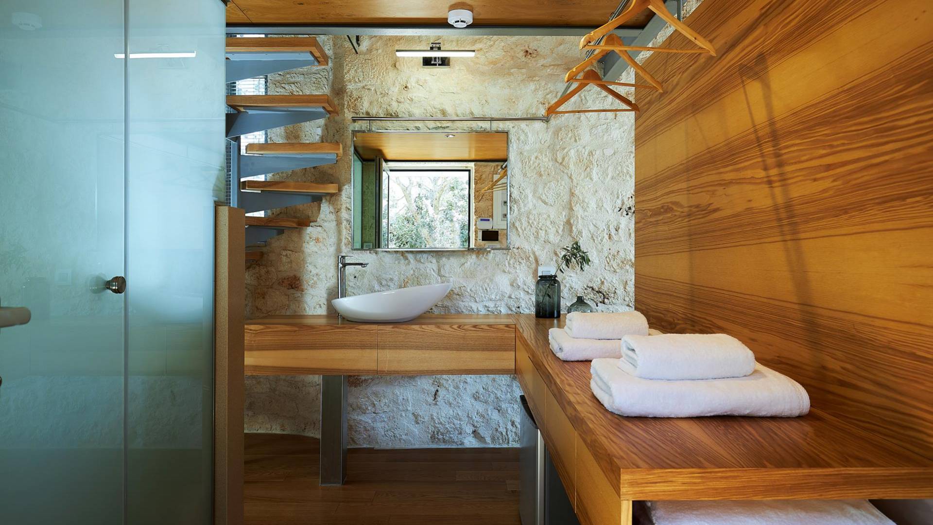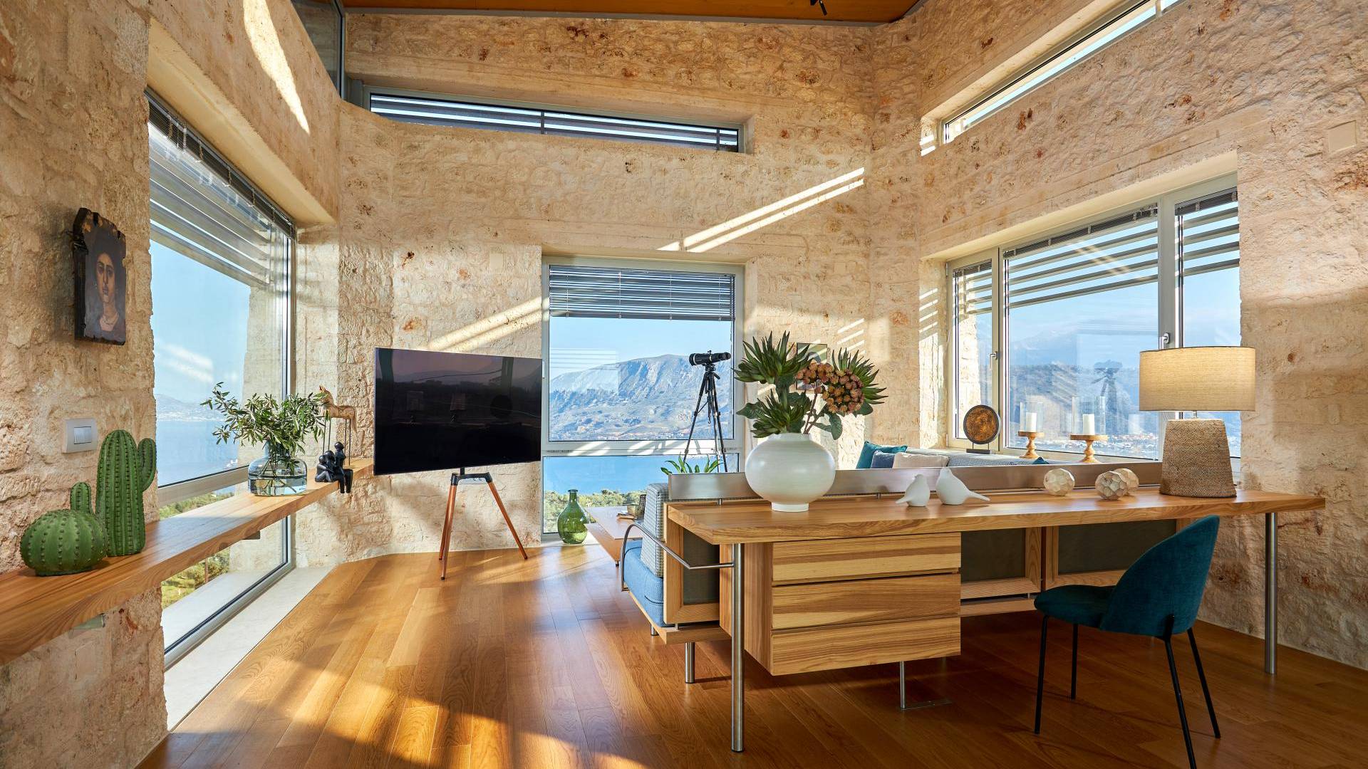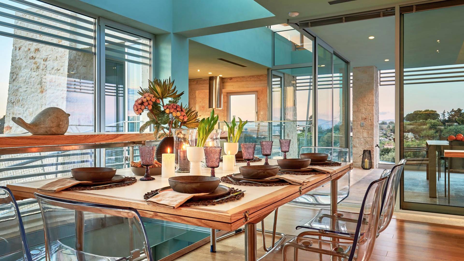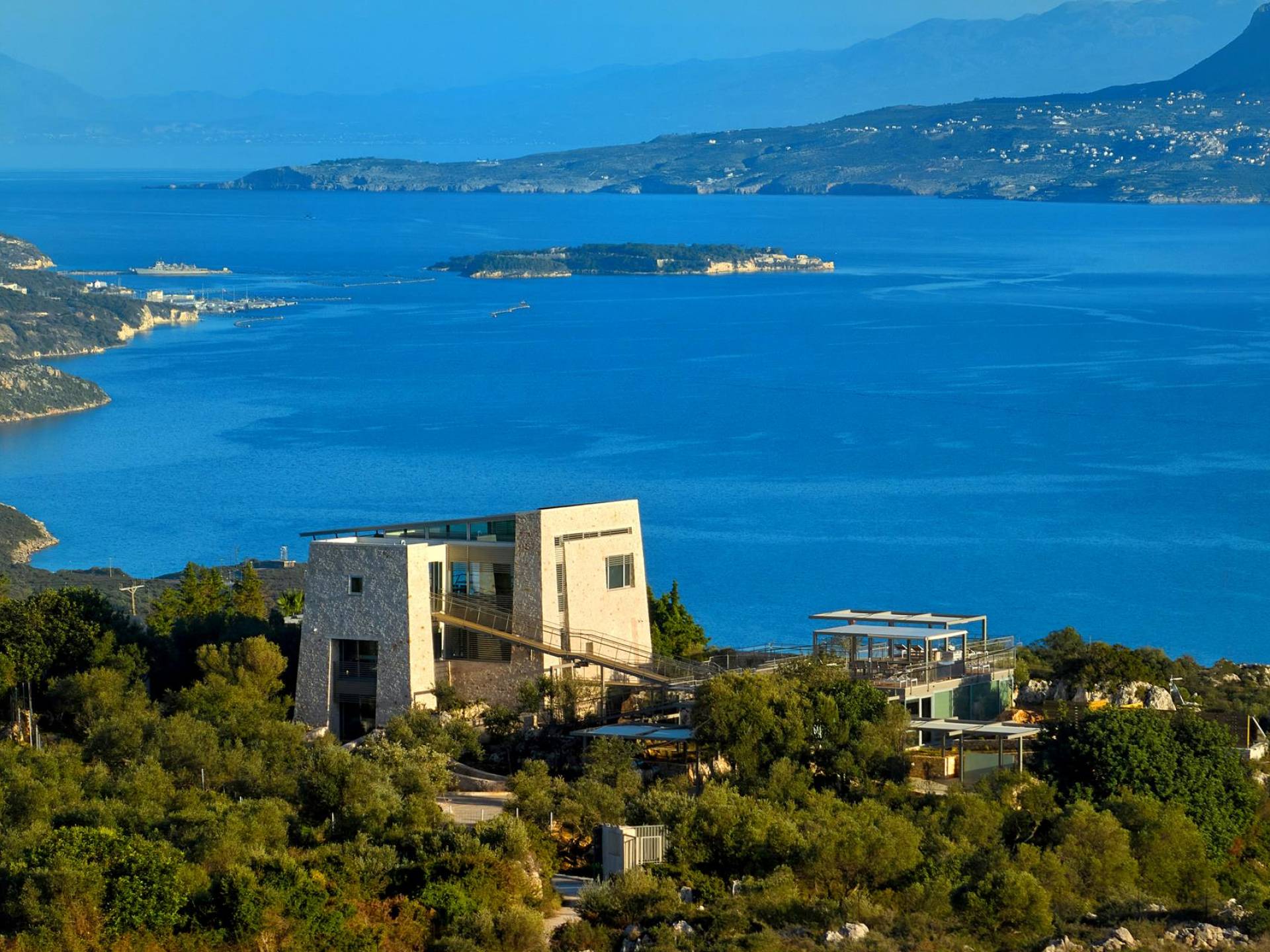Benvenuti a Olives and Thyme Retreat, uno spazio unico totalmente privato a cui si accede solo da una strada, senza che nessuno si affaccia su di esso. Arroccato sul bordo di una scogliera che domina la baia di Souda e attraverso le maestose Montagne Bianche e sopra la strada da Souda ad Akrotiri, Olives and Thyme offre la sua posizione unica. Il suo mix di pietra, legno, vetro e metallo crea uno stile newyorkese-svedese seduto in un uliveto cretese. Il complesso è costituito dall'edificio principale a forma di torre ''The Keep'', con un cottage in pietra separato sulla sinistra.
