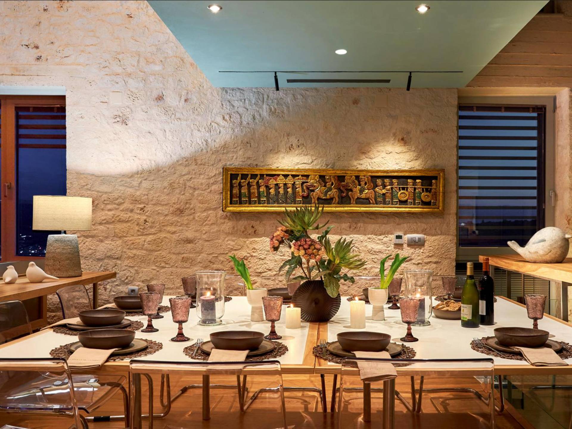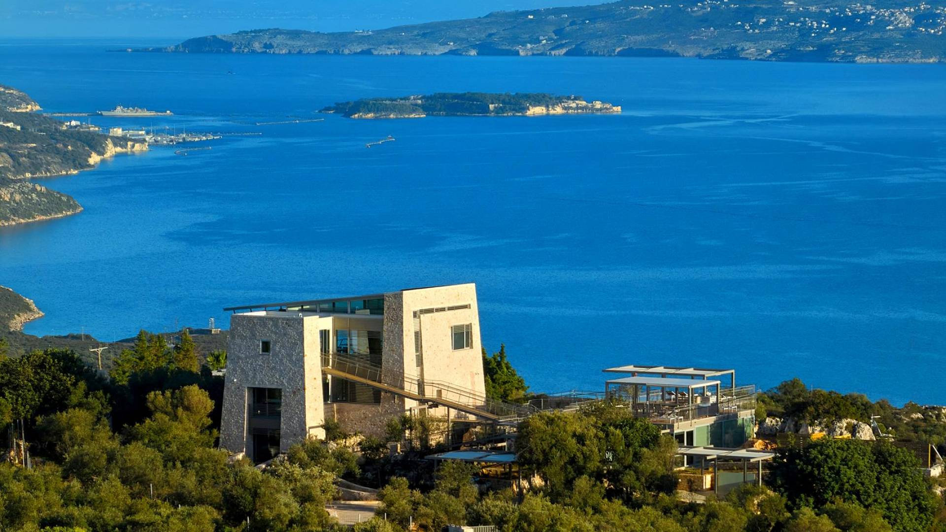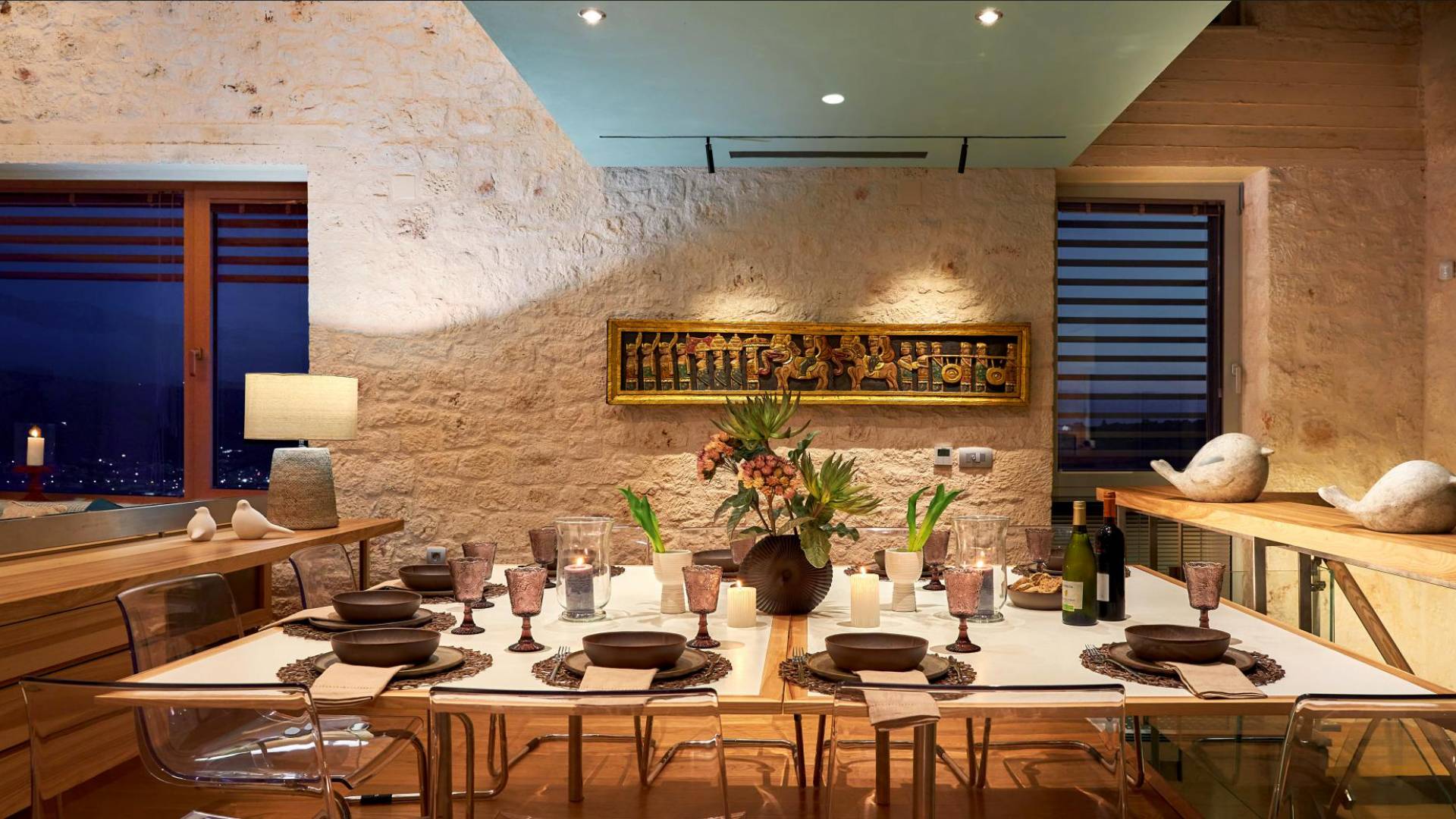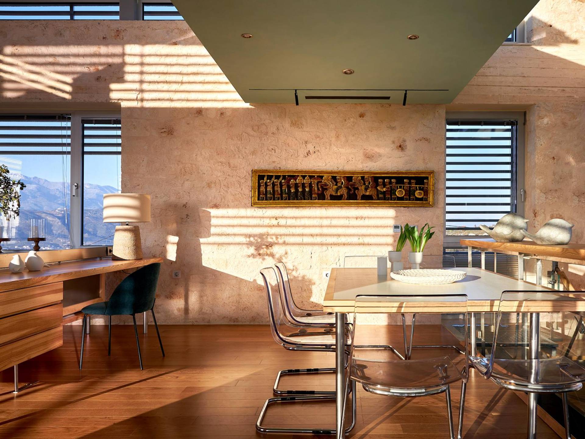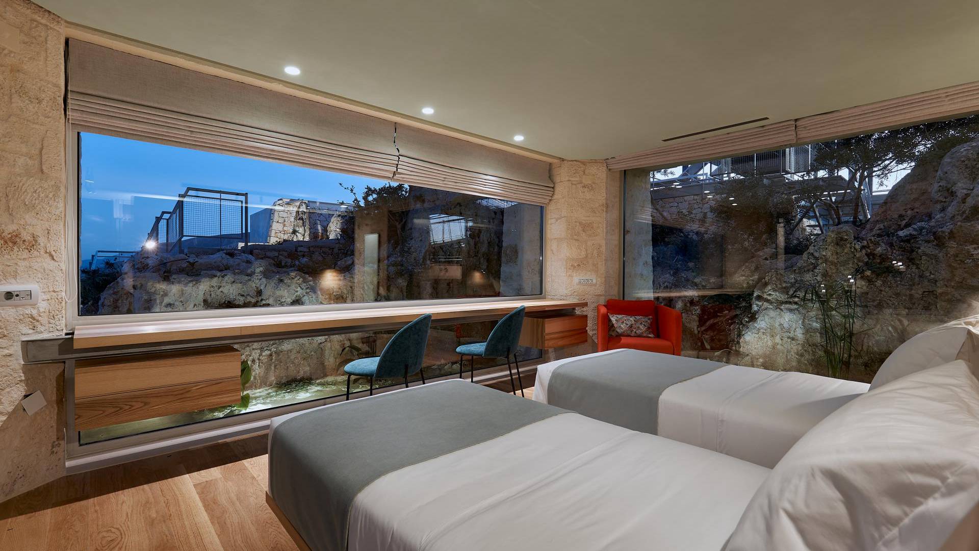 Benvenuti a Olives and Thyme Retreat, uno spazio unico totalmente privato a cui si accede solo da una strada, senza che nessuno si affaccia su di esso. Arroccato sul bordo di una scogliera che domina la baia di Souda e attraverso le maestose Montagne Bianche e sopra la strada da Souda ad Akrotiri, Olives and Thyme offre la sua posizione unica. Il suo mix di pietra, legno, vetro e metallo crea uno stile newyorkese-svedese seduto in un uliveto cretese. Il complesso è costituito dall'edificio principale a forma di torre ''The Keep'', con un cottage in pietra separato sulla sinistra.
