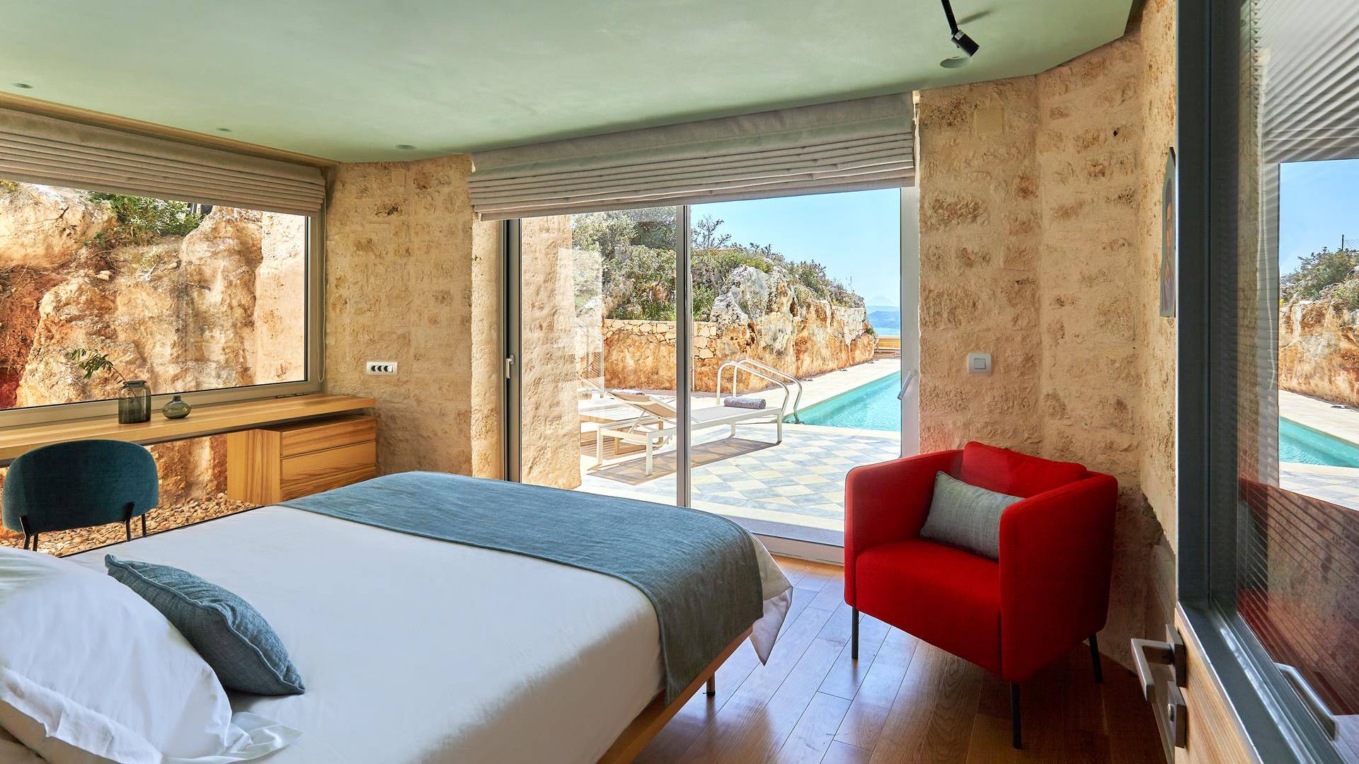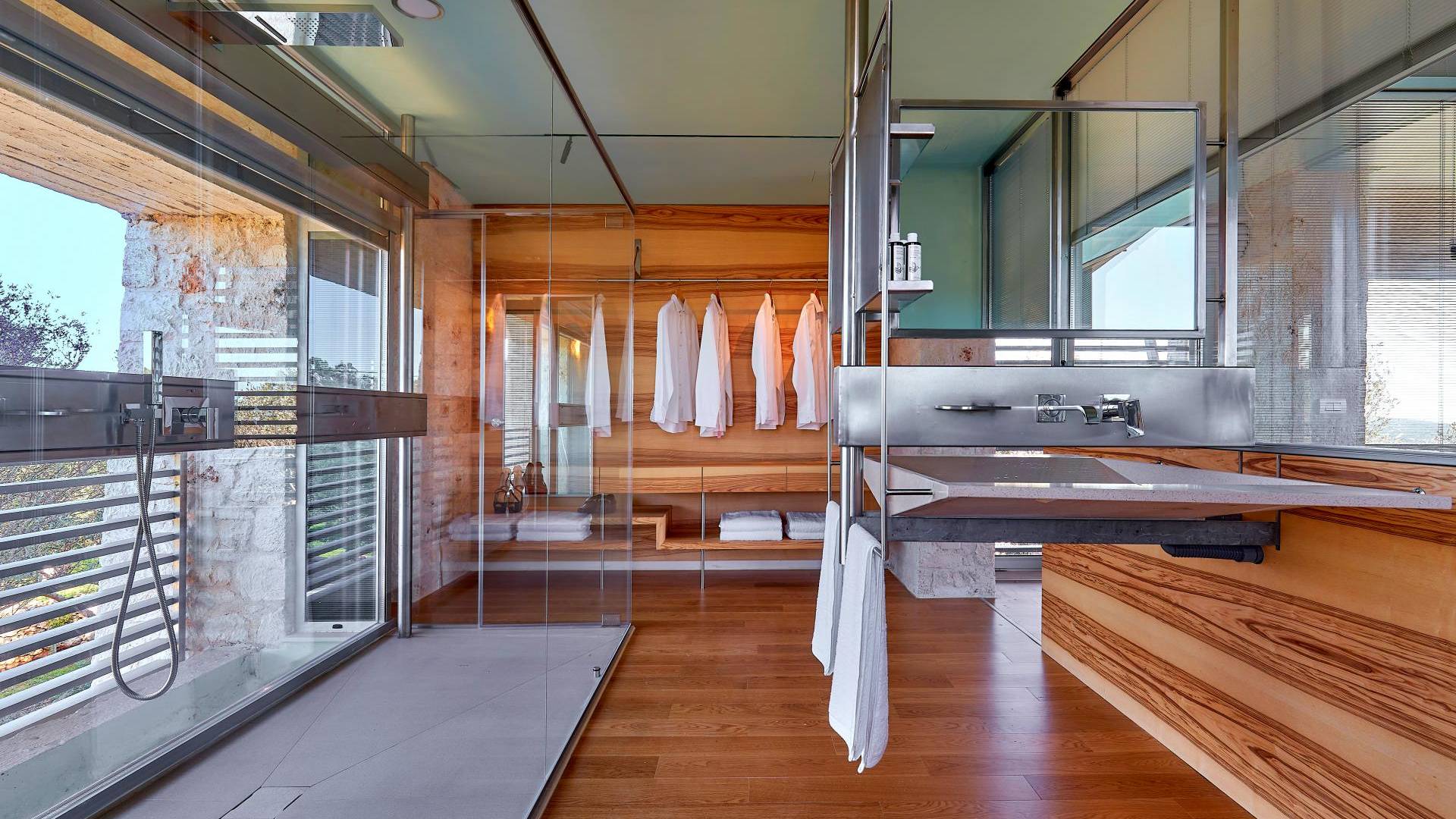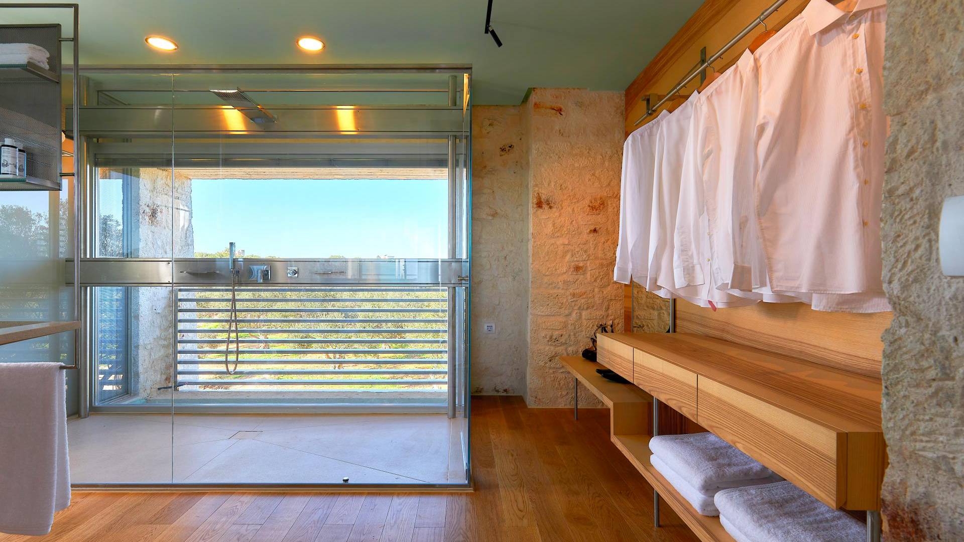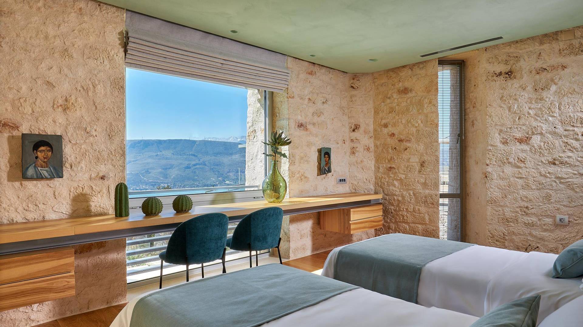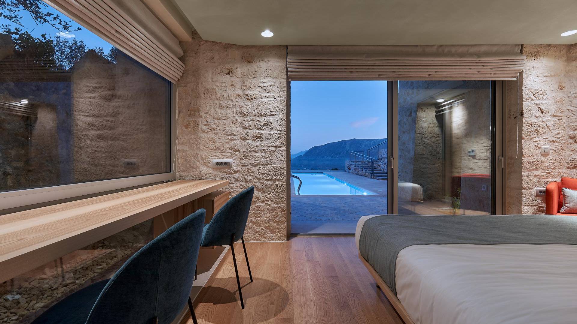 Le quattro ampie camere da letto del Mastio dispongono di comodi letti king-size, due dei quali possono essere separati per formare letti singoli. Le docce walk-in e i doppi lavandini danno spazio personale a ogni ospite. Gli armadi aperti offrono un sacco di spazio per appendere e mensole, con alcuni cassetti che offrono molto spazio per tutti i tuoi vestiti e oggetti personali. I grandi ripiani in legno possono essere utilizzati come spazio per scrivere o semplicemente come spazio per appoggiare i tuoi libri. Tutte le finestre, interne ed esterne, sono dotate di oscuranti per la privacy e per oscurare la luce. Le due camere da letto al piano terra hanno accesso alla piscina olimpionica e le due camere al primo piano hanno un accesso pedonale alla piscina infinita e all'area ricreativa.