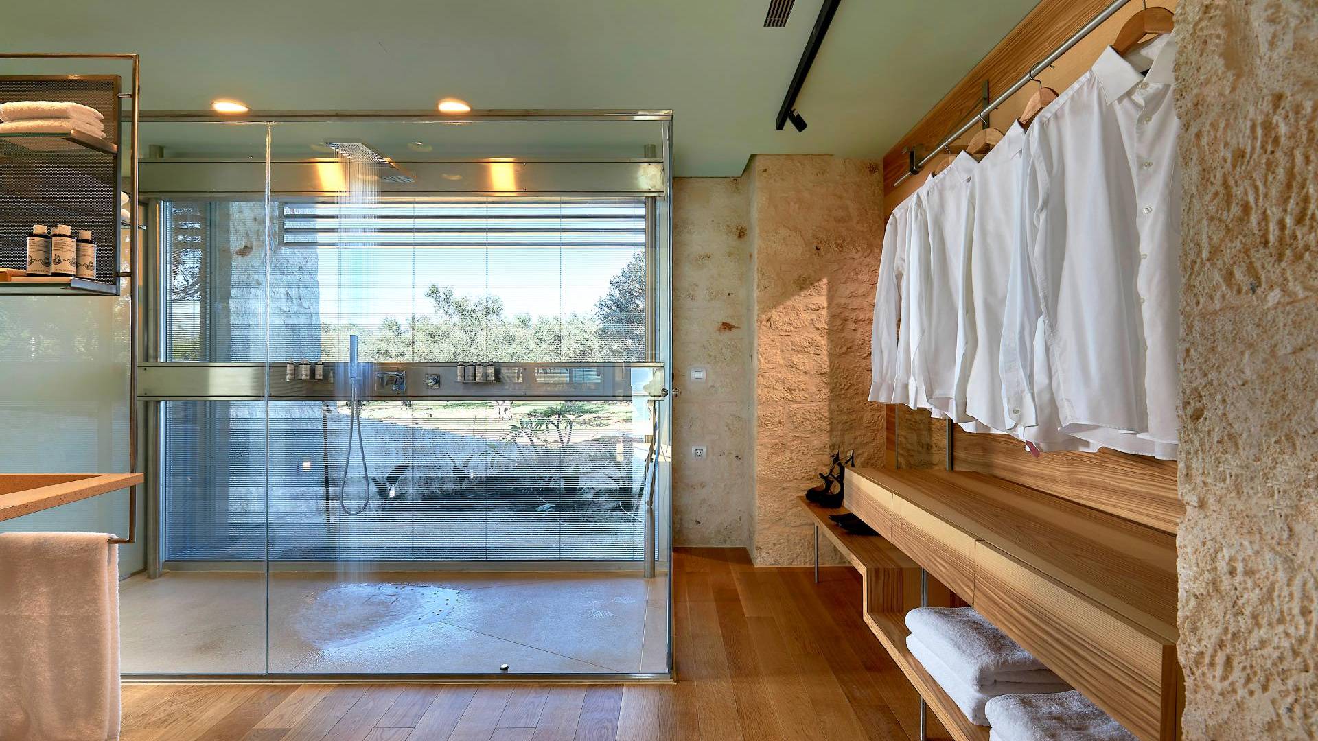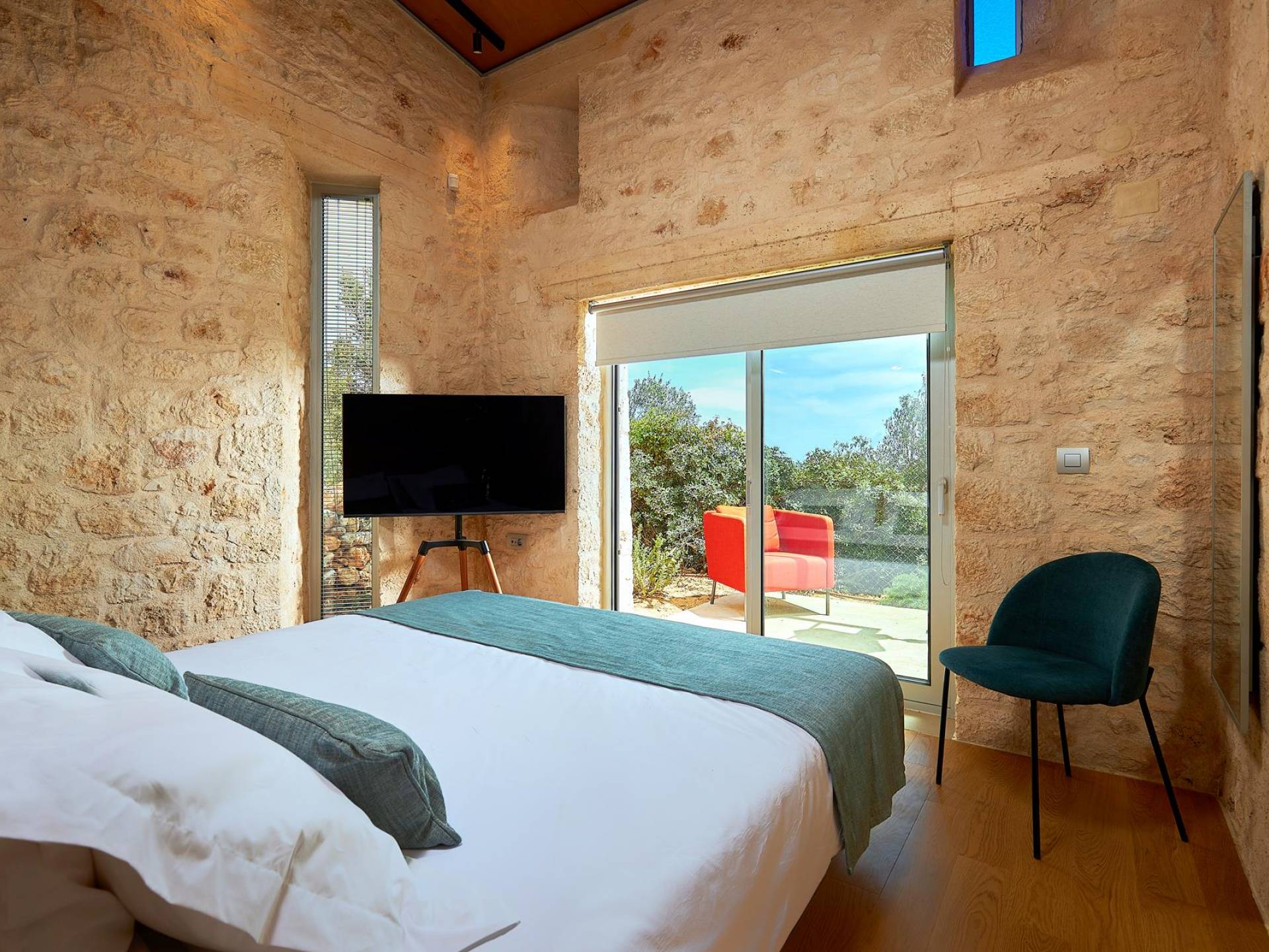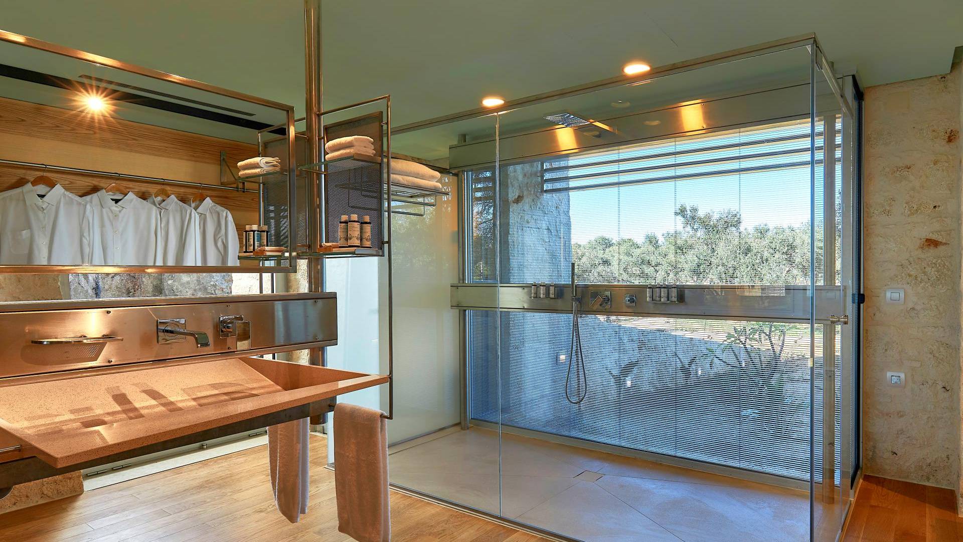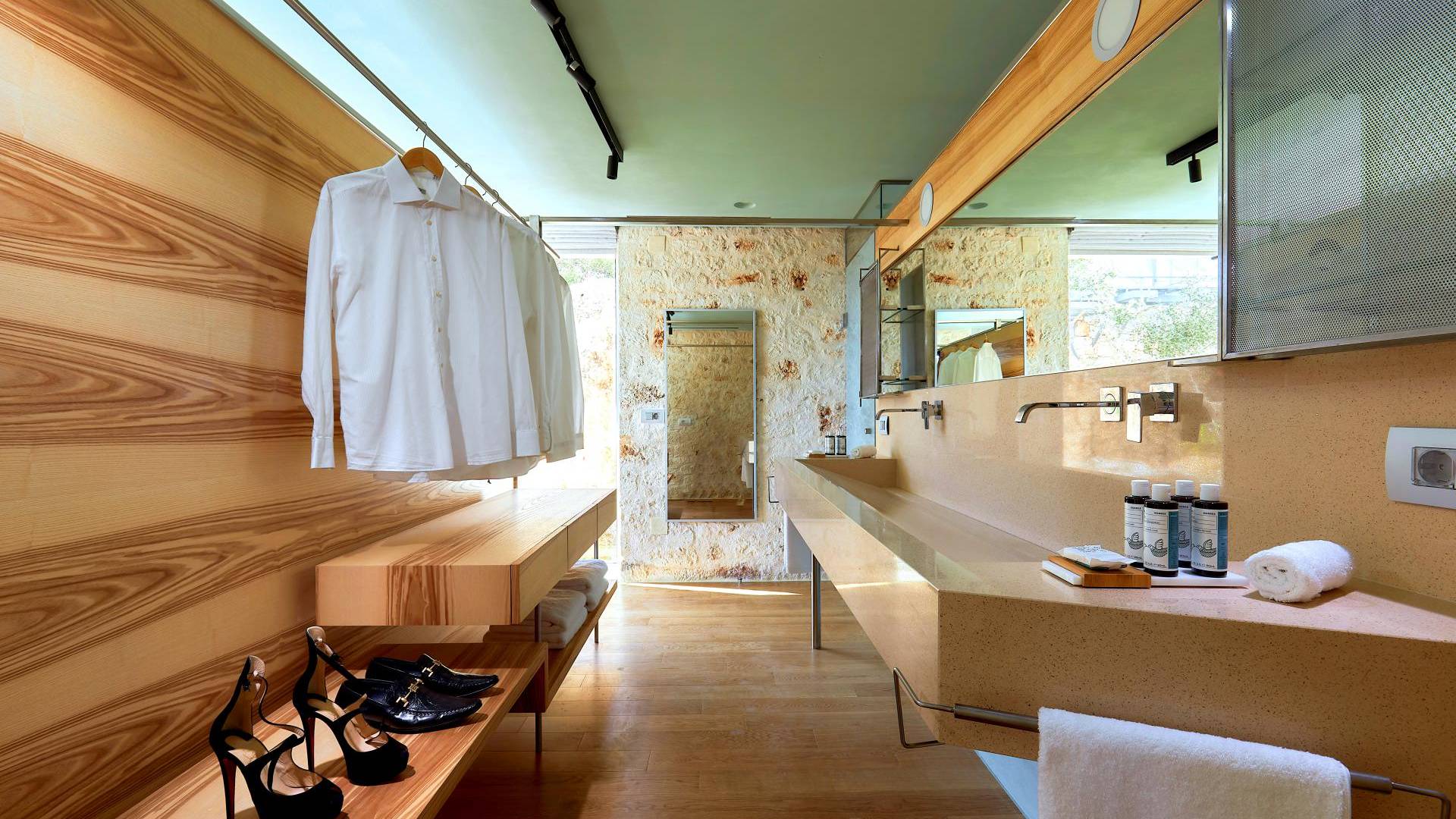 Le quattro ampie camere da letto del Mastio dispongono di comodi letti king-size, due dei quali possono essere separati per formare letti singoli. Le docce walk-in e i doppi lavandini danno spazio personale a ogni ospite. Gli armadi aperti offrono un sacco di spazio per appendere e mensole, con alcuni cassetti che offrono molto spazio per tutti i tuoi vestiti e oggetti personali. I grandi ripiani in legno possono essere utilizzati come spazio per scrivere o semplicemente come spazio per appoggiare i tuoi libri. Tutte le finestre, interne ed esterne, sono dotate di oscuranti per la privacy e per oscurare la luce. Le due camere da letto al piano terra hanno accesso alla piscina olimpionica e le due camere al primo piano hanno un accesso pedonale alla piscina infinita e all'area ricreativa.