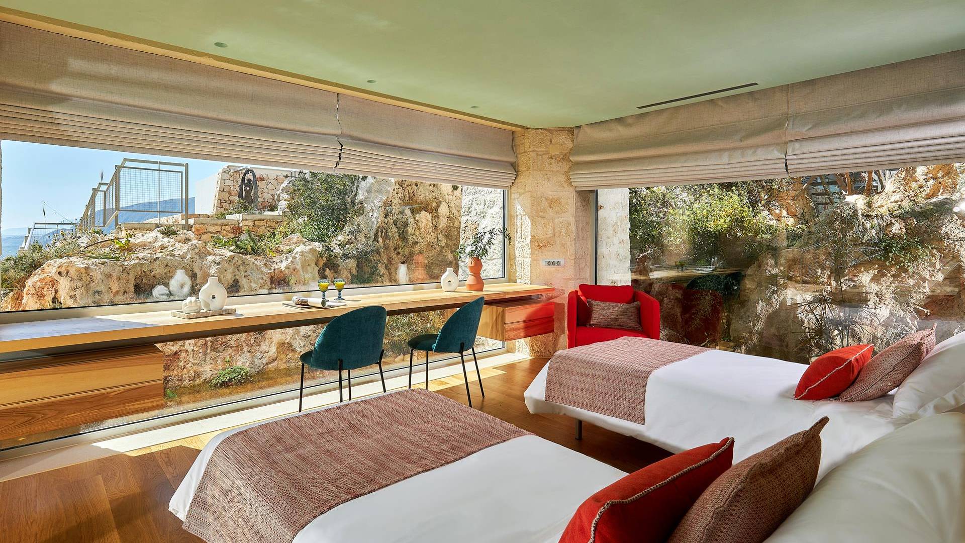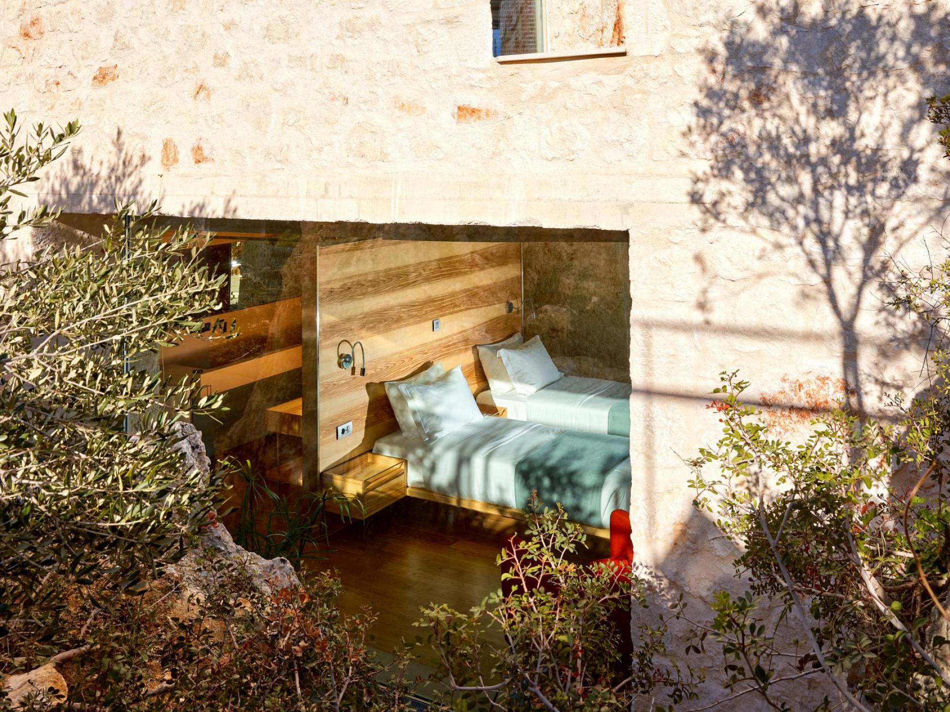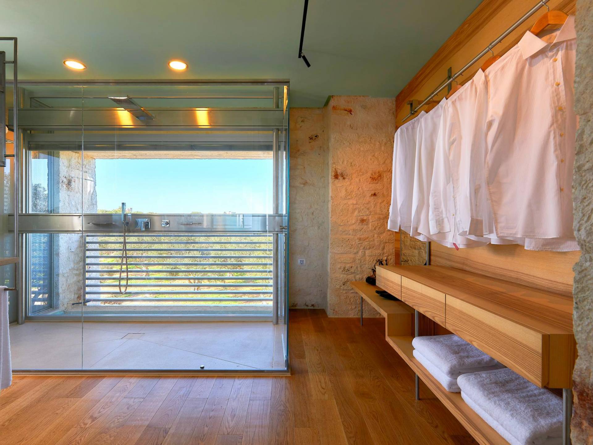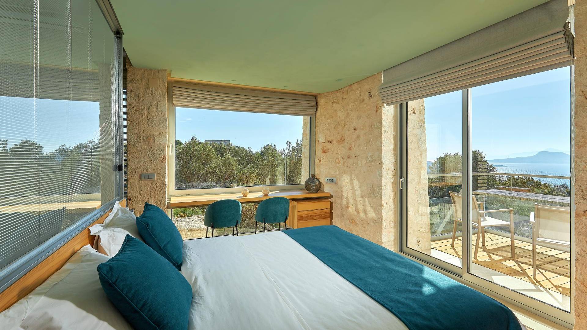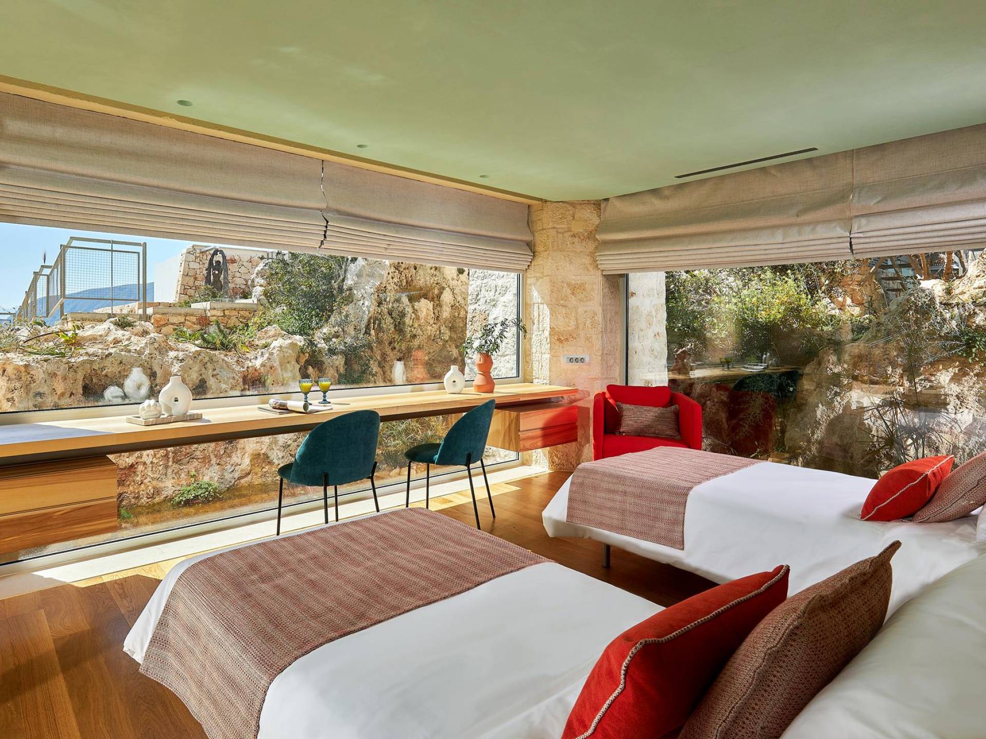 Le quattro ampie camere da letto del Mastio dispongono di comodi letti king-size, due dei quali possono essere separati per formare letti singoli. Le docce walk-in e i doppi lavandini danno spazio personale a ogni ospite. Gli armadi aperti offrono un sacco di spazio per appendere e mensole, con alcuni cassetti che offrono molto spazio per tutti i tuoi vestiti e oggetti personali. I grandi ripiani in legno possono essere utilizzati come spazio per scrivere o semplicemente come spazio per appoggiare i tuoi libri. Tutte le finestre, interne ed esterne, sono dotate di oscuranti per la privacy e per oscurare la luce. Le due camere da letto al piano terra hanno accesso alla piscina olimpionica e le due camere al primo piano hanno un accesso pedonale alla piscina infinita e all'area ricreativa.