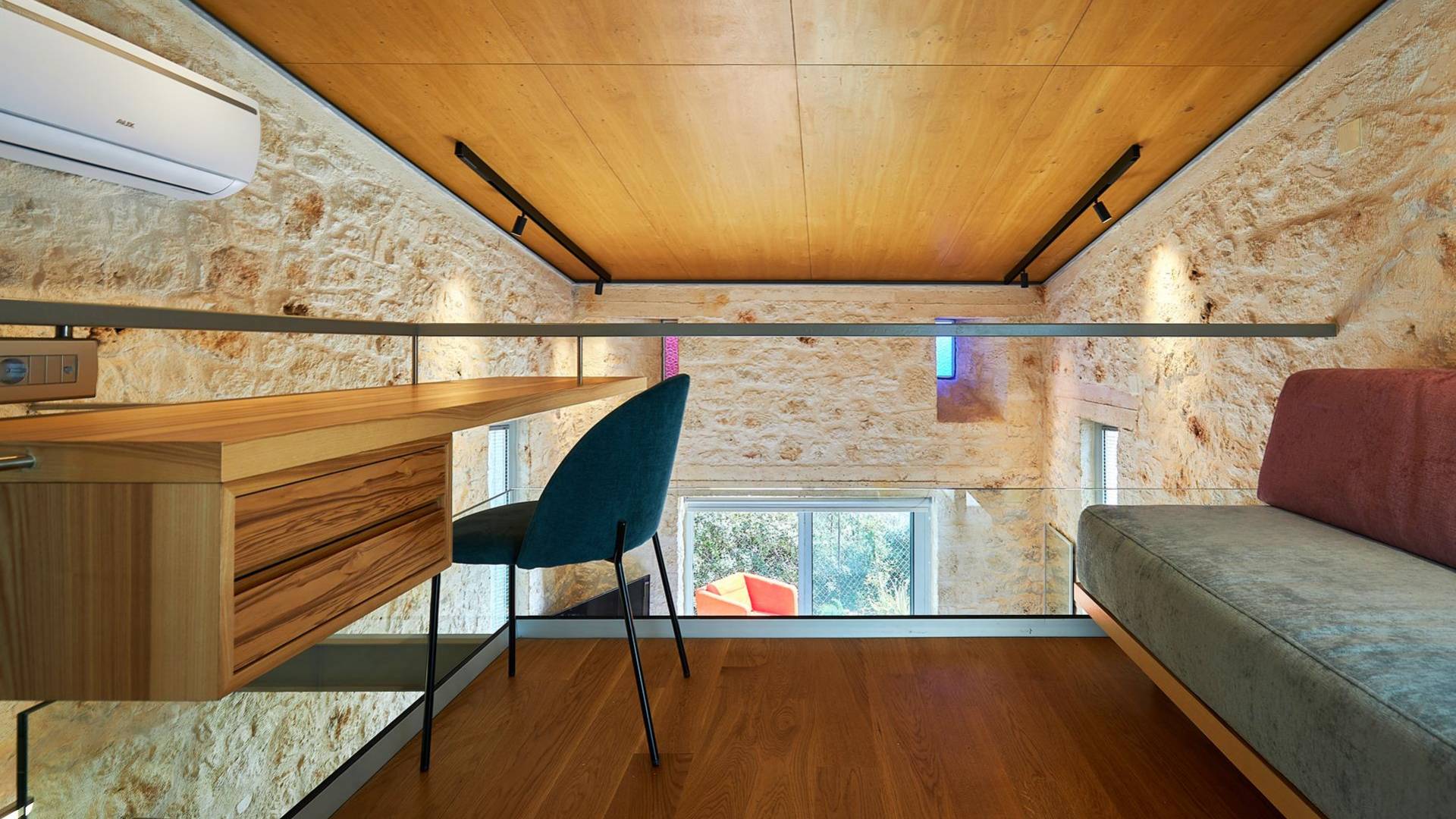 Una fuga nella fuga. Leggermente distante dalla villa principale, questo accogliente appartamento dispone di una camera da letto di buone dimensioni, un bagno completo con cabina doccia, un angolo cottura e un'area soggiorno/ufficio su un soppalco. I gradini conducono alla piscina olimpionica in una direzione e alla villa principale nell'altra.