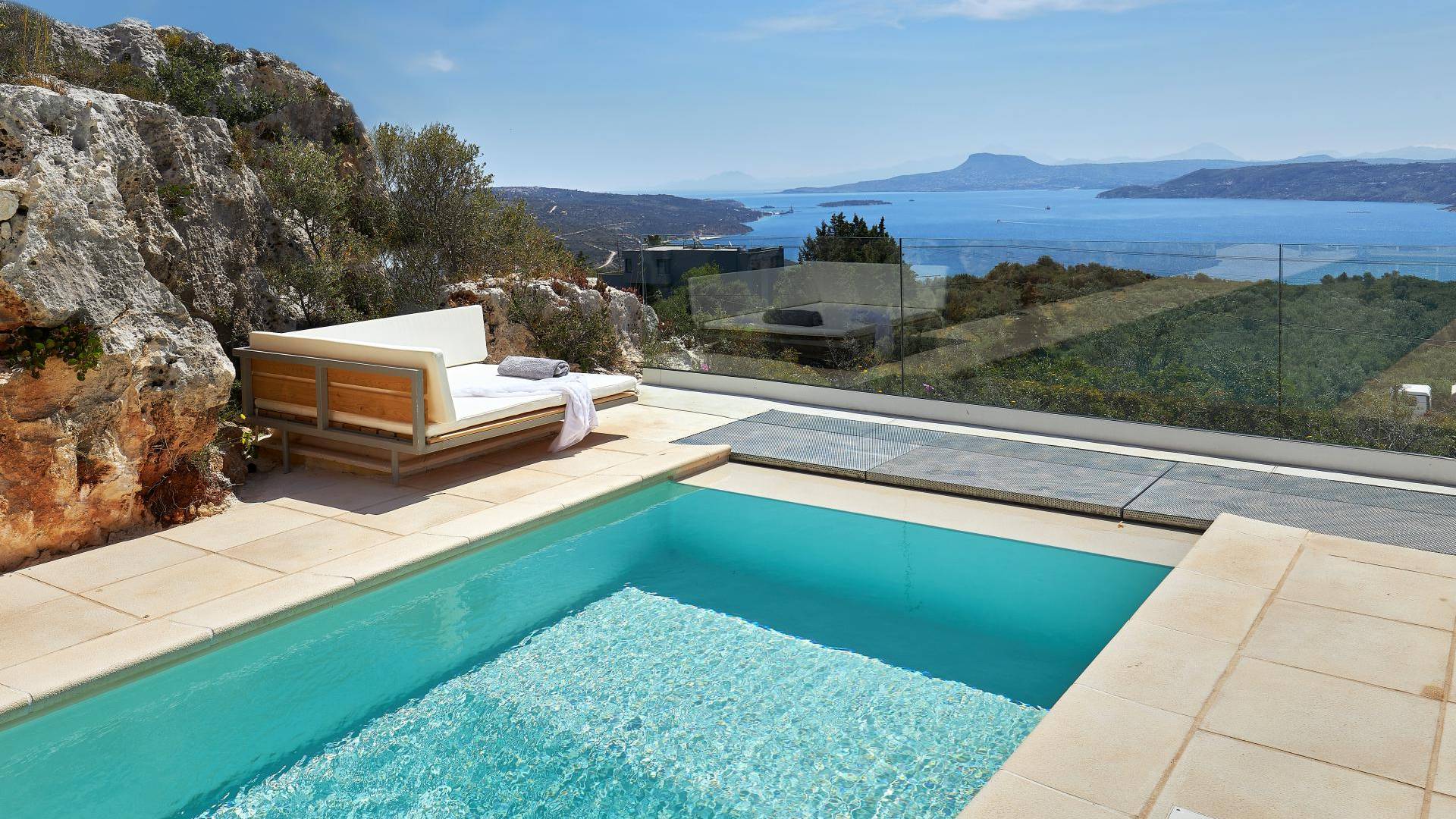 Colore blu, sole e lusso, niente può battere questa combinazione. Cos'altro c'è da chiedere per le tue vacanze? Concediti una piscina privata riscaldata nell'intimità della tua villa, sia interna che esterna. L'acqua è curativa e terapeutica e laverà…
