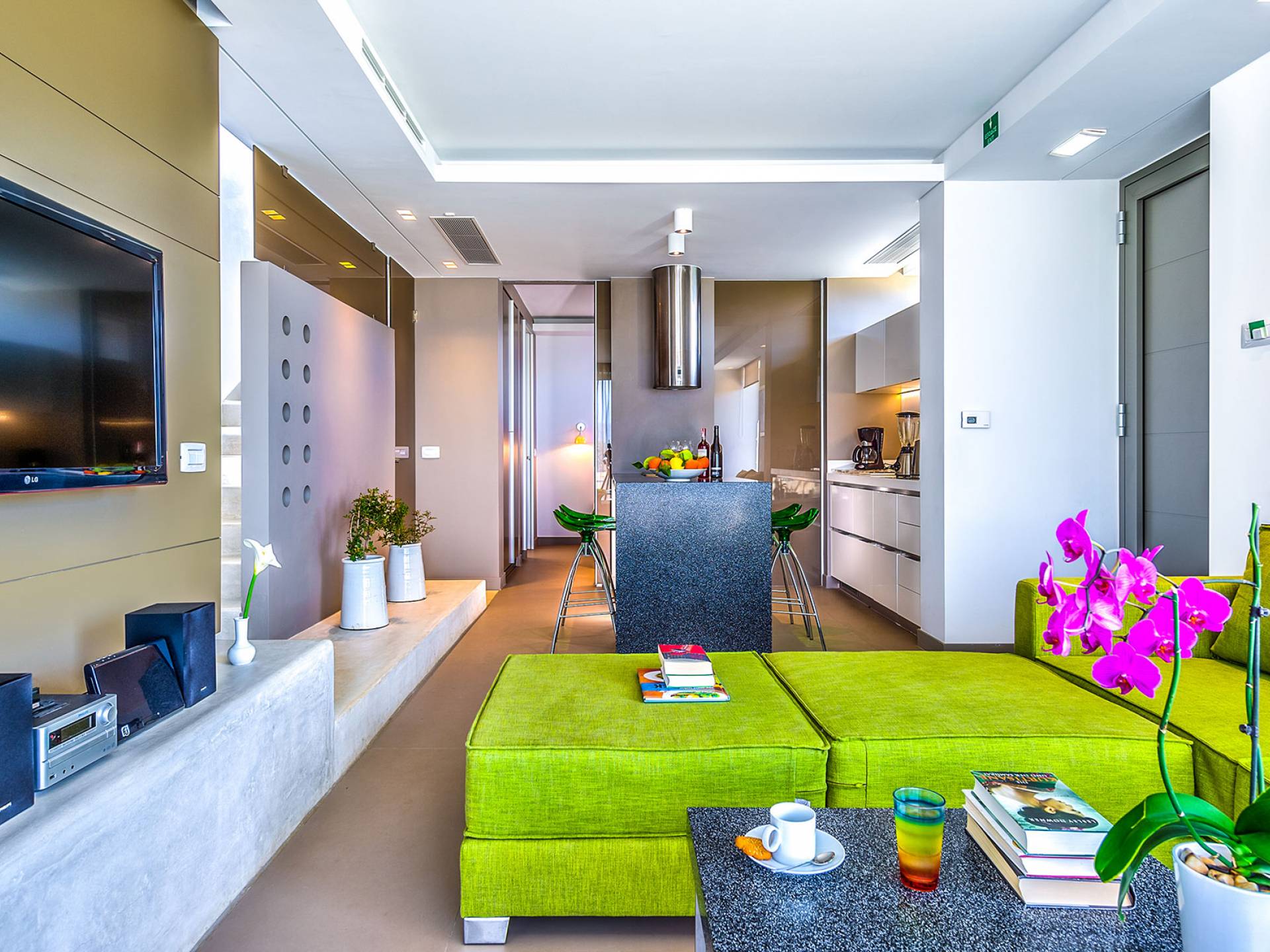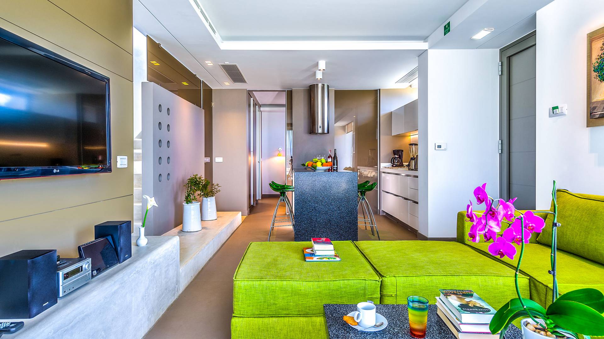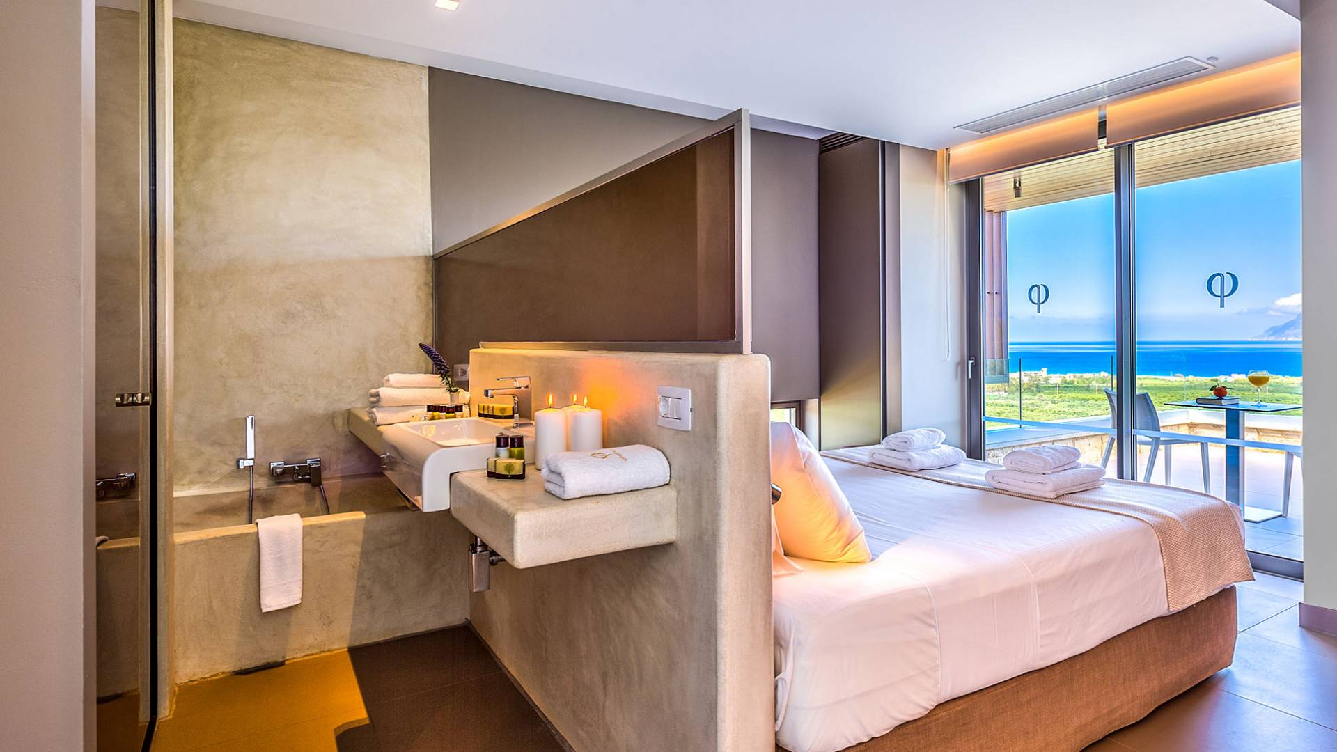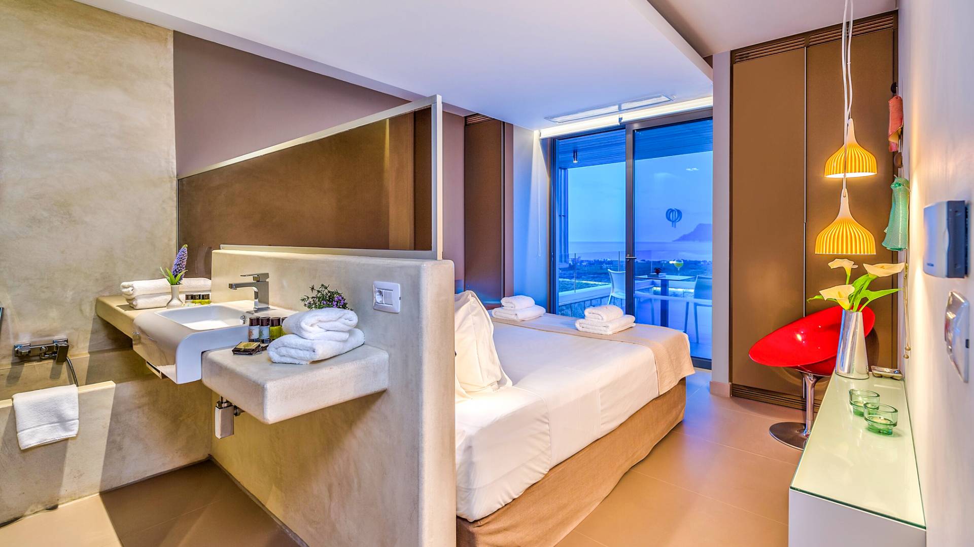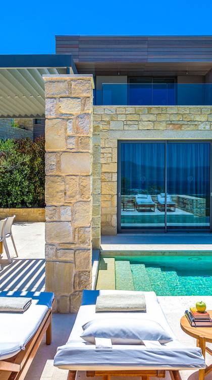 Oneiro Villa Crete è uno splendido edificio a due piani e due camere da letto con un'ampia terrazza in pietra naturale che include un'incantevole zona pranzo dotata di un pergolato appositamente progettato che fornisce riparo dal sole, consentendo il passaggio di alcuni dei suoi raggi discreti attraverso. L'effetto del paesaggio mediterraneo è esaltato dalla piantumazione di arbusti, fiori e alberi endemici nei giardini paesaggistici circostanti.