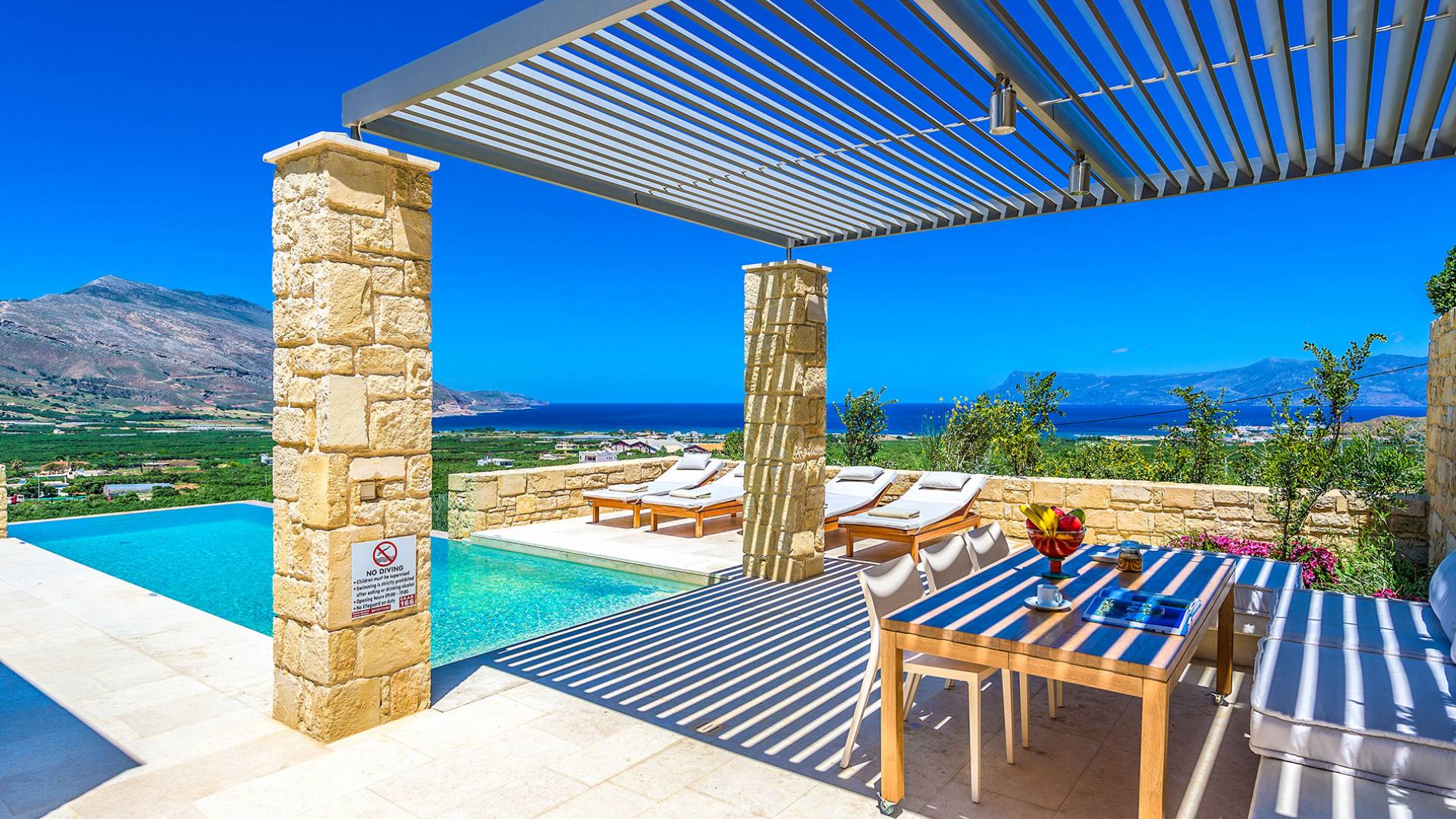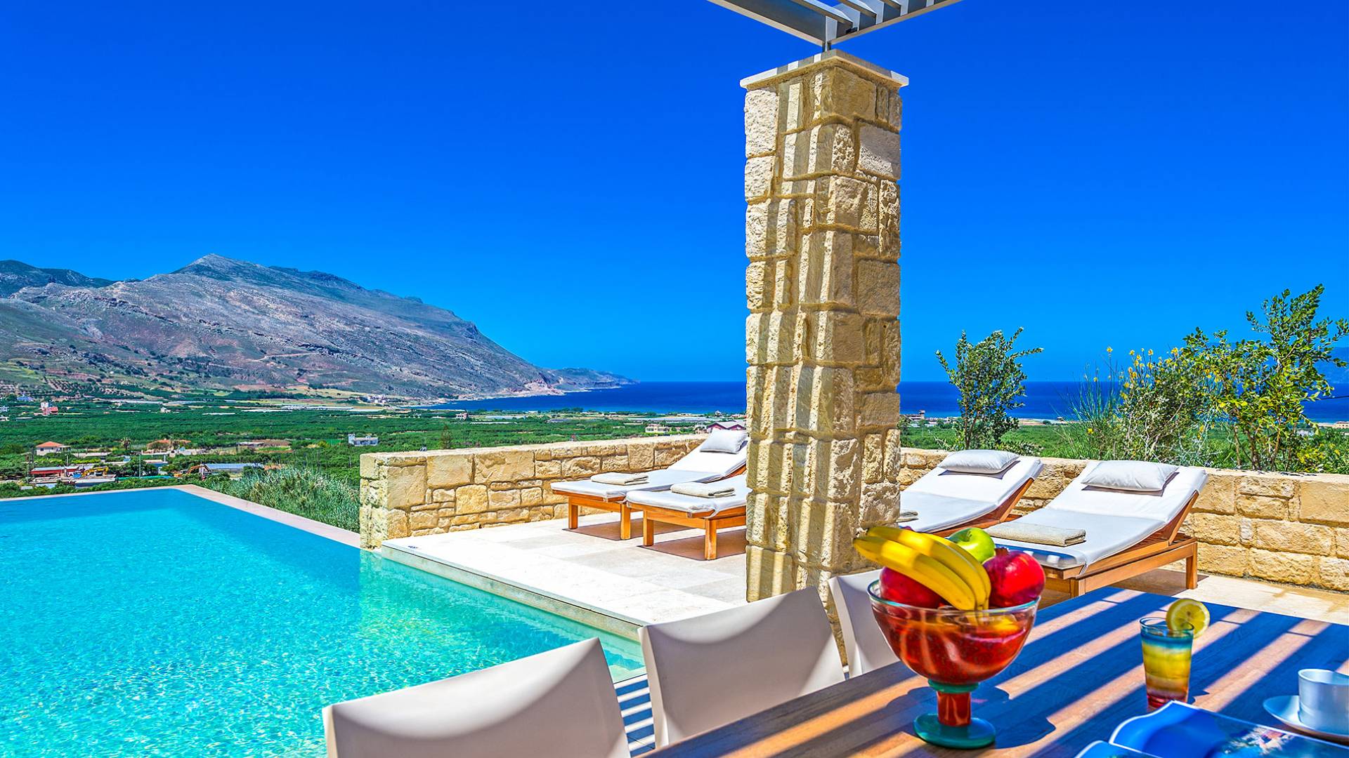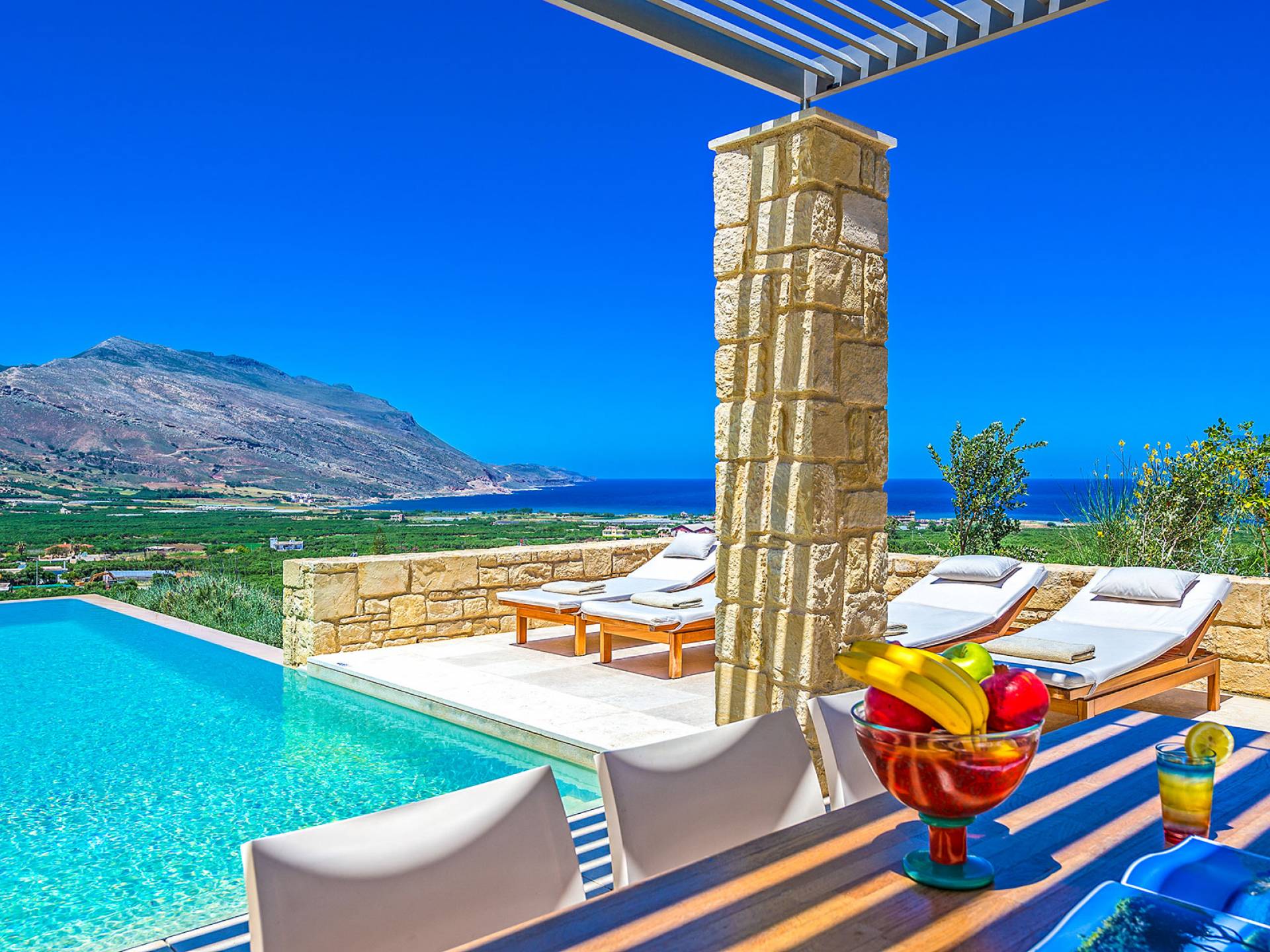 Soggiornare in una villa a Kissamos significa godere di privacy, spazio e comfort — spesso a pochi passi dal mare. Immagina di svegliarti con vista sulle montagne, gustare un bicchiere di vino cretese sulla tua terrazza privata o rinfrescarti nella piscina dopo una giornata al mare. Le nostre ville selezionate combinano lo stile tradizionale cretese con tutte le comodità moderne per farti sentire subito a casa.