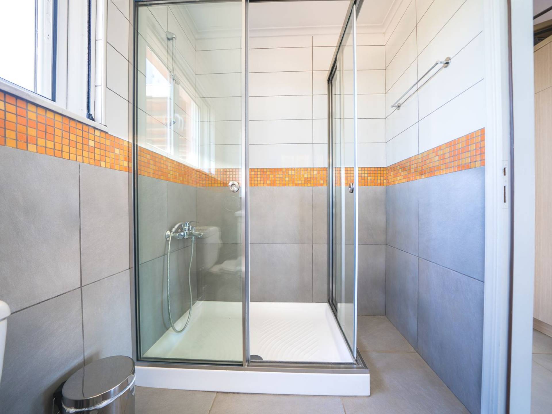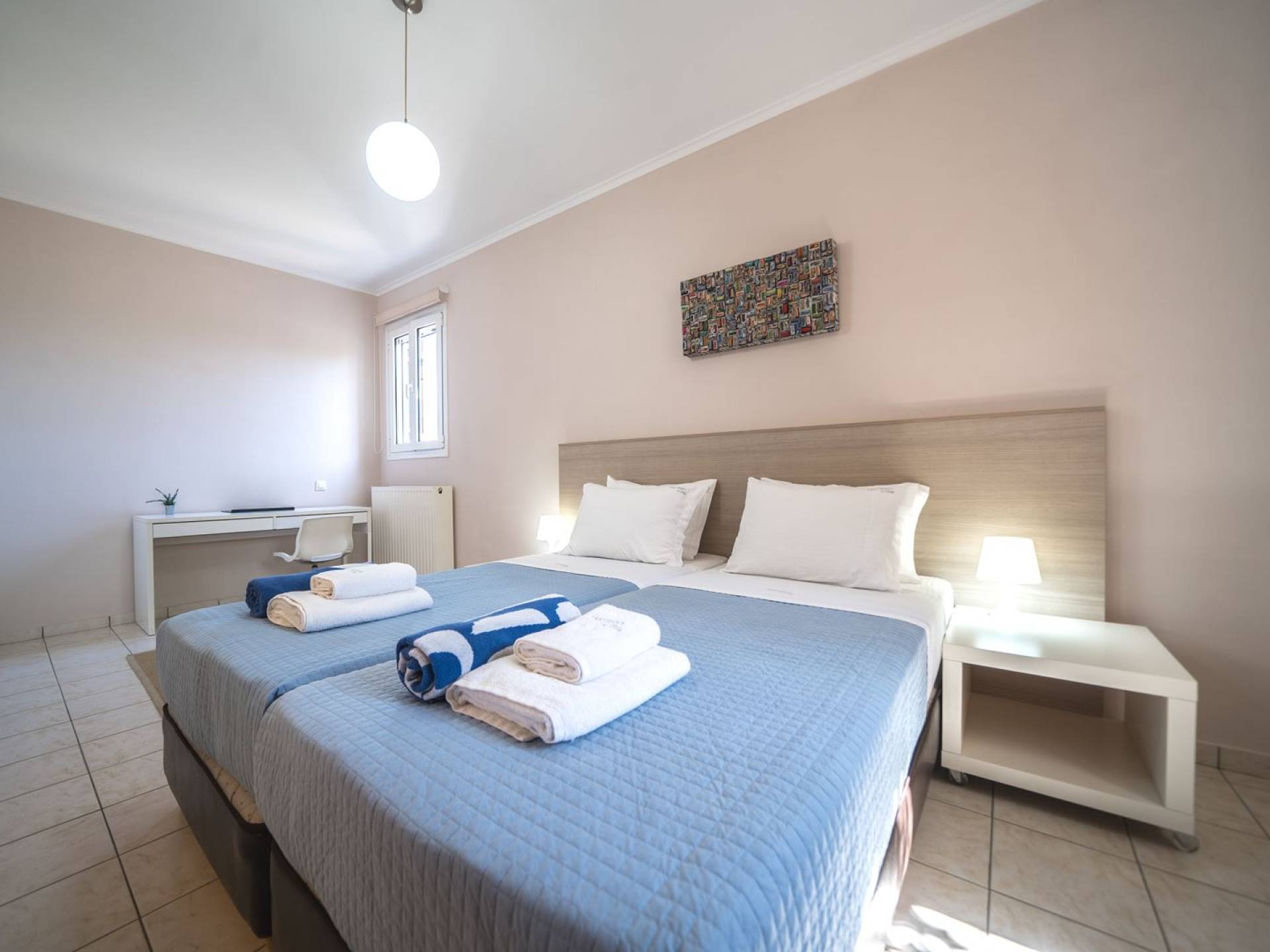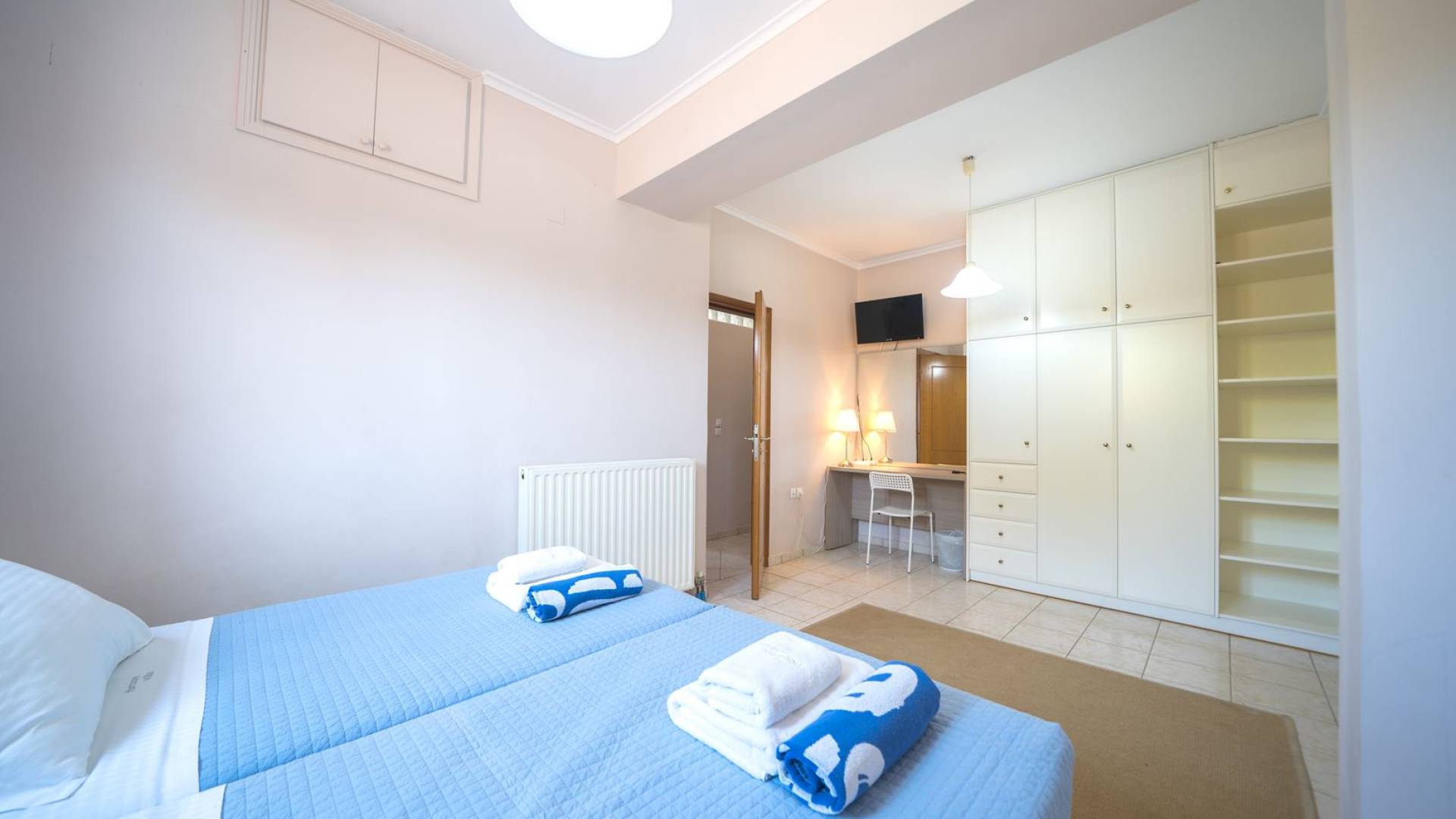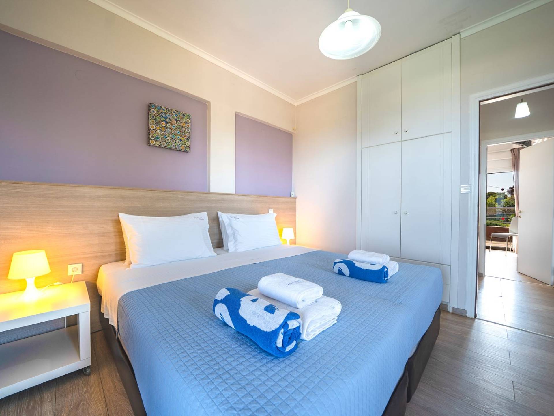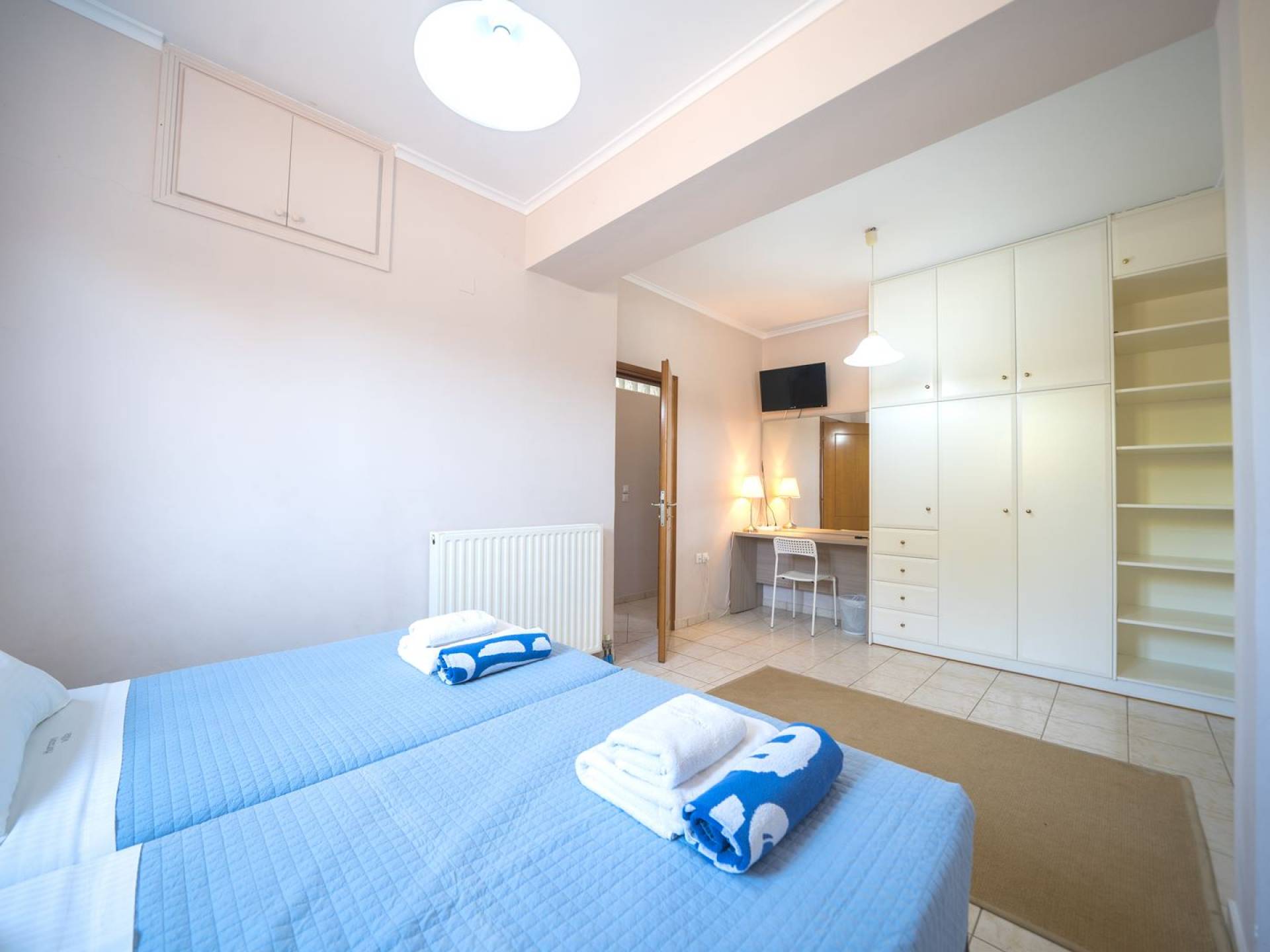 Al piano terra si trovano 3 camere da letto, una con un grande letto matrimoniale e due con 2 letti singoli ciascuna, 1 bagno con vasca e 1 WC con doccia, soggiorno e zona pranzo, ufficio trasformato in matrimoniale camera da letto, cucina completamente attrezzata, guardaroba e lavanderia. Tutte le camere sono dotate di aria condizionata e TV a schermo piatto. Al primo piano si trovano 1 ampio soggiorno e sala da pranzo con TV satellitare 42'', una seconda cucina completamente attrezzata, uno studio che si trasforma in una camera matrimoniale e 1 WC ospiti con doccia. Ci sono anche bellissime verande e balconi che offrono magnifiche viste sul mare. Al secondo piano ci sono altre tre camere da letto, una matrimoniale con letto king-size e bagno privato con vasca idromassaggio e balcone vista mare, un'altra camera matrimoniale e una con due letti singoli. C'è anche un altro bagno con vasca a questo livello.