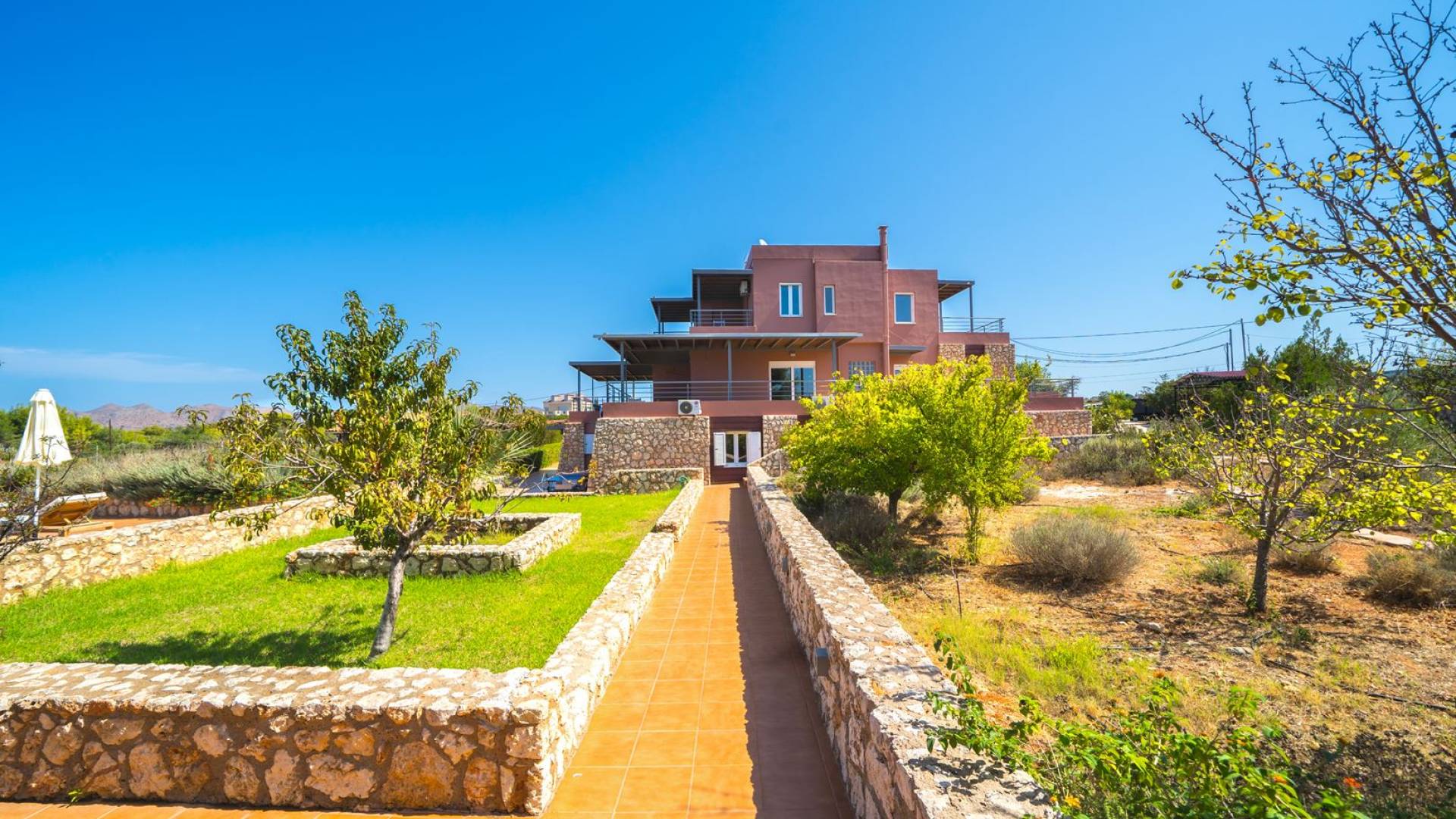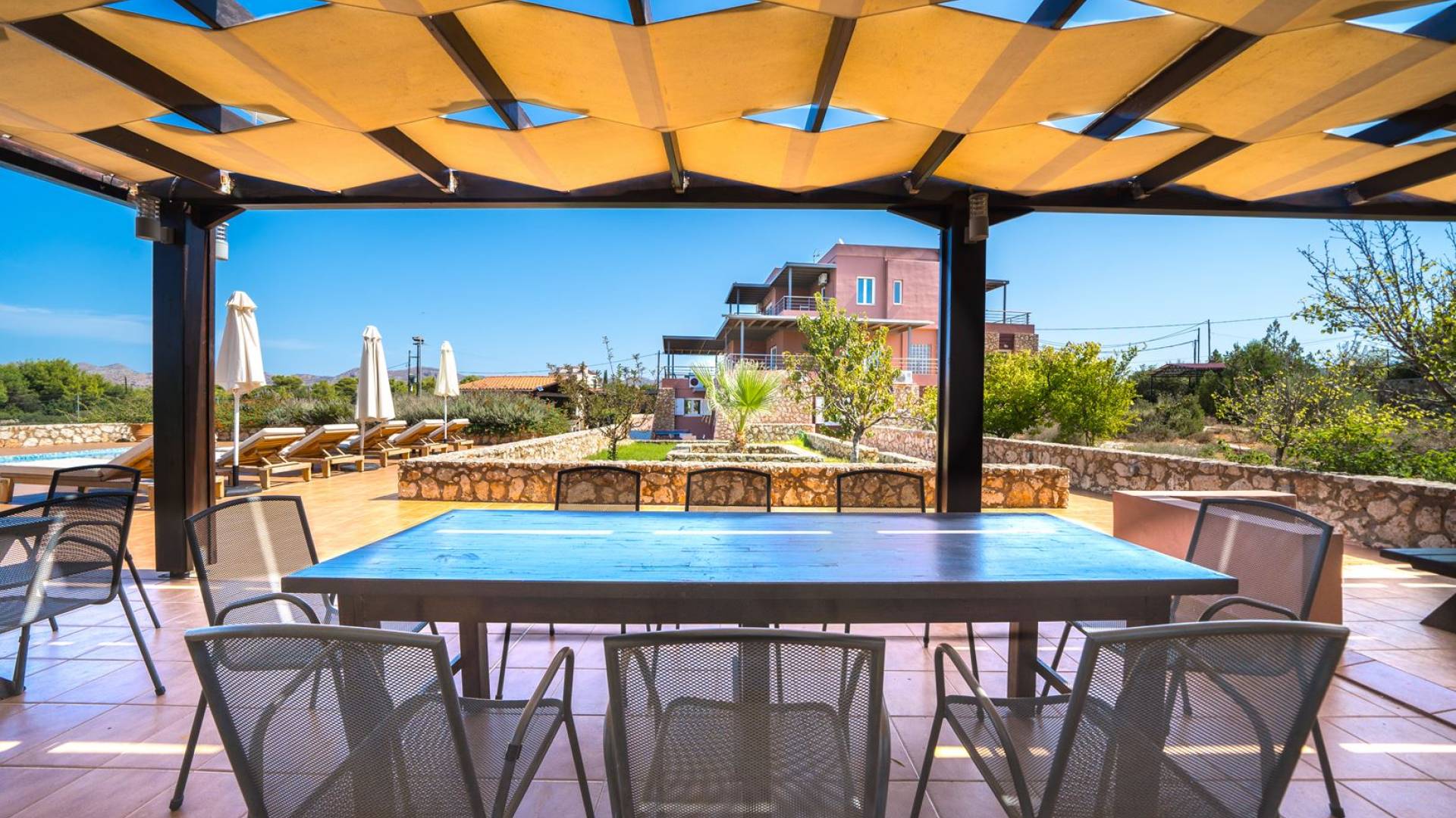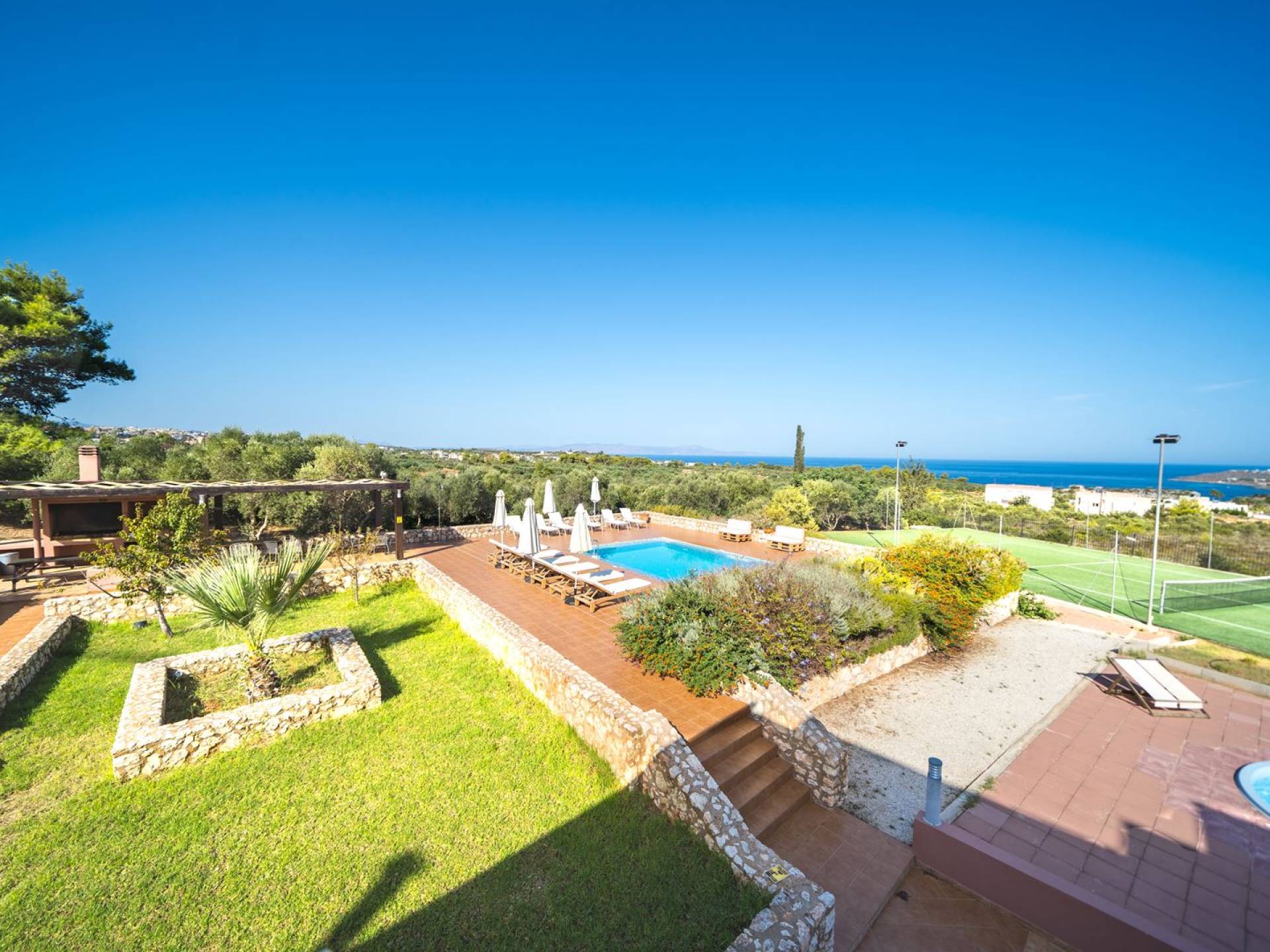 Orizon villa Chania offre accesso gratuito a internet Wi-Fi e un sistema di sicurezza. I dintorni della villa ei suoi spazi esterni incanteranno sicuramente i visitatori con i loro splendidi fiori ed erbe aromatiche, il prato vicino al grande barbecue in muratura e le grandi sale da pranzo. C'è anche un'area giochi per intrattenere i bambini. Bambini e adulti saranno ugualmente soddisfatti dal loro soggiorno e dal senso di libertà che la villa offre loro.