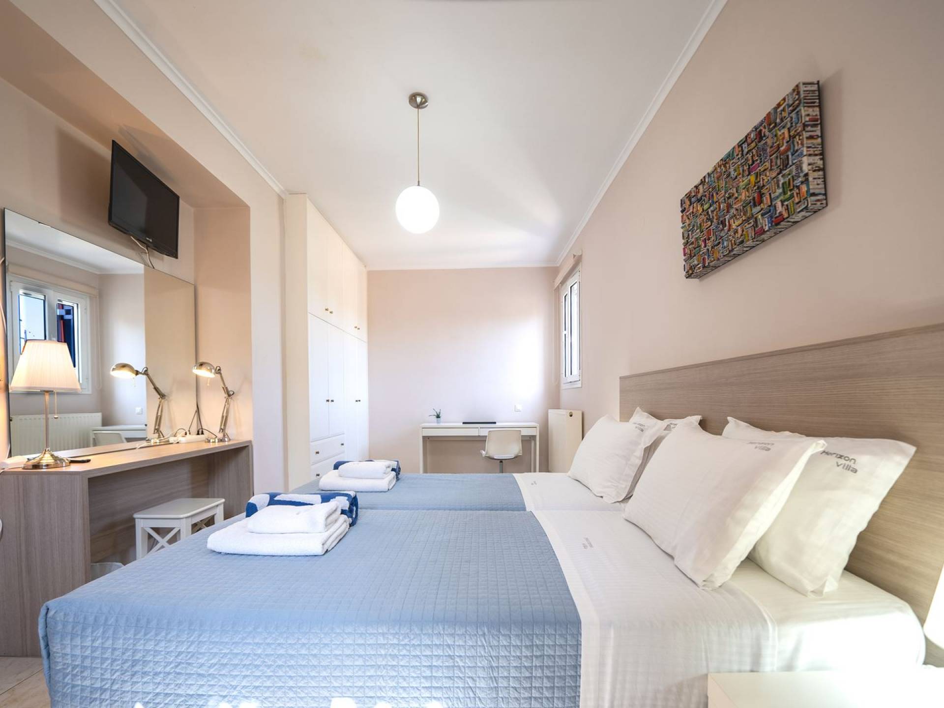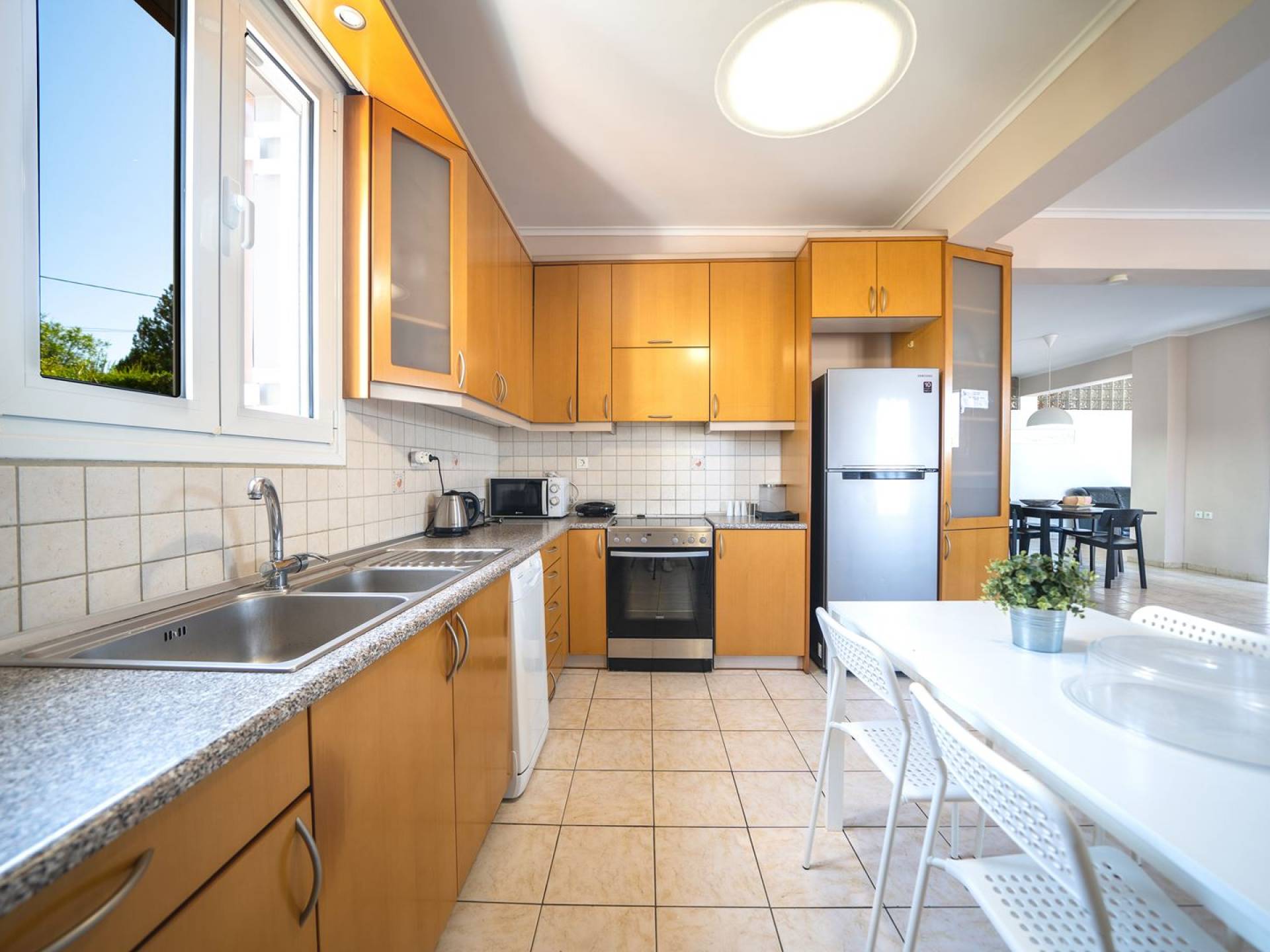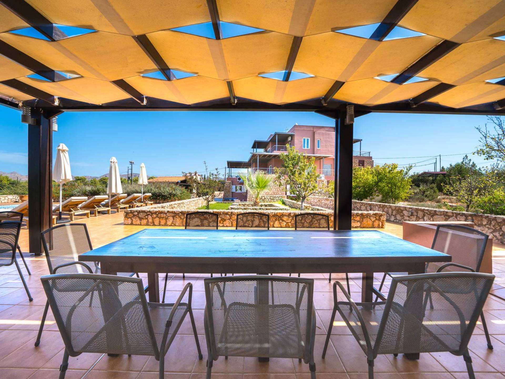 Orizon villa Chania offre accesso gratuito a internet Wi-Fi e un sistema di sicurezza. I dintorni della villa ei suoi spazi esterni incanteranno sicuramente i visitatori con i loro splendidi fiori ed erbe aromatiche, il prato vicino al grande barbecue in muratura e le grandi sale da pranzo. C'è anche un'area giochi per intrattenere i bambini. Bambini e adulti saranno ugualmente soddisfatti dal loro soggiorno e dal senso di libertà che la villa offre loro.