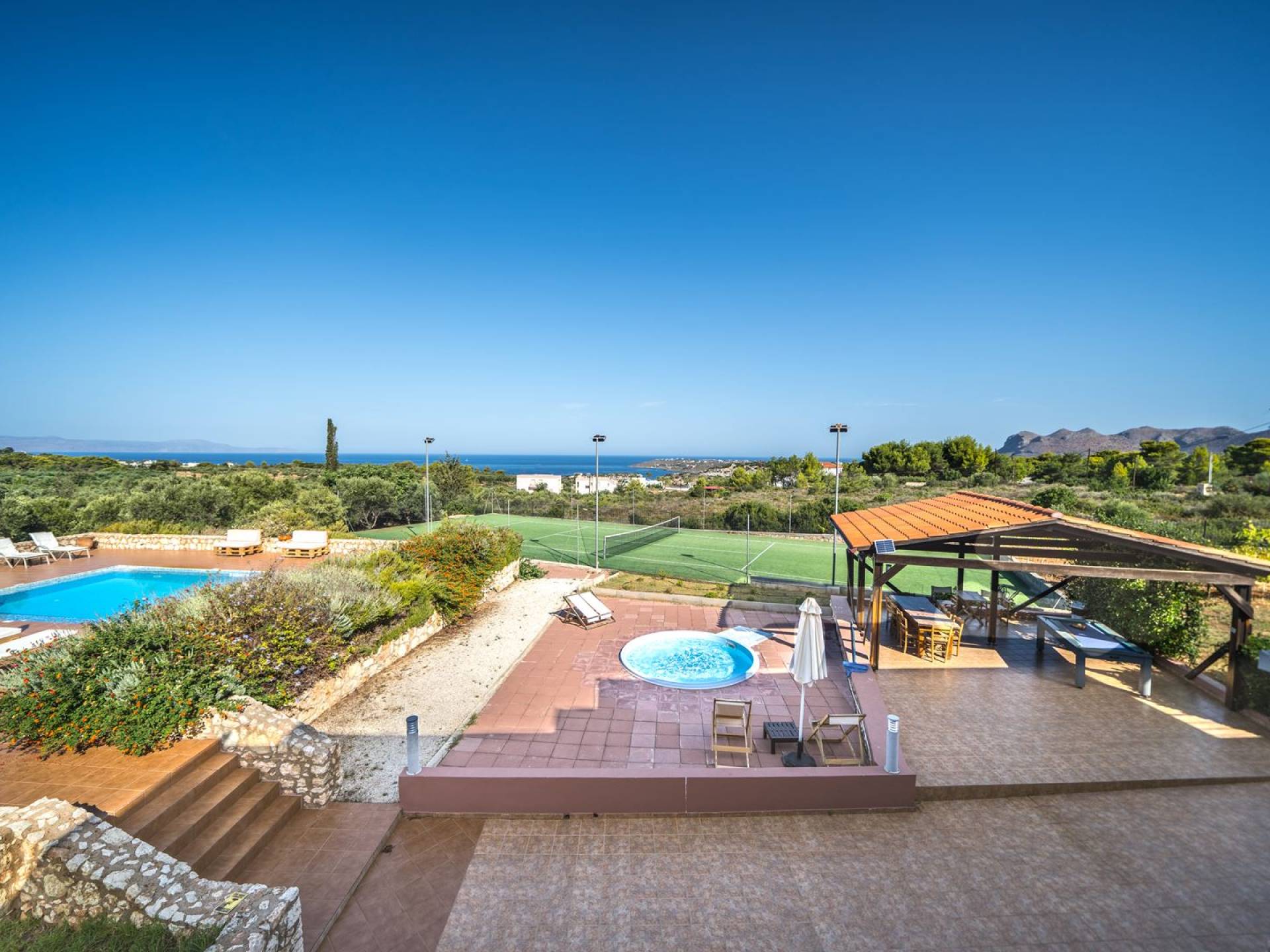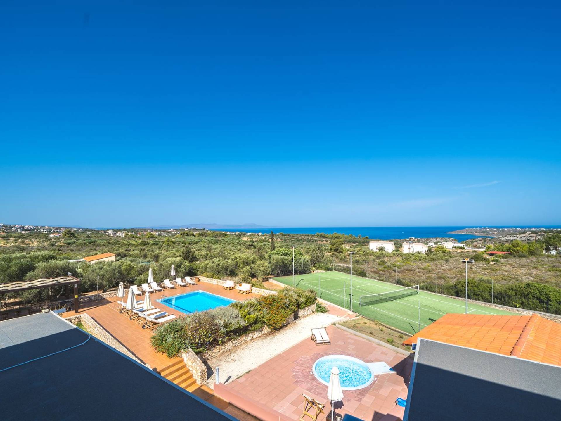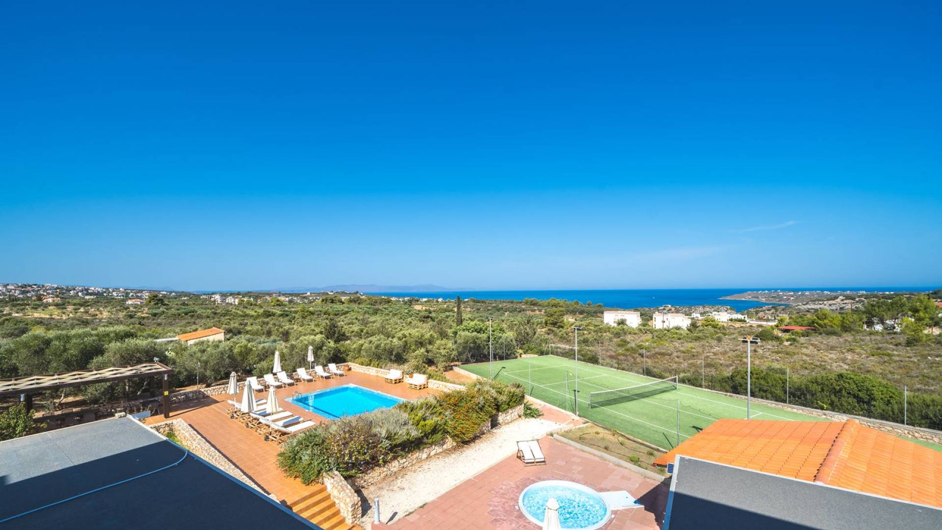 Orizon Villa Chania è una lussuosa villa di nuova costruzione con 6 camere da letto situata nel villaggio di Kalathas. È un luogo perfetto per una vacanza tranquilla e rilassante. Orizon Villa Chania è una bellissima villa con vista sul mare, situata a Kalathas, con la sua piscina privata, campo da tennis e una magnifica vista sull'infinito mare blu e sulle montagne. E' costruito su un terreno di 4100 mq. La villa è composta da 3 livelli e può ospitare fino a 16 adulti.