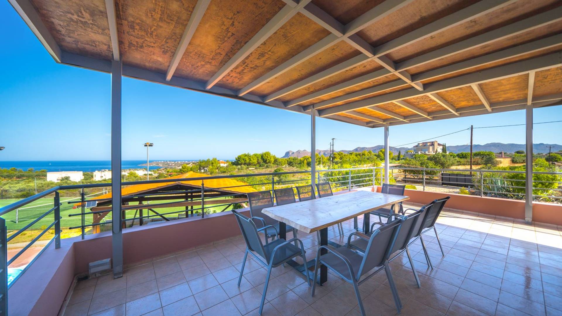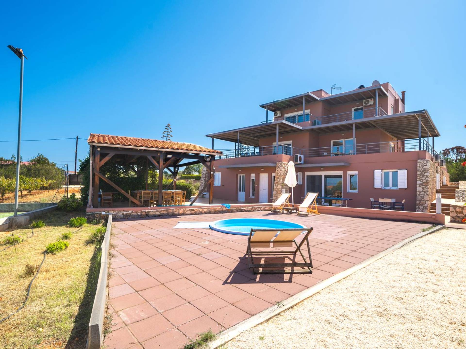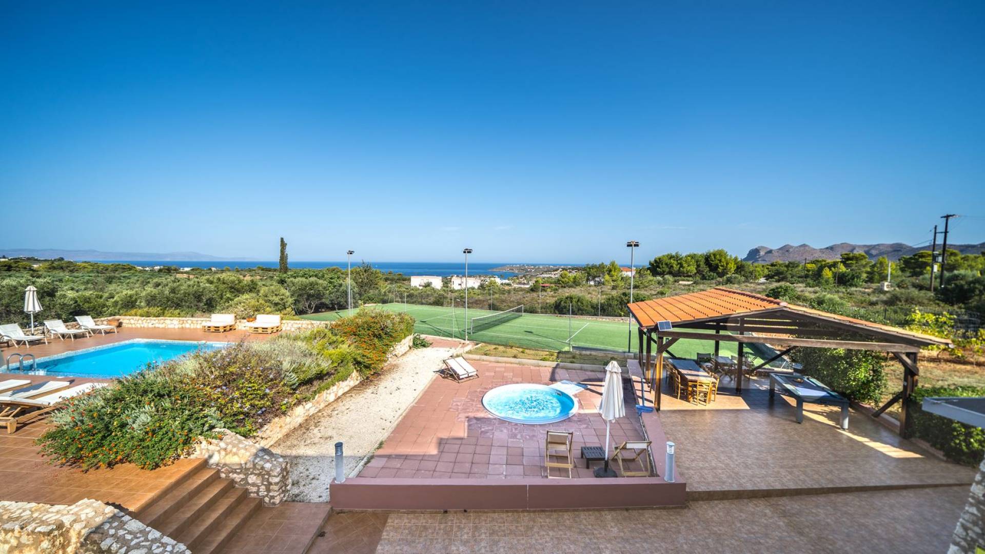 Orizon Villa Chania è una lussuosa villa di nuova costruzione con 6 camere da letto situata nel villaggio di Kalathas. È un luogo perfetto per una vacanza tranquilla e rilassante. Orizon Villa Chania è una bellissima villa con vista sul mare, situata a Kalathas, con la sua piscina privata, campo da tennis e una magnifica vista sull'infinito mare blu e sulle montagne. E' costruito su un terreno di 4100 mq. La villa è composta da 3 livelli e può ospitare fino a 16 adulti.