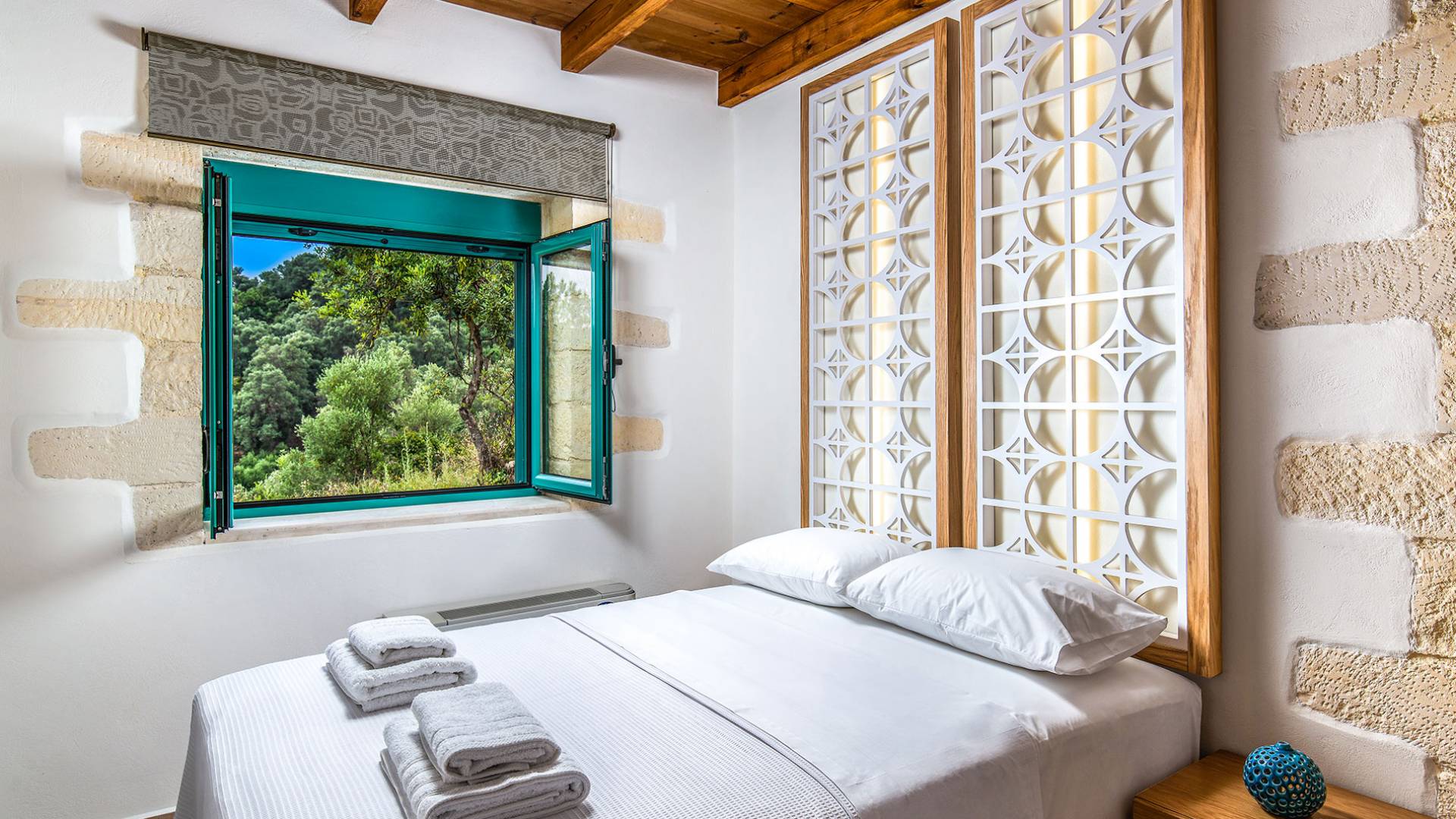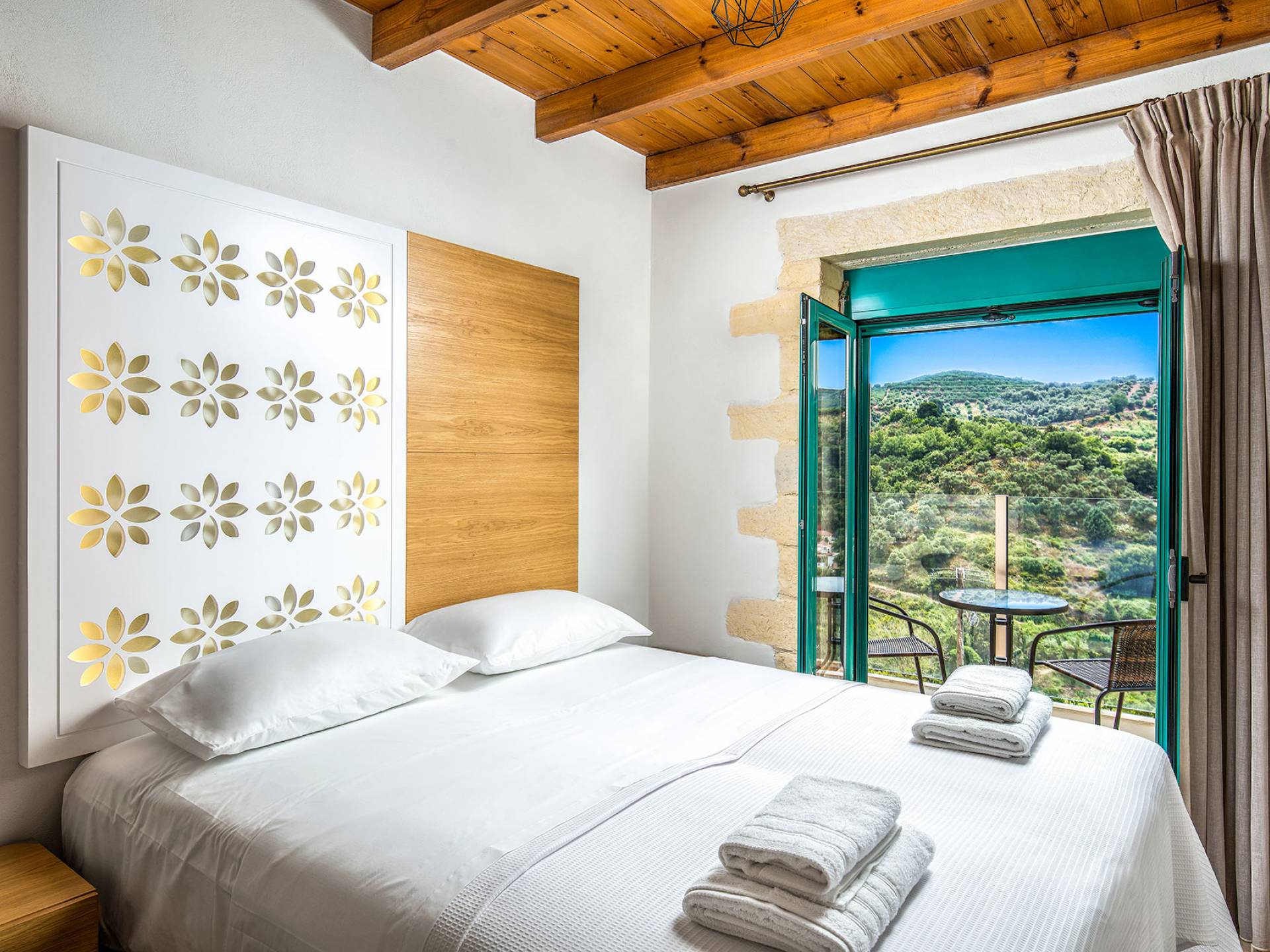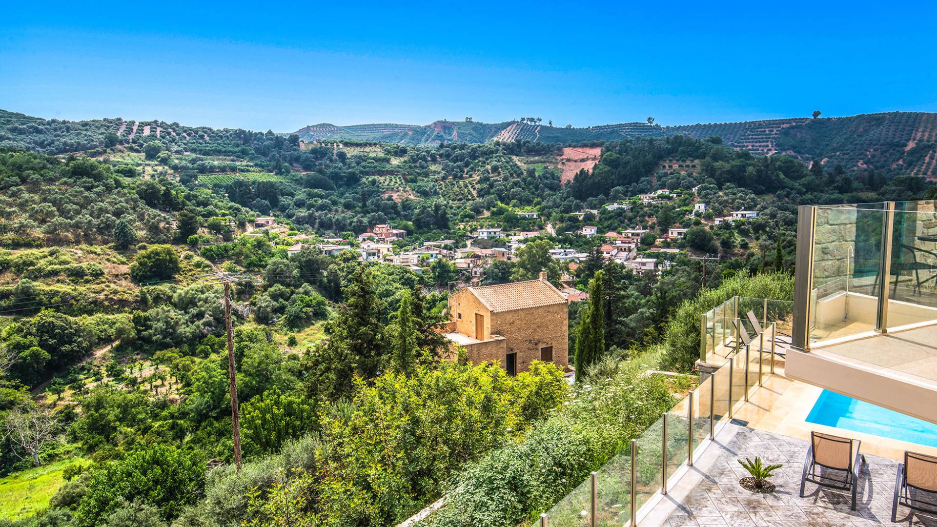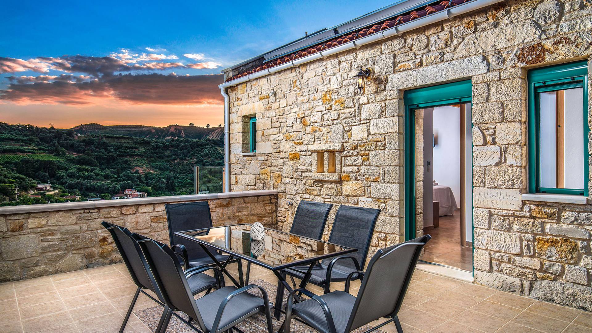 Al primo piano ci sono due camere da letto di cui una con balcone con vista panoramica sul paese e sulle montagne fangose oltre ad una matrimoniale con possibilità di separarla in due singole. L'altra camera da letto ha un letto matrimoniale e una grande finestra anch'essa con vista mozzafiato sulla natura rilassante. Entrambe le camere sono dotate di TV. Al primo piano c'è anche un ampio bagno con vasca e lavatrice. C'è anche un'ampia veranda con zona pranzo all'aperto e una magnifica vista. Piedra Villa Chania dispone anche di una piscina privata di 25 m² con una confortevole area salotto con ombrelloni, lettini e barbecue. L'aria condizionata della villa è quella più moderna e c'è anche la connessione Wi-Fi veloce e gratuita. La villa è ideale per vacanze tranquille e rilassanti vicino alla spiaggia e a tutti i servizi.