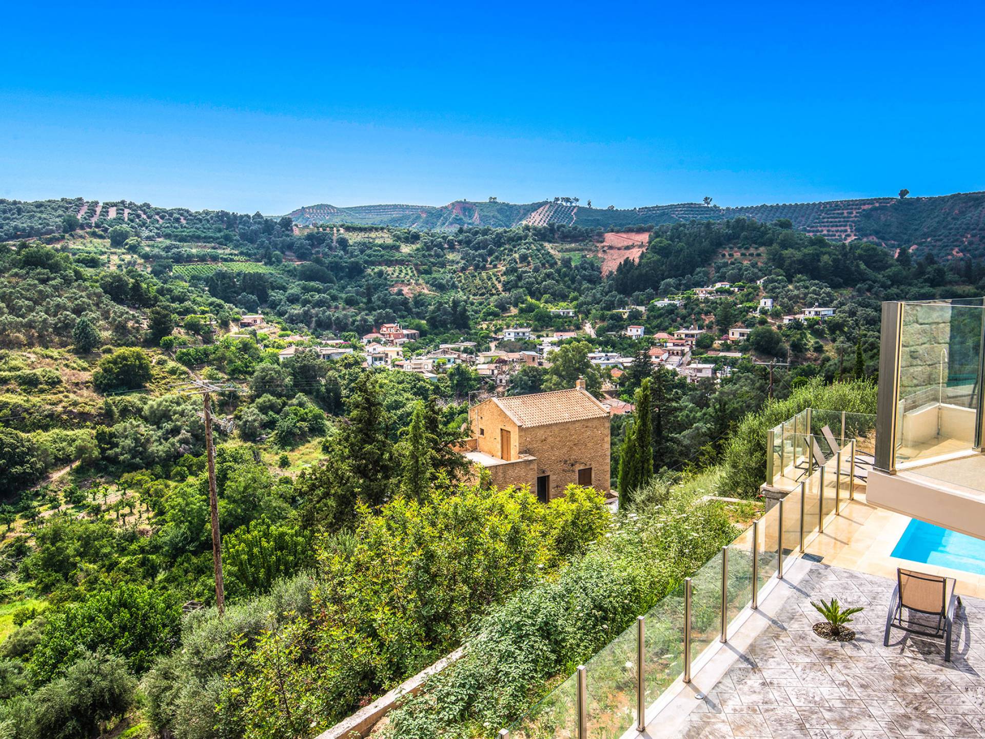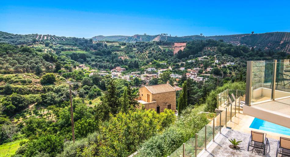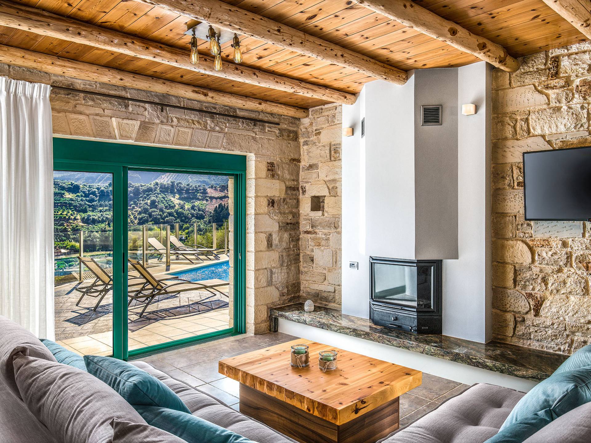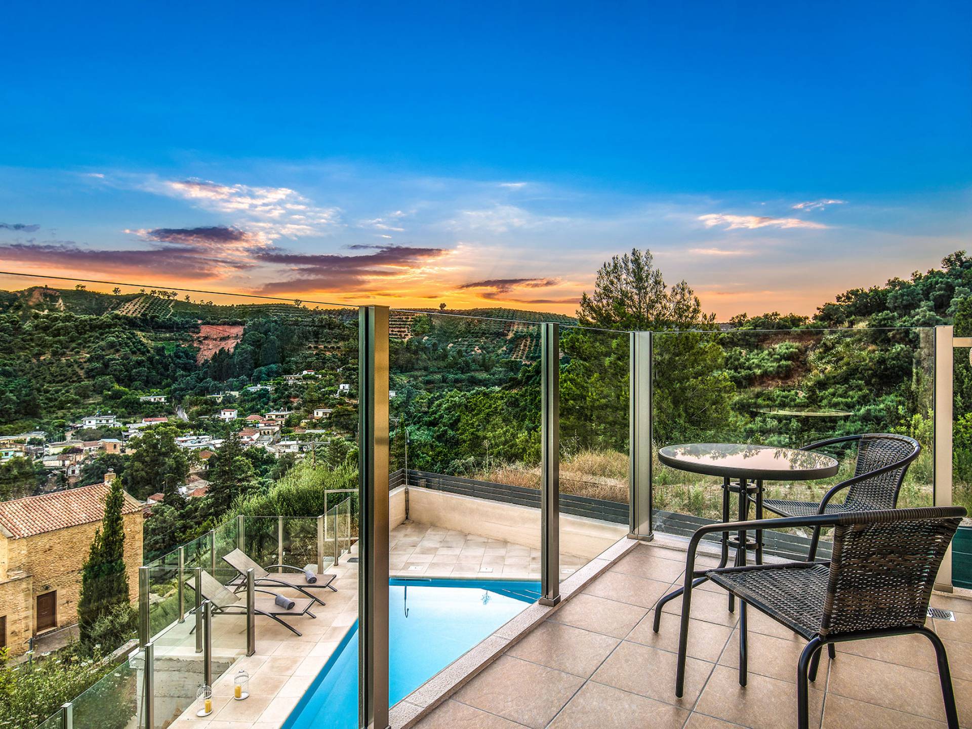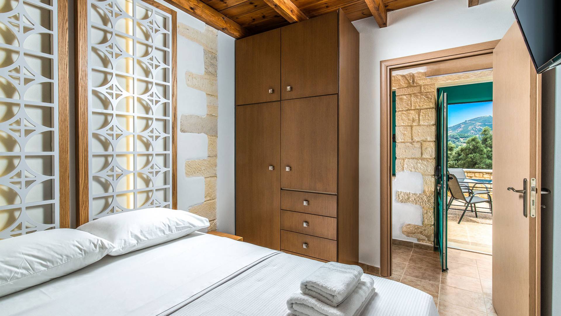 Al primo piano ci sono due camere da letto di cui una con balcone con vista panoramica sul paese e sulle montagne fangose oltre ad una matrimoniale con possibilità di separarla in due singole. L'altra camera da letto ha un letto matrimoniale e una grande finestra anch'essa con vista mozzafiato sulla natura rilassante. Entrambe le camere sono dotate di TV. Al primo piano c'è anche un ampio bagno con vasca e lavatrice. C'è anche un'ampia veranda con zona pranzo all'aperto e una magnifica vista. Piedra Villa Chania dispone anche di una piscina privata di 25 m² con una confortevole area salotto con ombrelloni, lettini e barbecue. L'aria condizionata della villa è quella più moderna e c'è anche la connessione Wi-Fi veloce e gratuita. La villa è ideale per vacanze tranquille e rilassanti vicino alla spiaggia e a tutti i servizi.