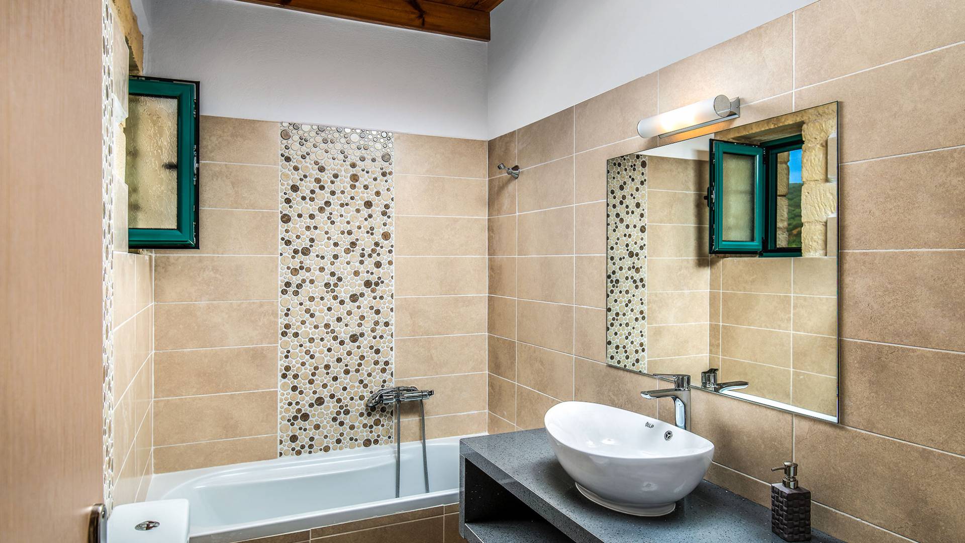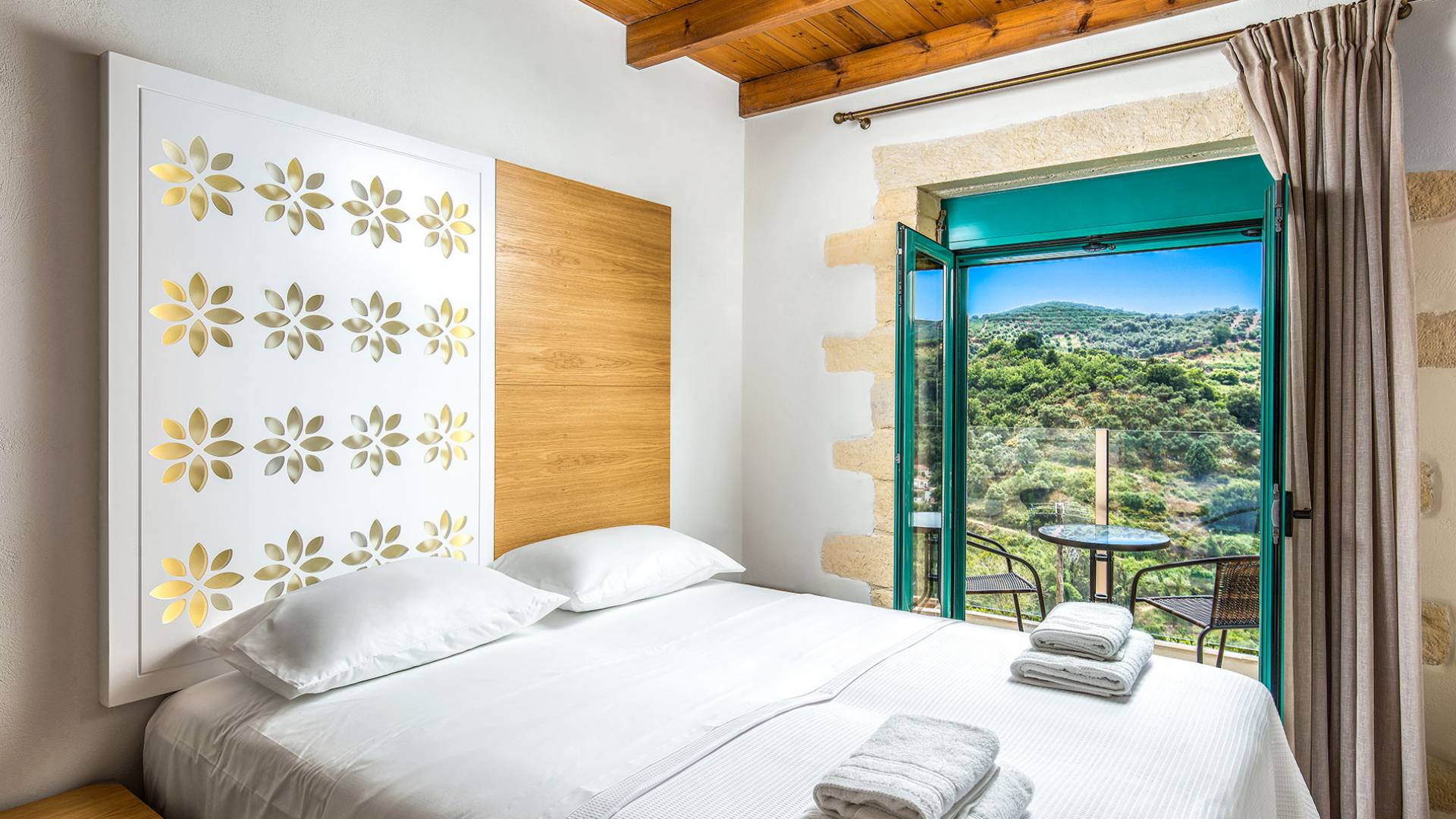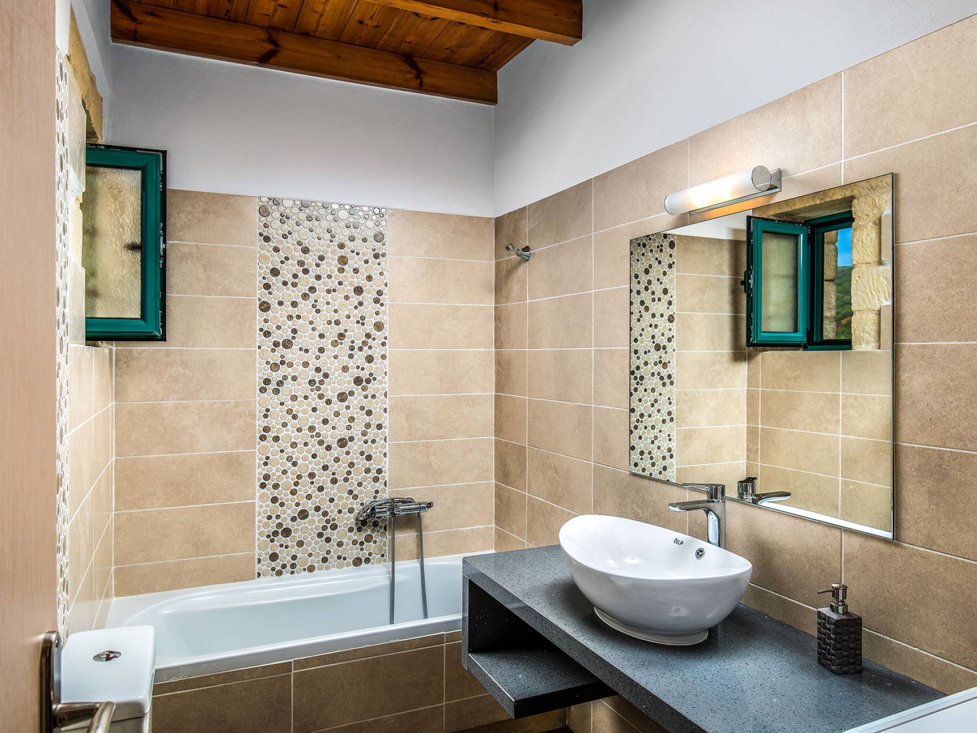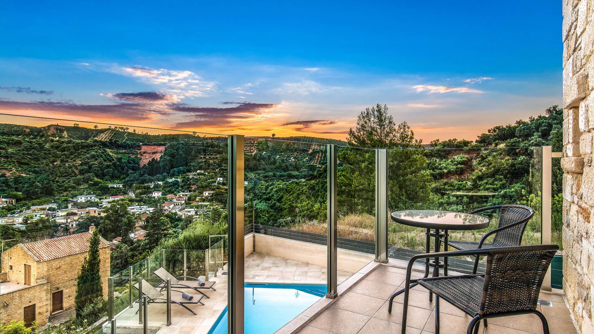 Al primo piano ci sono due camere da letto di cui una con balcone con vista panoramica sul paese e sulle montagne fangose oltre ad una matrimoniale con possibilità di separarla in due singole. L'altra camera da letto ha un letto matrimoniale e una grande finestra anch'essa con vista mozzafiato sulla natura rilassante. Entrambe le camere sono dotate di TV. Al primo piano c'è anche un ampio bagno con vasca e lavatrice. C'è anche un'ampia veranda con zona pranzo all'aperto e una magnifica vista. Piedra Villa Chania dispone anche di una piscina privata di 25 m² con una confortevole area salotto con ombrelloni, lettini e barbecue. L'aria condizionata della villa è quella più moderna e c'è anche la connessione Wi-Fi veloce e gratuita. La villa è ideale per vacanze tranquille e rilassanti vicino alla spiaggia e a tutti i servizi.