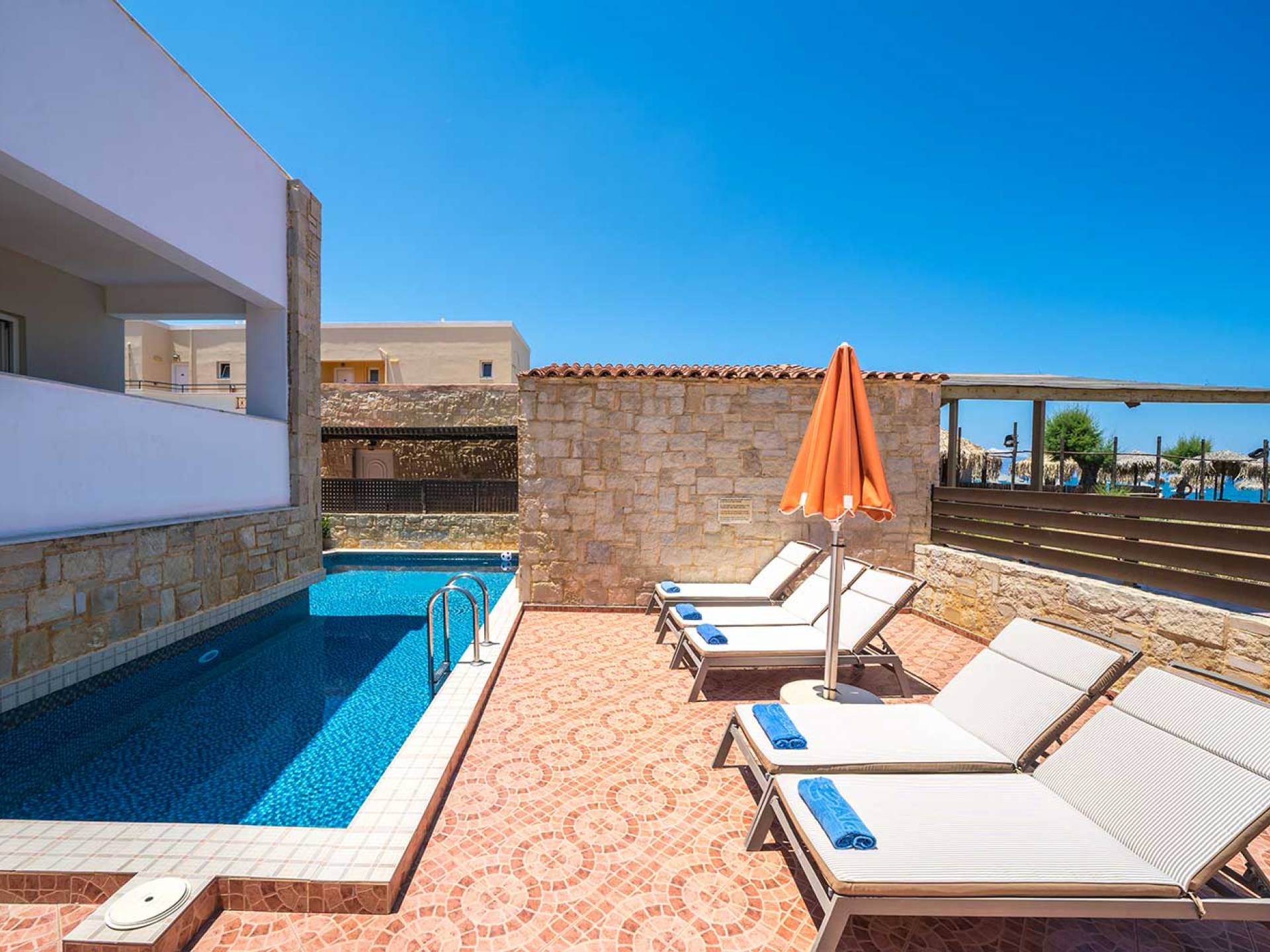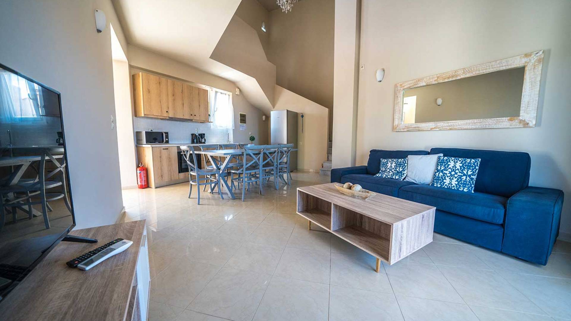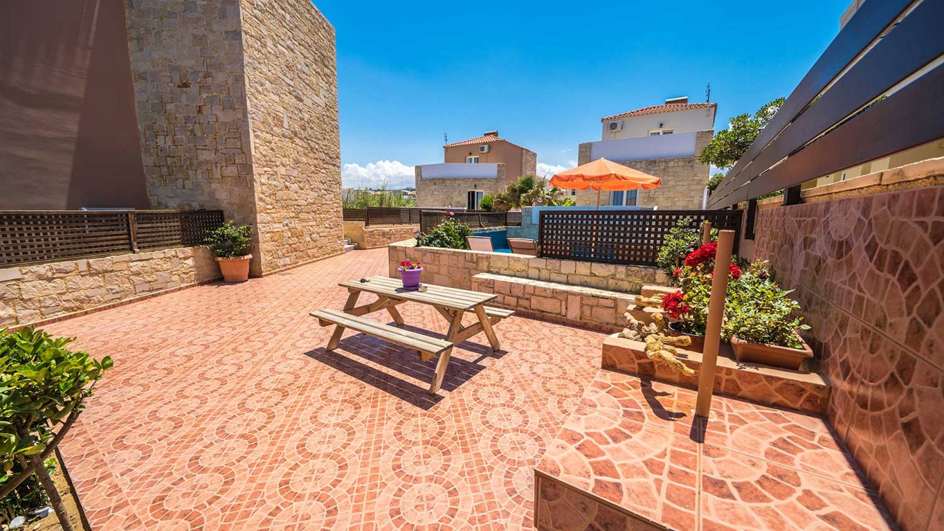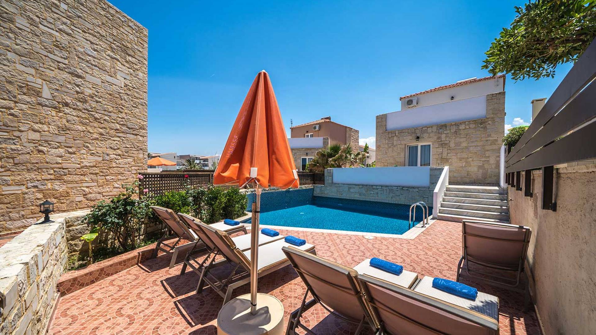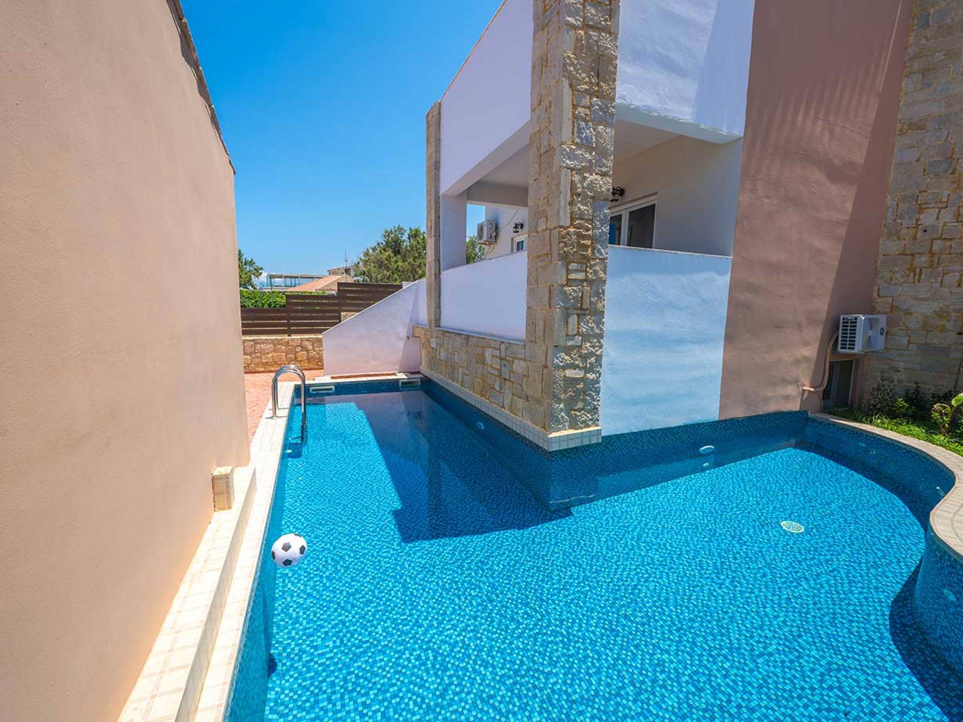 Nel seminterrato c'è un'altra camera da letto con un grande letto matrimoniale e un bagno privato. Villa 3 può ospitare fino a 8 persone con un letto matrimoniale e 1 letto singolo su questo livello. All'aperto ogni villa dispone di una piscina privata e di un'area piscina privata con lettini e ombrelloni, così puoi rilassarti in uno spazio esterno privato. Le ville sulla spiaggia di Chania sono la scelta migliore per la tua famiglia o i tuoi amici, per una vacanza indimenticabile nell'isola di Creta.