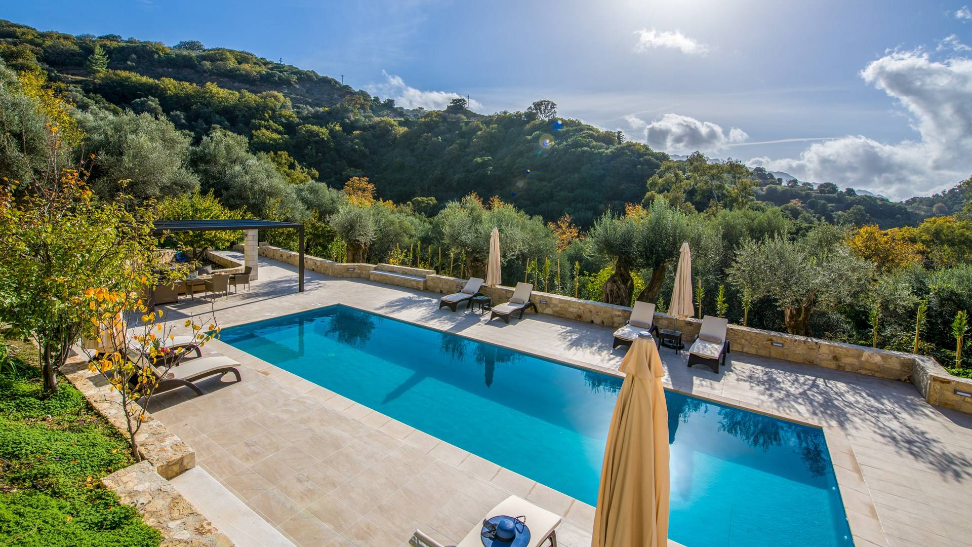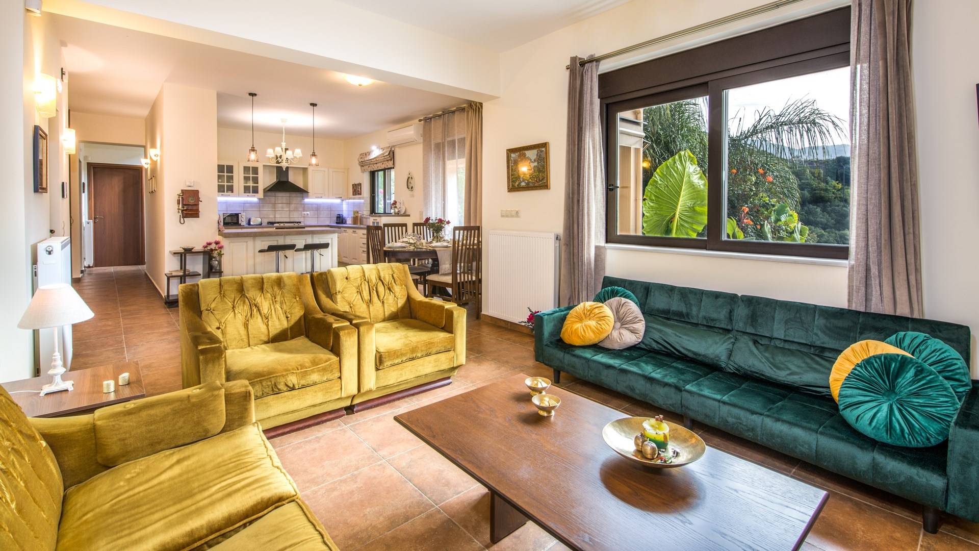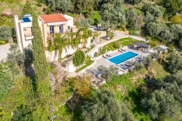 Secret Paradise Villa Chania stands for exactly what its name means "peace". Set in a lush, serene, and welcoming settlement in Kakodiki, you will discover this paradise on earth. The unique view, the silence, the smells of the land, the rustling of the wind, the tranquility you will feel will lead you to discover your retreat. Cretan hospitality will be offered to you to the maximum extent combined with high-quality facilities. 5 minutes away from the villa is the famous area of Kandanos where you can find local restaurants and taverns. Also at a 10-minute's distance is Paleochora, which is famous for its beaches such as Pachia Ammos beach, Gialiskari beach, Krios Beach and Grammeno beach.