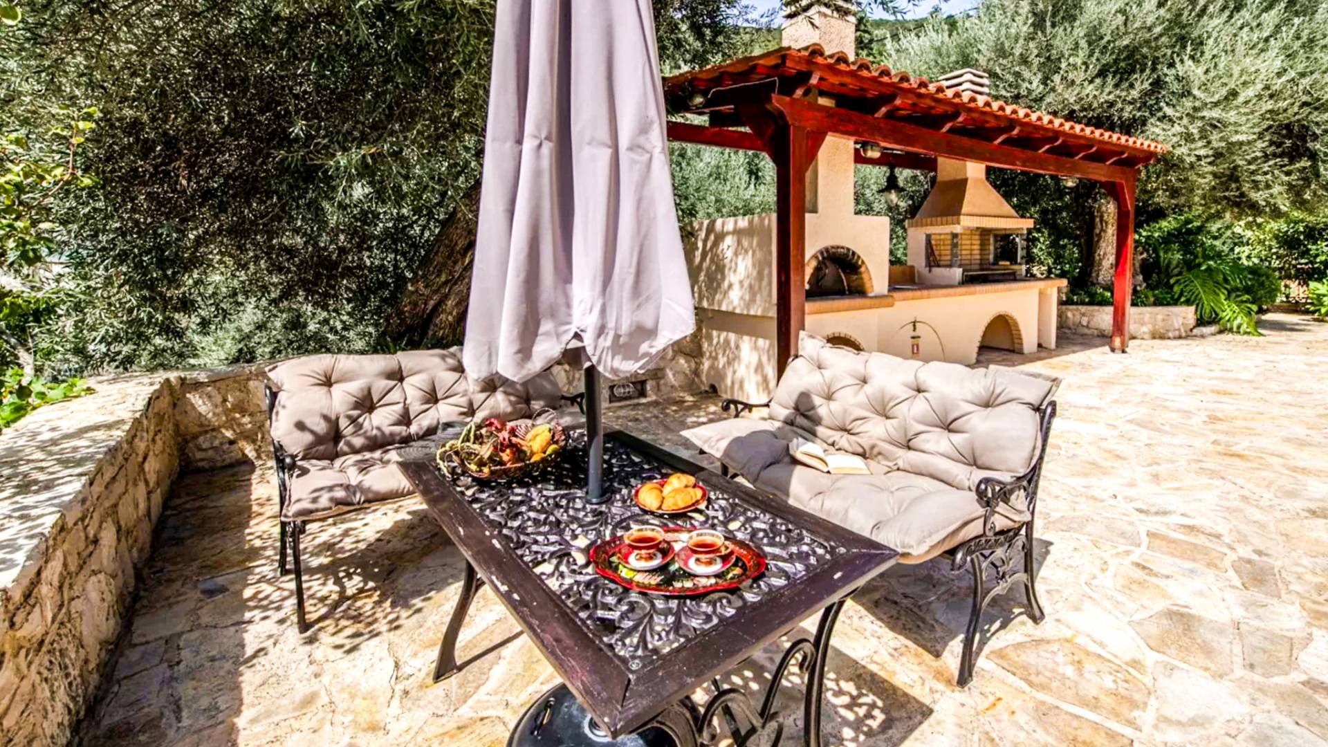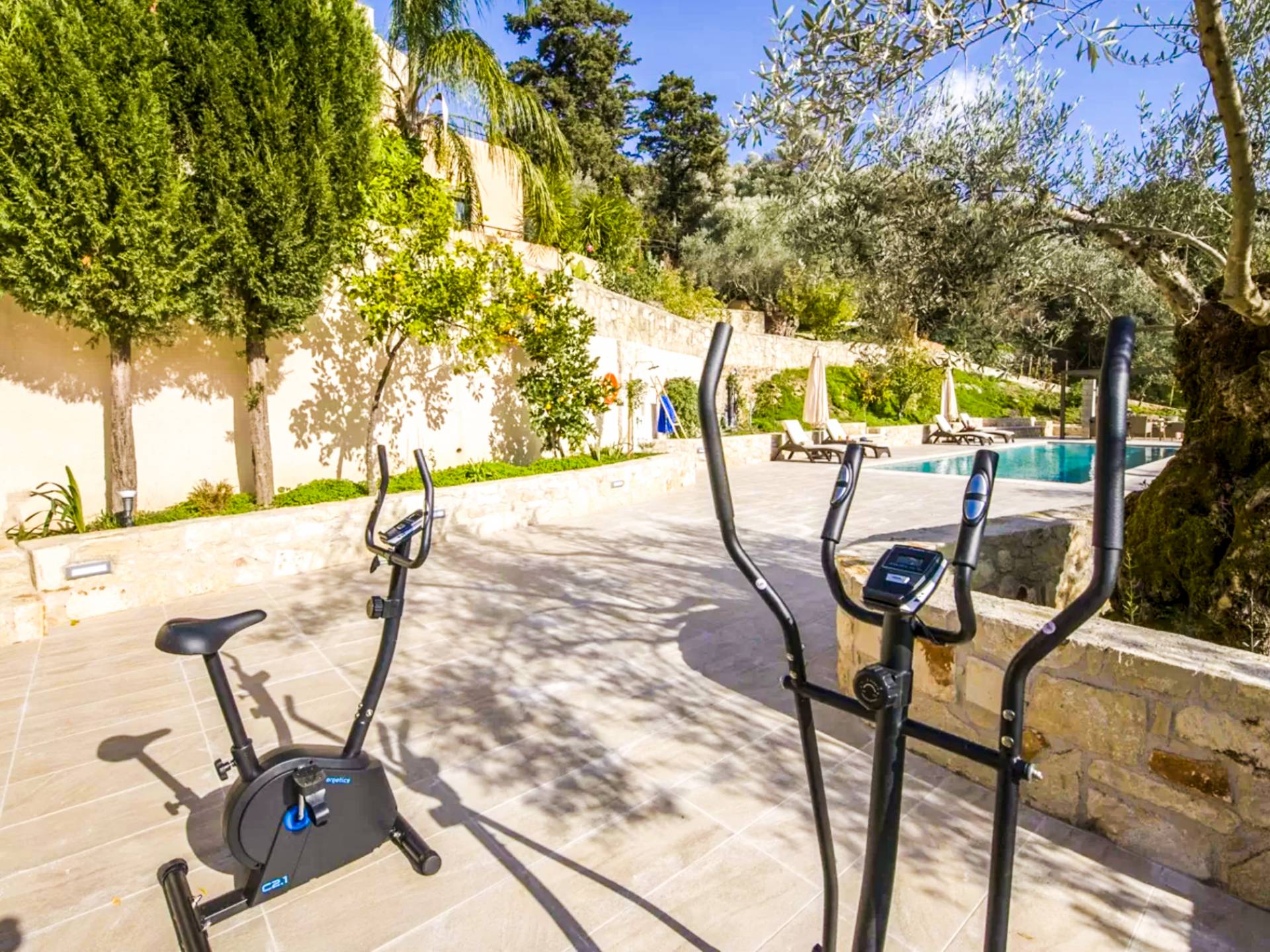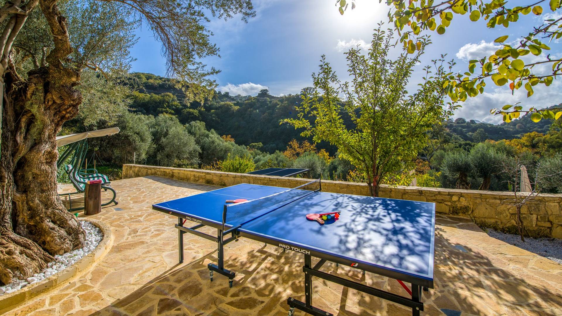 The outdoor area will impress you. Olive trees, vines, ornamental plants, a bed of aromatic herbs, and fruit trees (apple, pomegranate, prickly pear, cherry, orange, etc.), complete the visitor's contact with nature for a greater sense of well-being and relaxation. The swimming pool is about 50 sqm, you will find sunbeds, pool umbrellas and you will find an outdoor shower. There is outdoor furniture and a pergola by the pool. In addition, there is a BBQ and a wood-fired oven for the ones who love it. Finally, for your entertainment, you will find table tennis. elliptical machine, static bike (outdoors), and table games. You will have an unforgettable experience with a walk on the river.