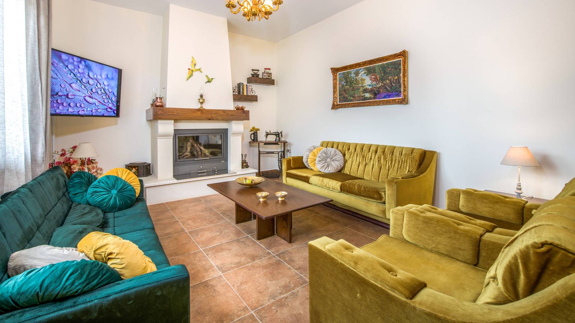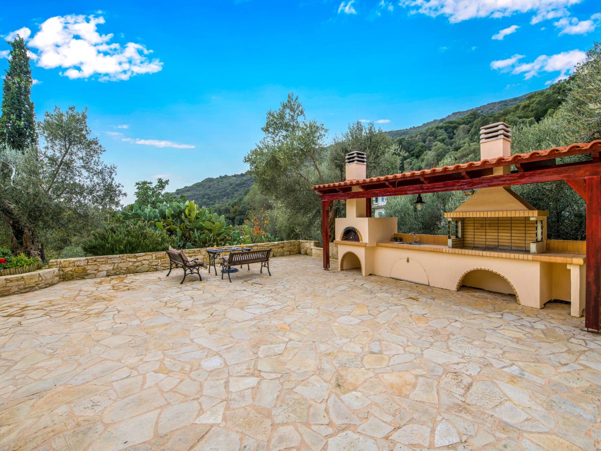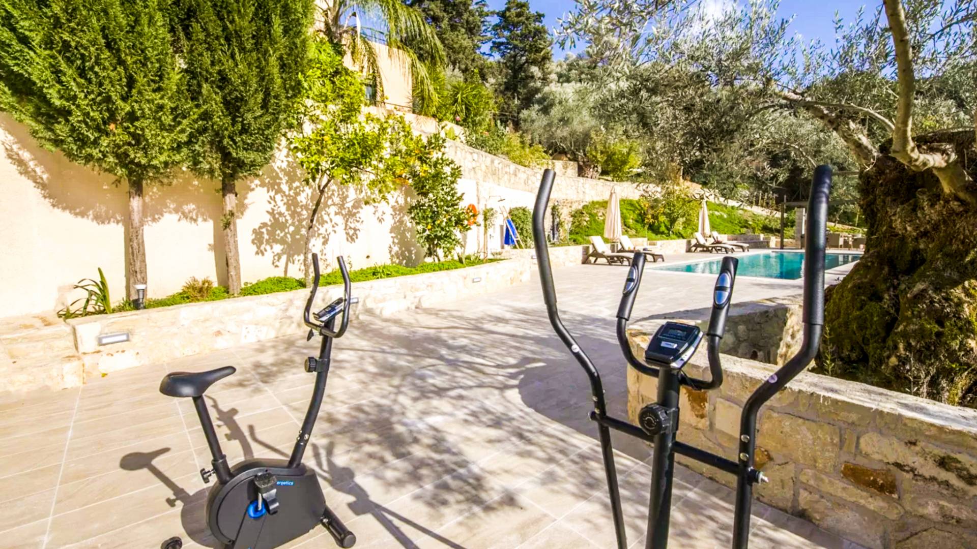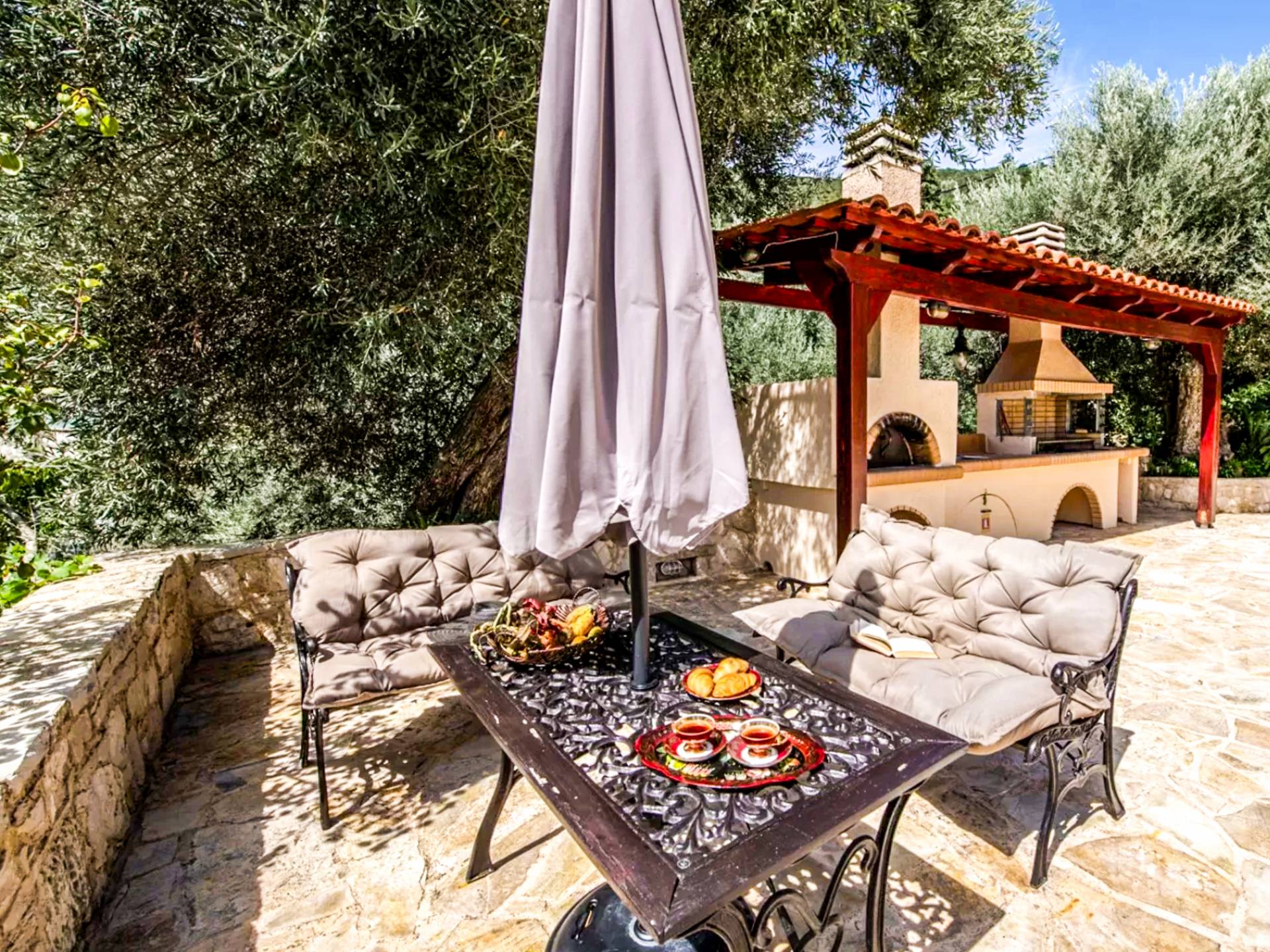 The outdoor area will impress you. Olive trees, vines, ornamental plants, a bed of aromatic herbs, and fruit trees (apple, pomegranate, prickly pear, cherry, orange, etc.), complete the visitor's contact with nature for a greater sense of well-being and relaxation. The swimming pool is about 50 sqm, you will find sunbeds, pool umbrellas and you will find an outdoor shower. There is outdoor furniture and a pergola by the pool. In addition, there is a BBQ and a wood-fired oven for the ones who love it. Finally, for your entertainment, you will find table tennis. elliptical machine, static bike (outdoors), and table games. You will have an unforgettable experience with a walk on the river.