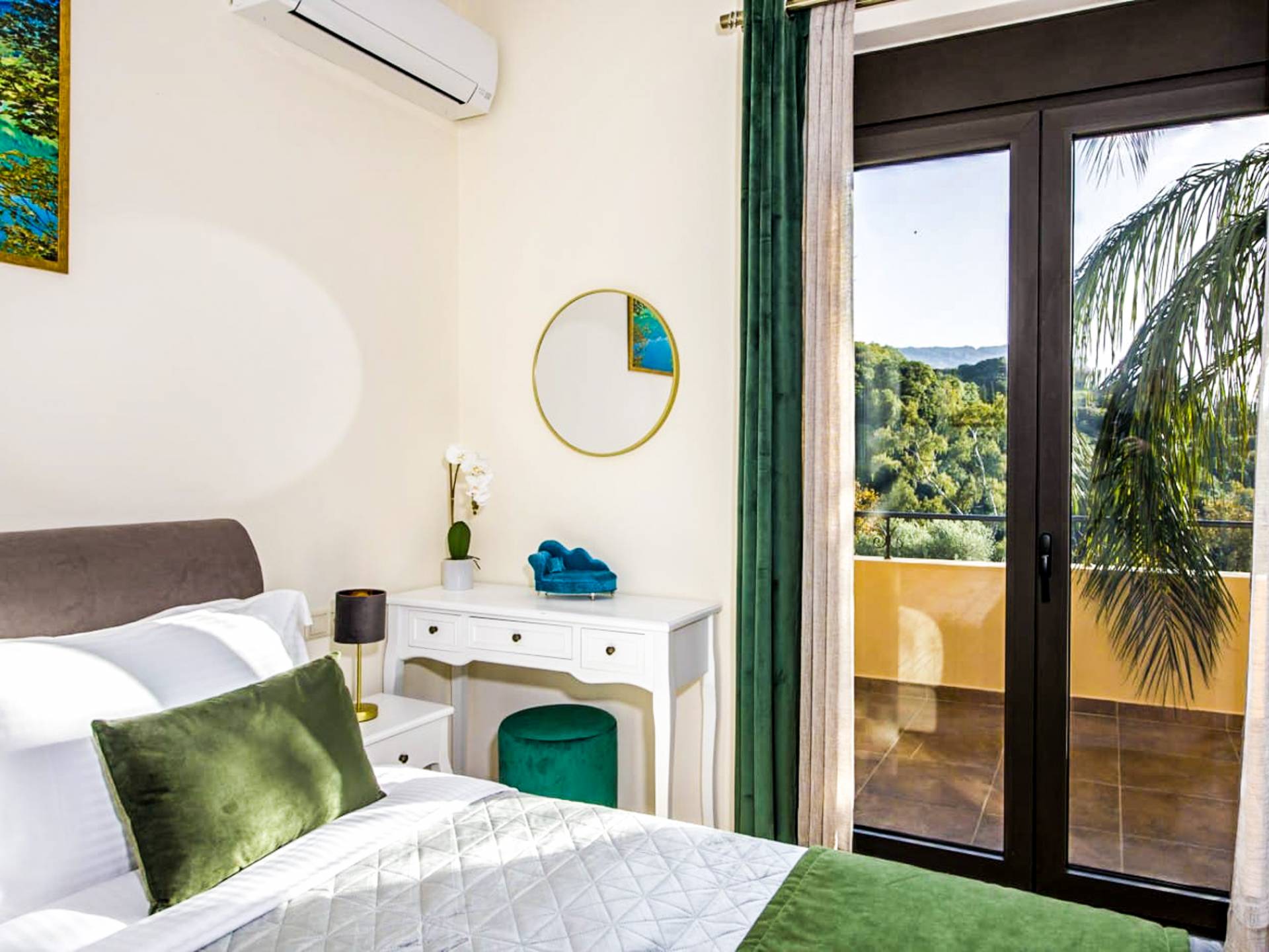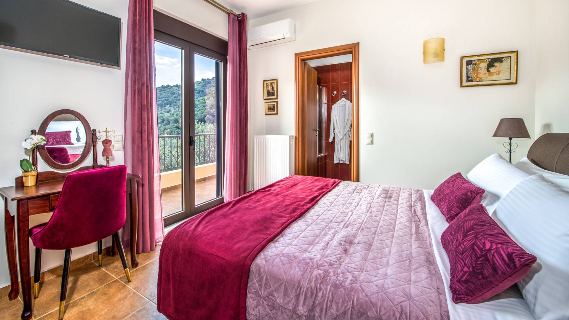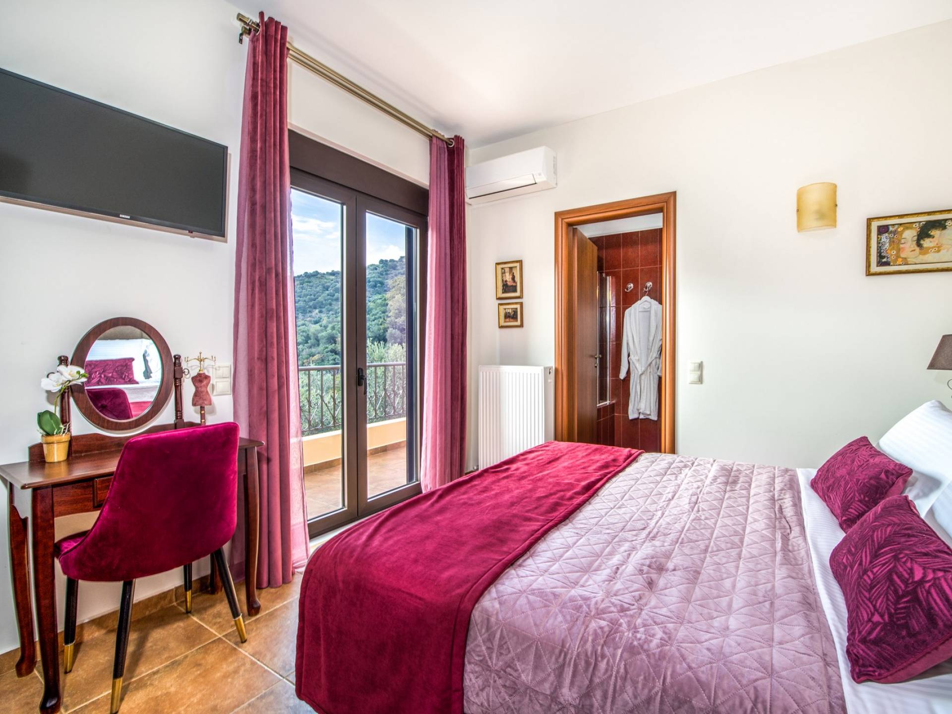 Secret Paradise Villa Chania settlement of Sfakos in the village of Kakodiki consists of a ground floor and 1st floor within a 4-acre estate, fenced in that the south side of the property ends ten meters from the river. The house extends to 180sqm and can accommodate up to 8 people, as it has 4 bedrooms and 3 bathrooms. The bedrooms are located on the ground floor with a double bed, air conditioning, TV, wardrobes, and a balcony door. The other 3 bedrooms are on the first floor with a double bed each, air conditioning, TV, wardrobes and French doors. Two of the ones on the first floor have awnings and furniture on their balconies so you can enjoy the view, in the mornings or afternoons.
