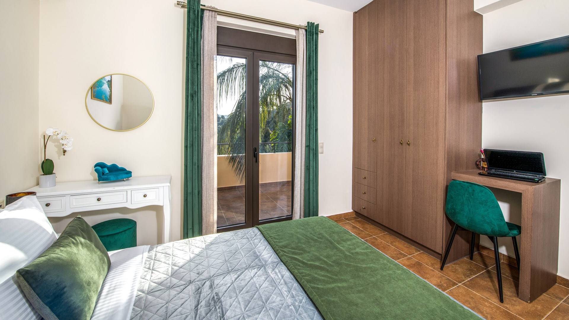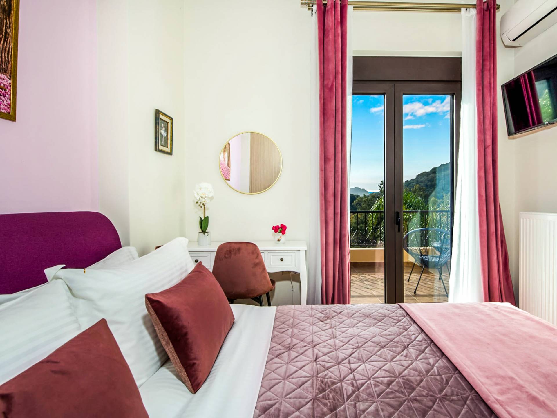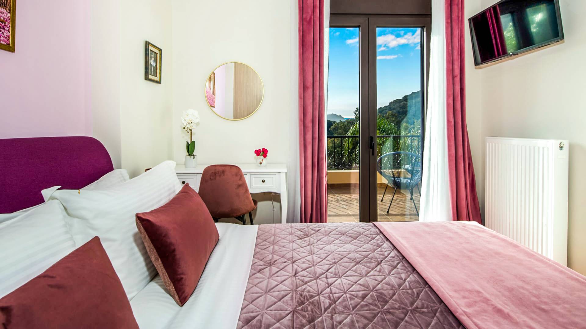 Secret Paradise Villa Chania settlement of Sfakos in the village of Kakodiki consists of a ground floor and 1st floor within a 4-acre estate, fenced in that the south side of the property ends ten meters from the river. The house extends to 180sqm and can accommodate up to 8 people, as it has 4 bedrooms and 3 bathrooms. The bedrooms are located on the ground floor with a double bed, air conditioning, TV, wardrobes, and a balcony door. The other 3 bedrooms are on the first floor with a double bed each, air conditioning, TV, wardrobes and French doors. Two of the ones on the first floor have awnings and furniture on their balconies so you can enjoy the view, in the mornings or afternoons.