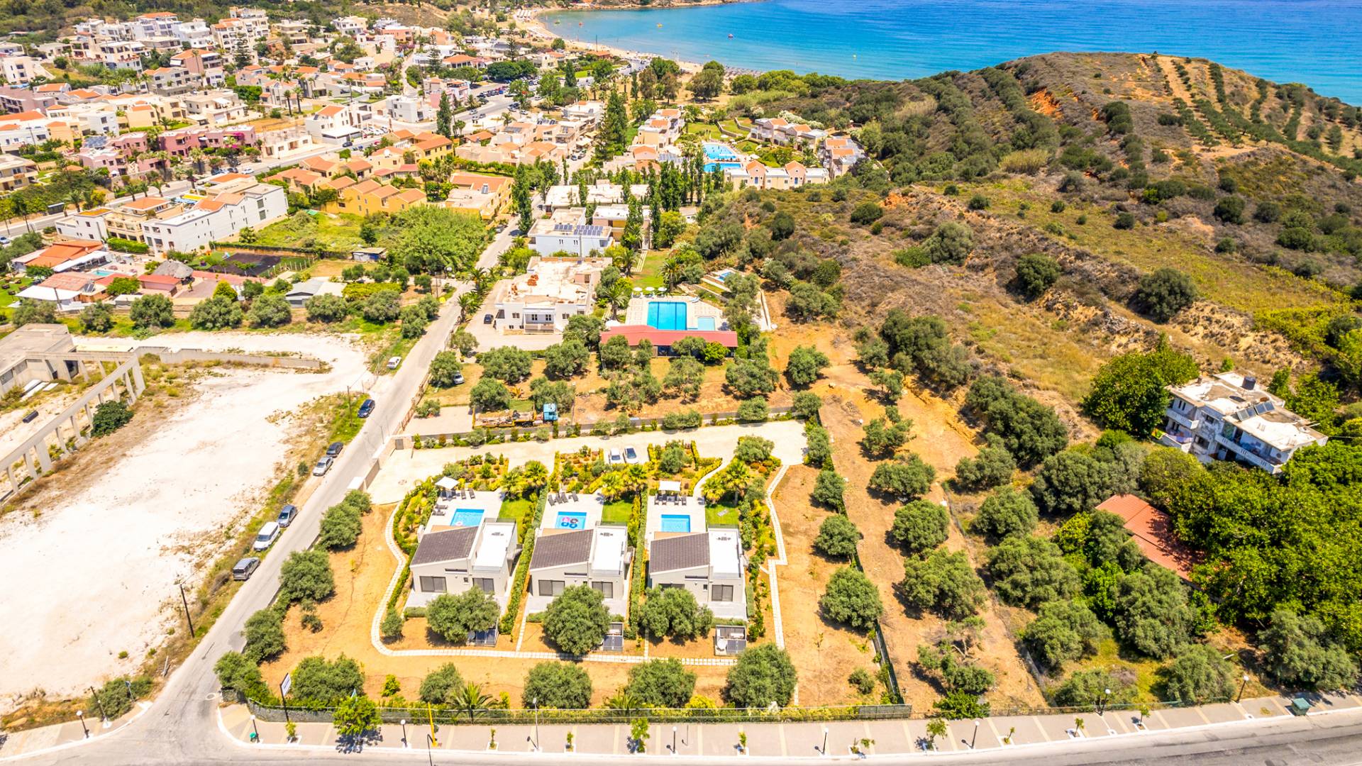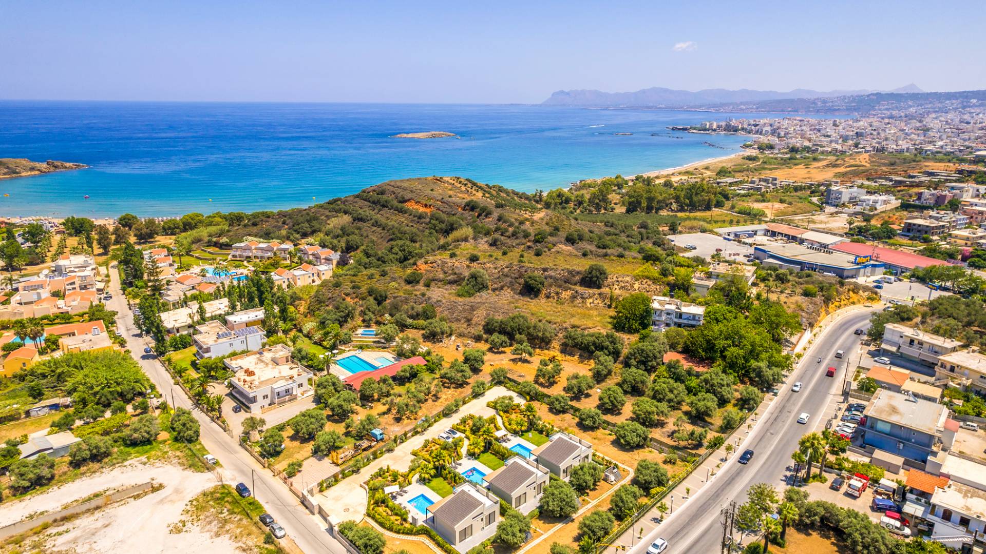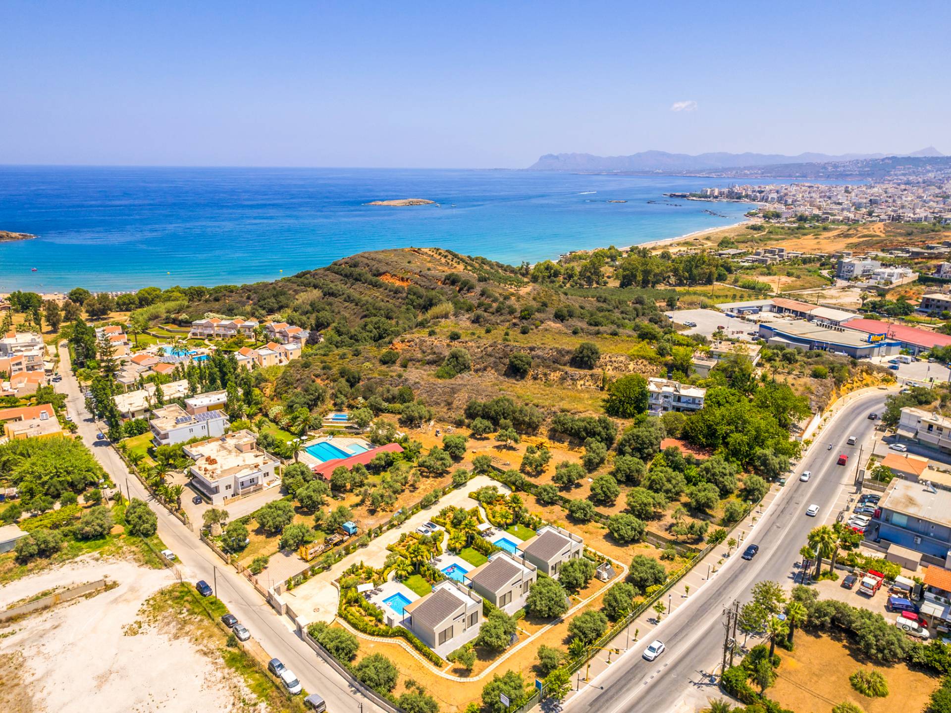 - Agia Marina & Platanias – A 10-minute drive brings you to lively beach towns with watersports, bars, and nightlife.