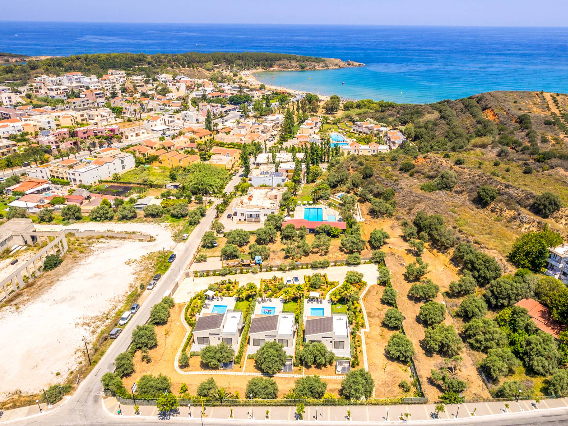 - Agioi Apostoloi Beaches (950m) – Safe, sandy, family-friendly, with organized facilities.