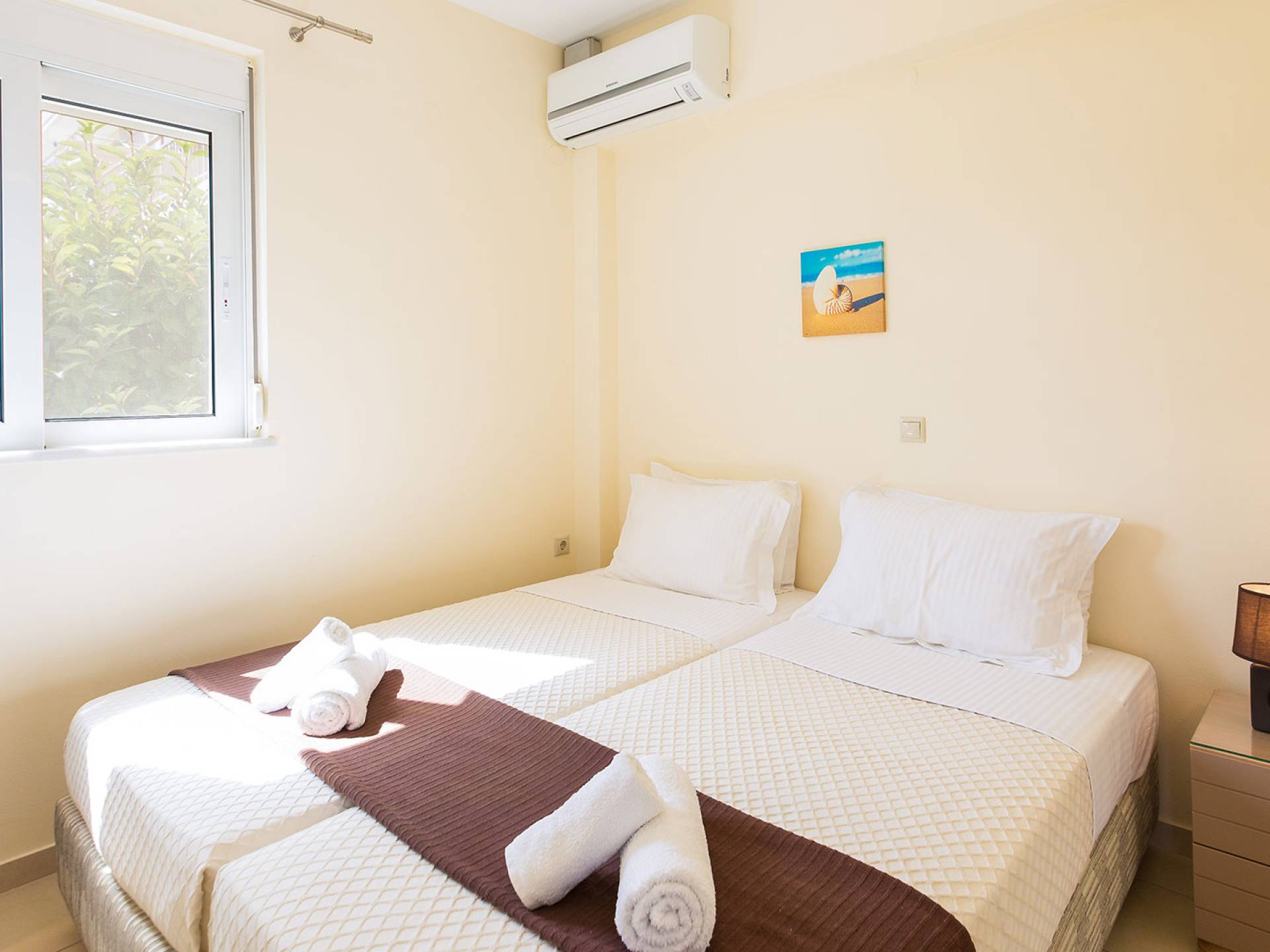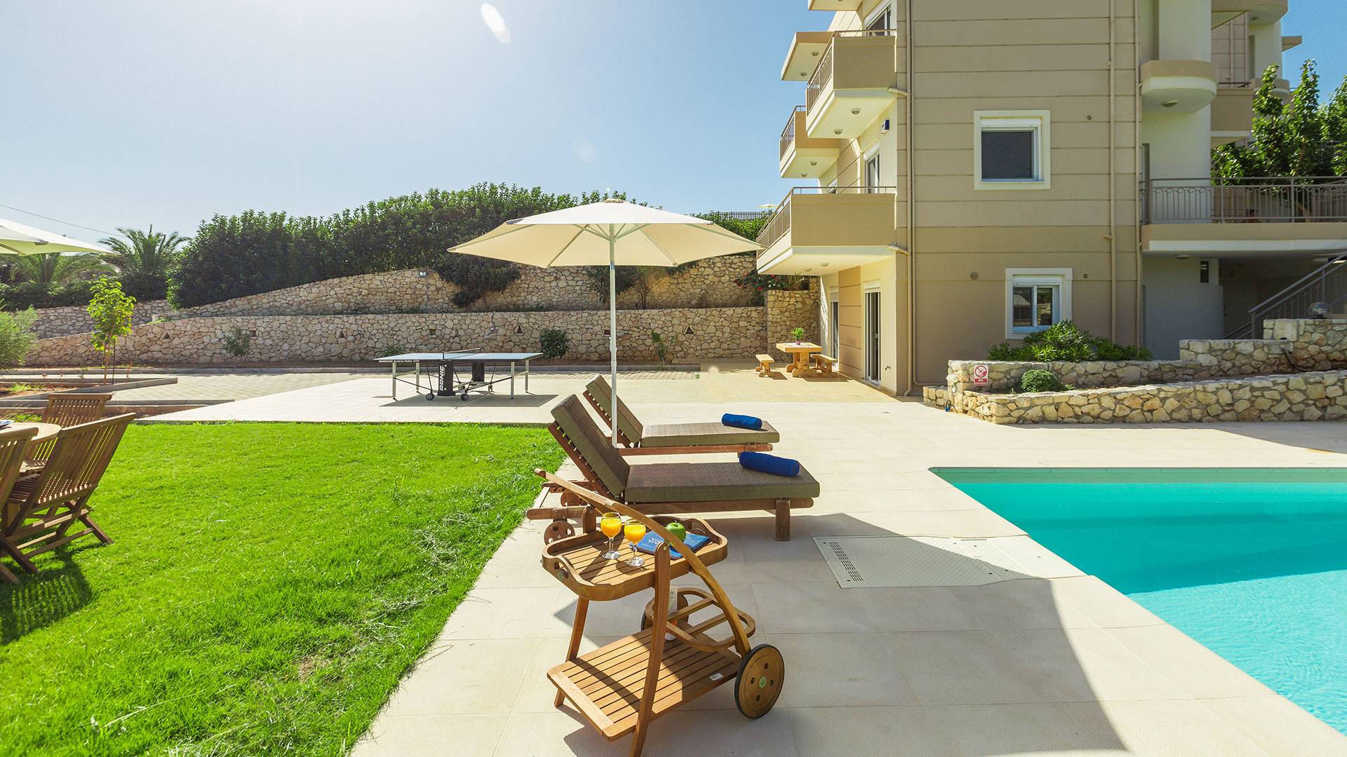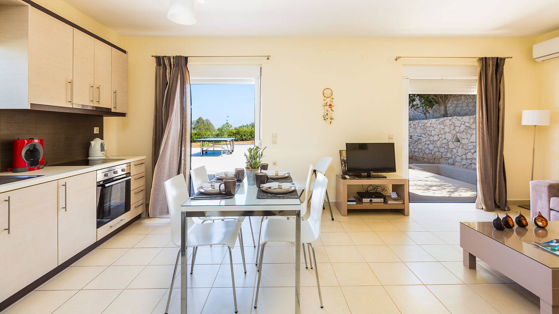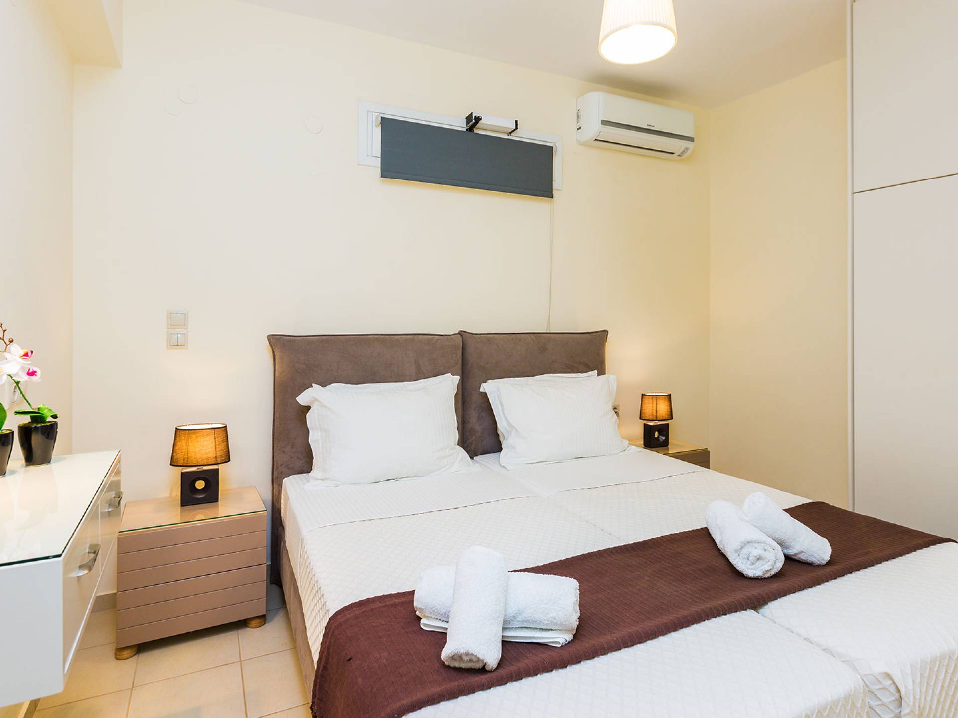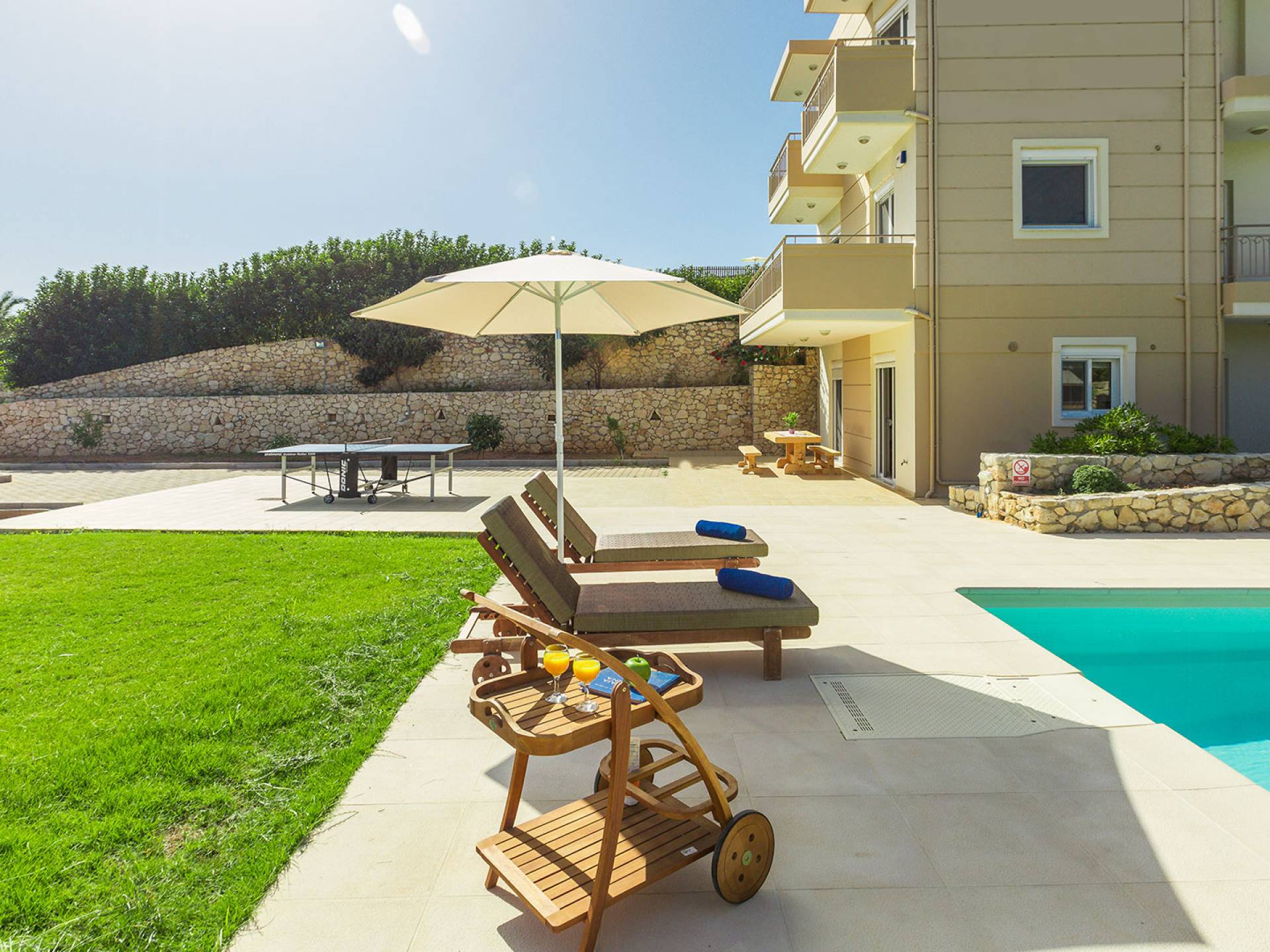 Questo noleggio di lusso è composto da 3 livelli. Al piano terra si trova un'ampia cucina, sala da pranzo e soggiorno, una camera matrimoniale e un bagno con doccia. Al piano d'ingresso troviamo una spaziosa cucina abitabile, una zona pranzo e una zona giorno lungo il lato sinistro con balconi. Su questo piano c'è una camera matrimoniale e un bagno con doccia. Al primo piano si trova una camera matrimoniale con bagno privato con doccia e balcone vista mare. C'è anche una camera doppia con balcone e un bagno. All'esterno è possibile trovare una piscina privata riscaldata senza cloro. Star Villa 2 Chania offre anche lettini e un grande ombrellone, mobili da esterno, ping pong, giardini e parcheggio privato. Puoi rilassarti a bordo piscina e goderti la magica vista sul mare e sulle montagne Il riscaldamento della piscina è disponibile per i mesi di aprile, maggio, settembre e ottobre e prevede un supplemento.